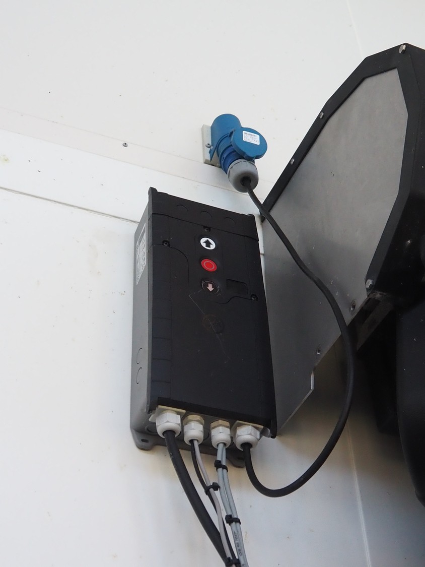 Electric shutter door, dimensions door: 2000 mm x 2650 mm, dimensions switch cabinet: 400 mm x 150 mm x 100 mm.