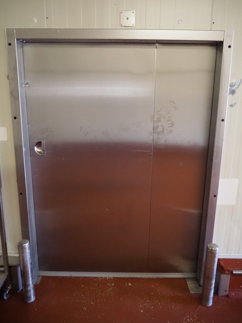 Metaflex s/s refrigerated sliding door, model: PPO-055503/001, year of construction: 2020, thickness door: 100 mm, dimensions door: 1230 mm x 2000 mm, length rail: 3170 mm.