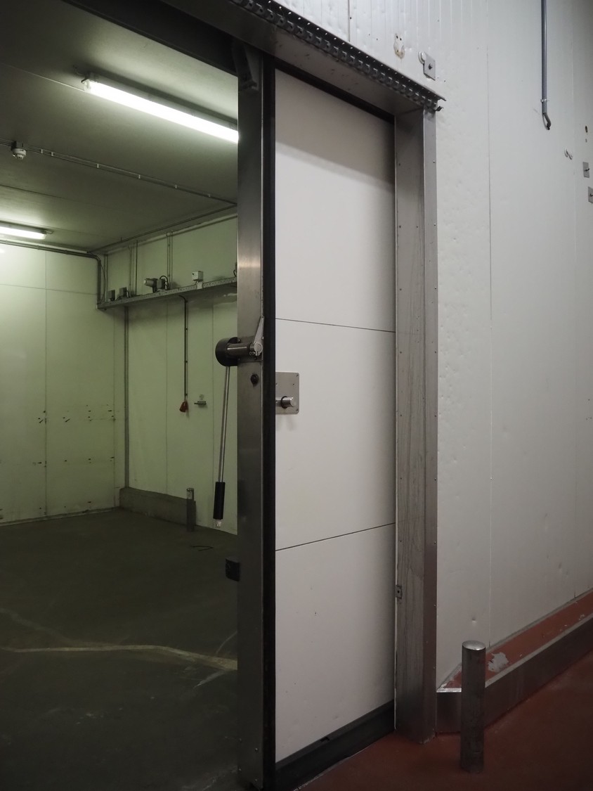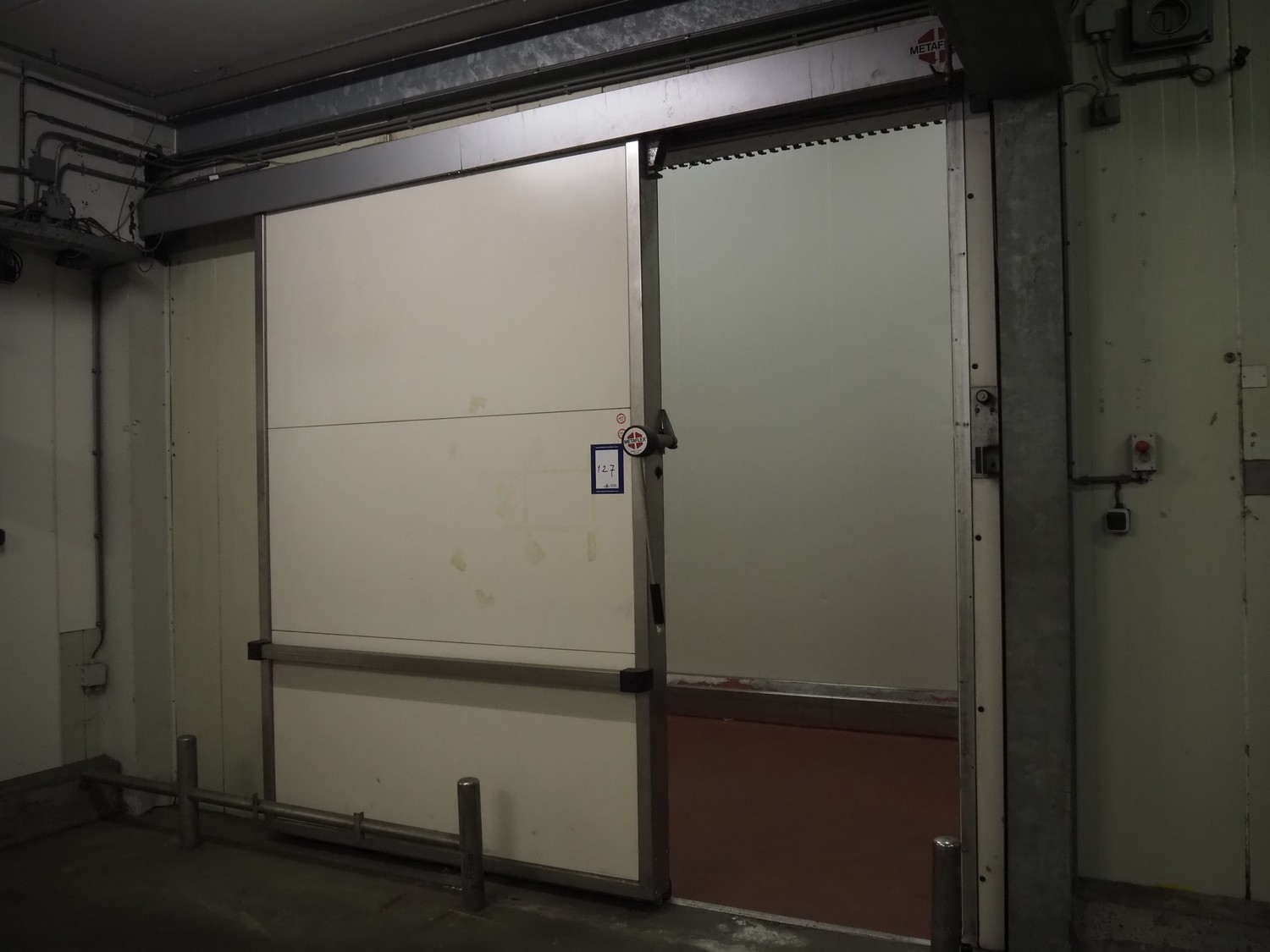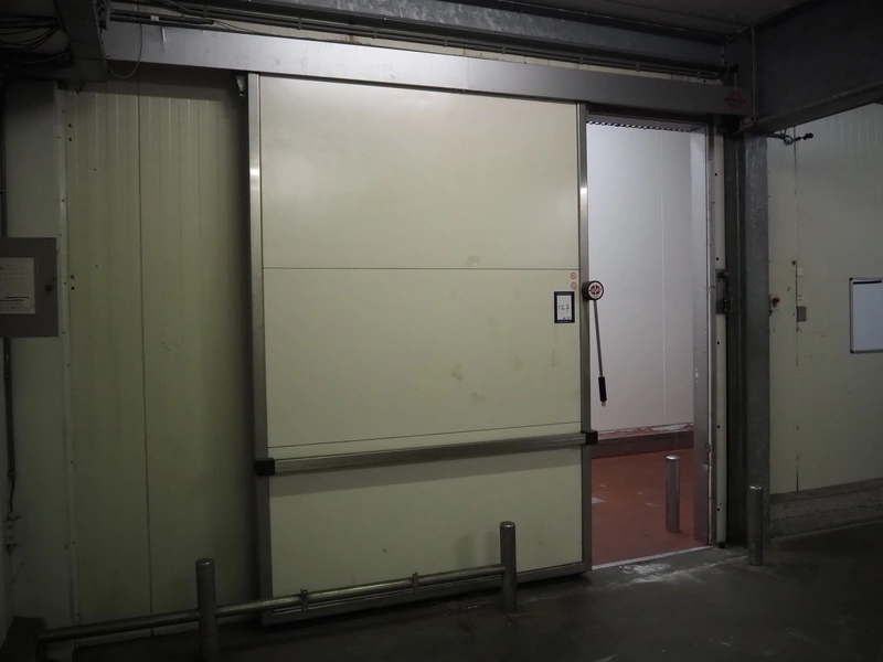 Metaflex refrigerated sliding door, thickness door: 150 mm, dimensions door: 2050 mm x 3000 mm, length rails: 4100 mm.