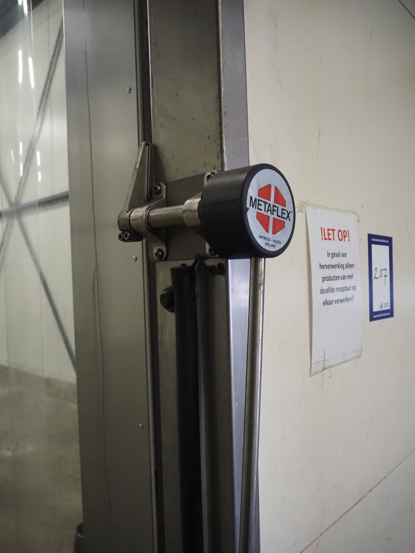 Metaflex refrigerated sliding door, thickness door: 130 mm, dimensions door: 2550 mm x 3050 mm, length rail: 5100 mm.