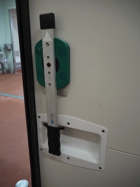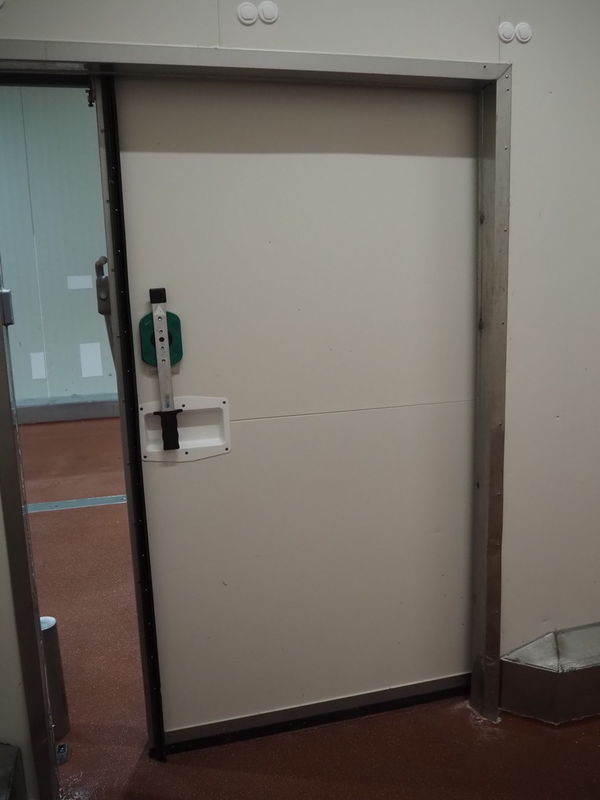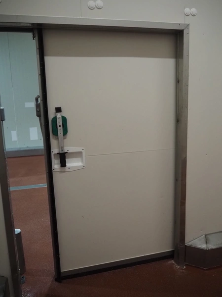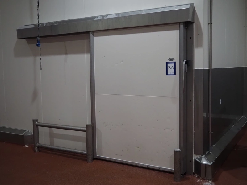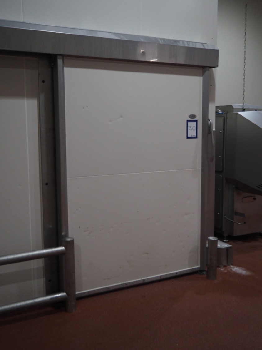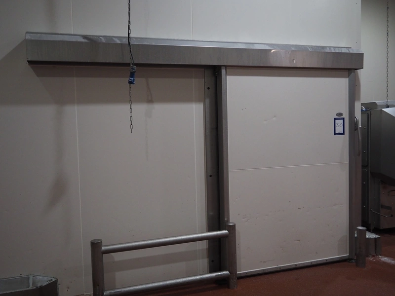 VIB Isolatie refrigerated sliding door, model: KSL, production number: 17-02-033, thickness door: 100 mm, dimensions door: 1650 mm x 2300 mm, length rail: 3550 mm.