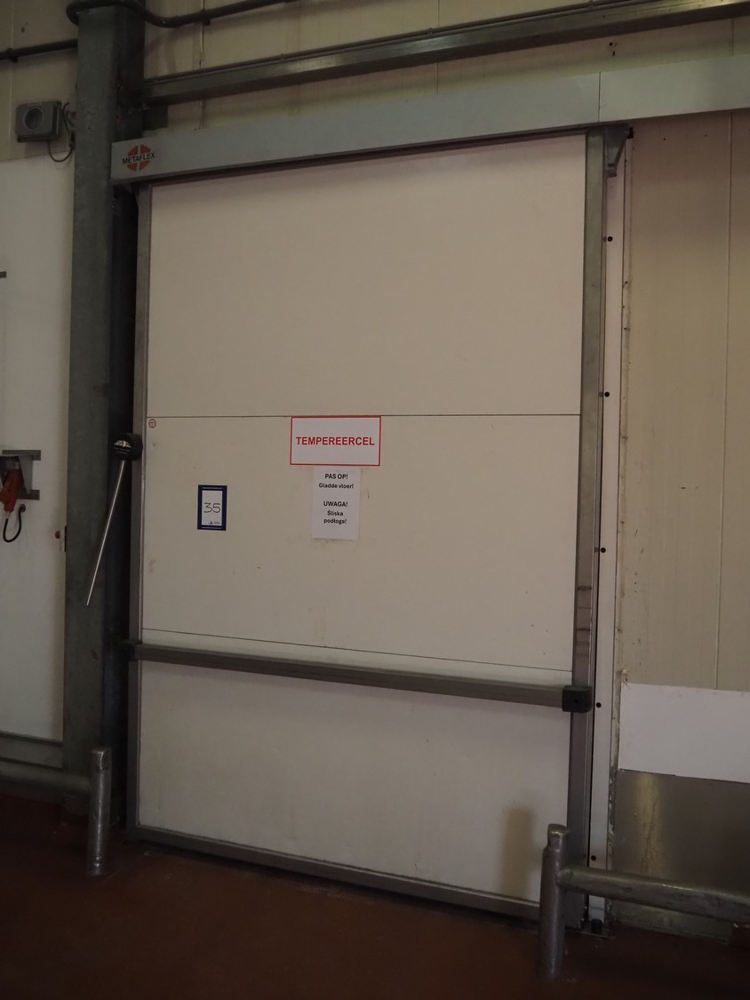 Metaflex refrigerated sliding door, serial number: 1060348, year of construction: 2006, thickness door: 150 mm, dimensions door: 2050 mm x 3100 mm, length rail: 4100 mm.