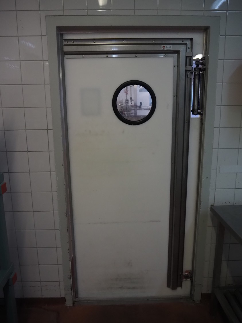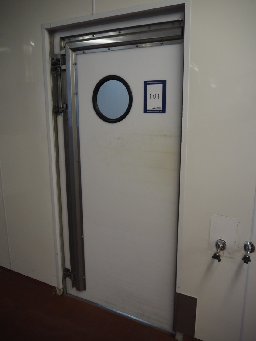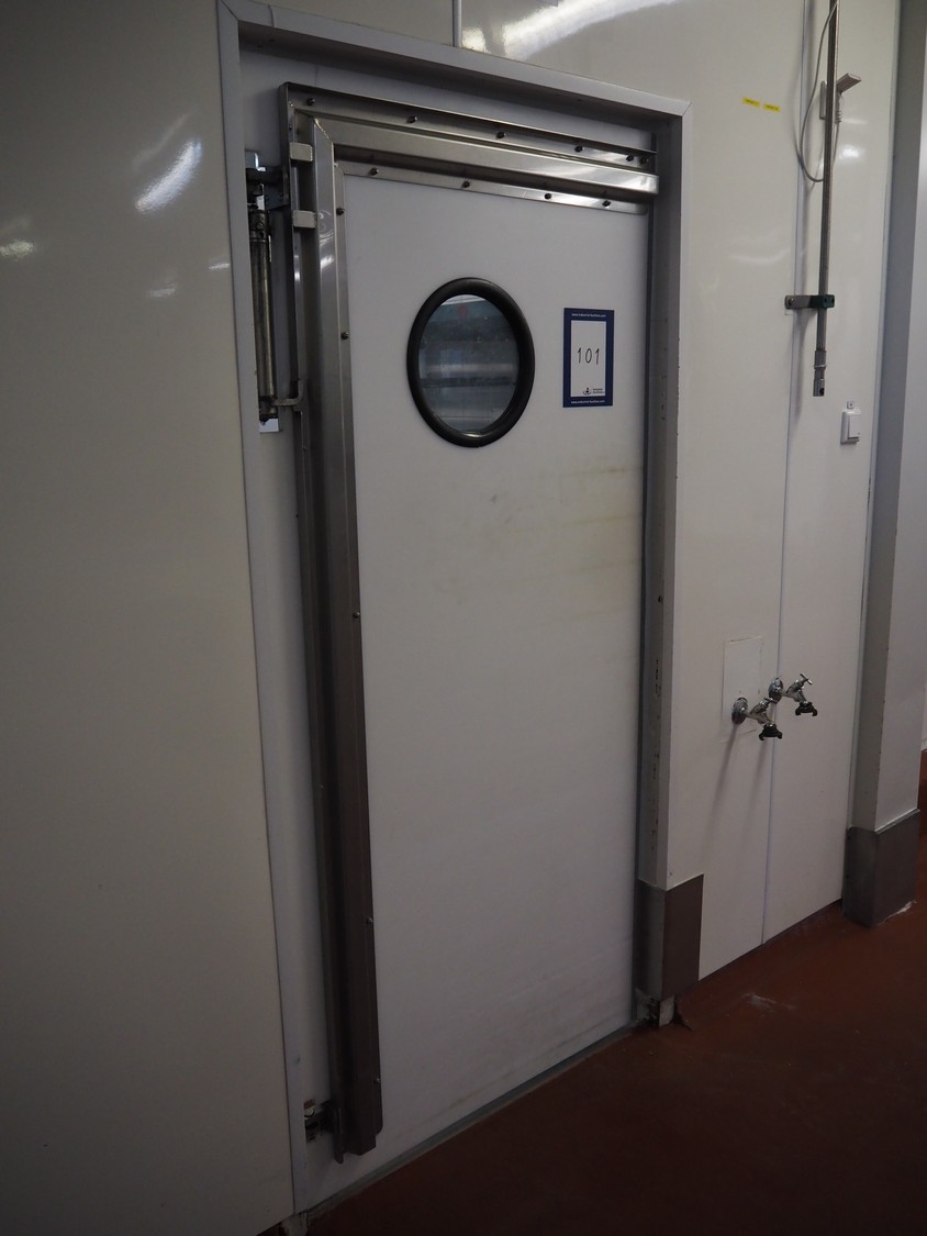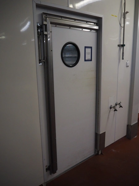 Plastic swing door, dimensions: 990 mm x 2100 mm.