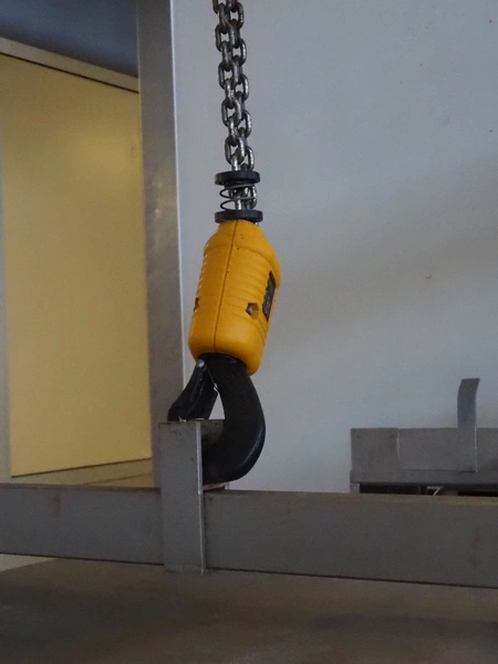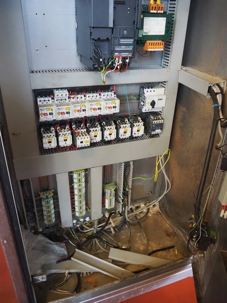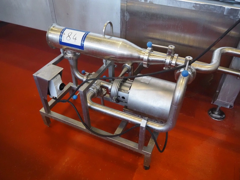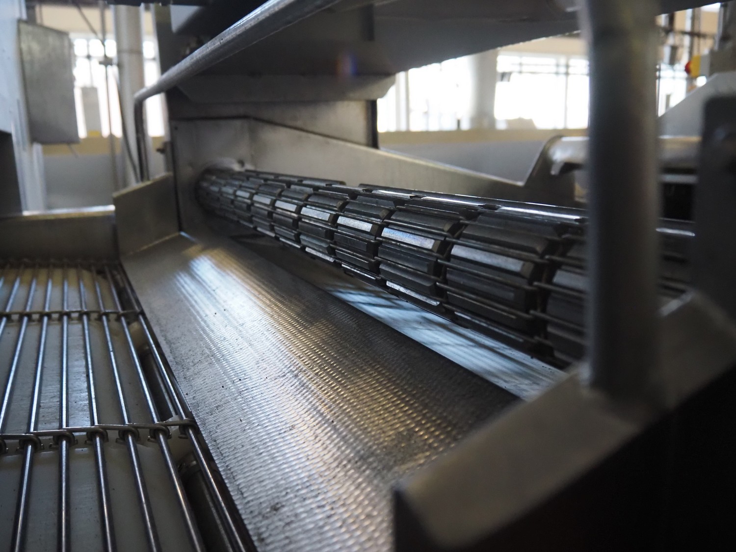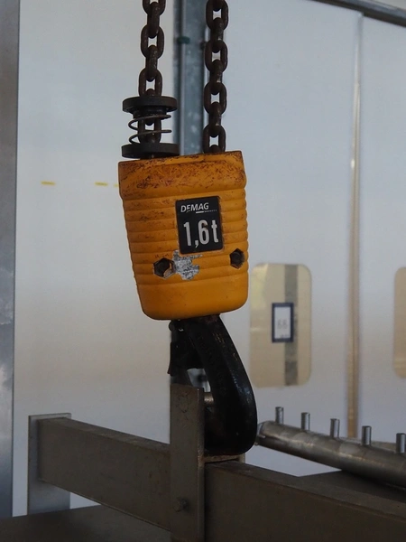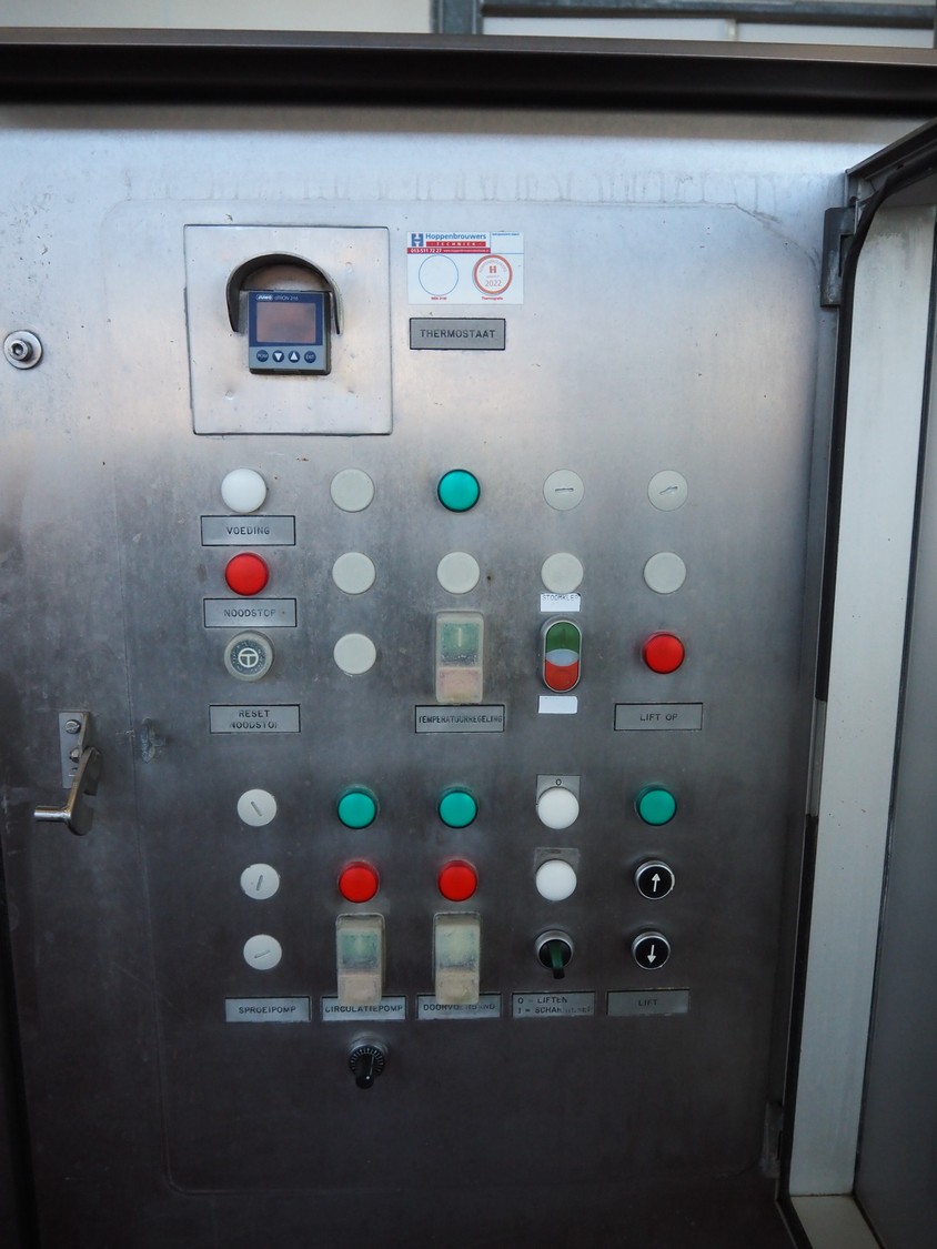 Koppens cooking line, type: WS 8000 / 900, machine number: WS 8000 / 900 - 89, year of construction: 1997, 380 V, 3 Ph, 50 Hz, 7.5 A, 1.6 kW, weight: 6500 kg, s/s mesh belt, belt width: 900 mm, cooking length: 8000 mm, dimensions cooking line: 9500 mm x 2000 mm x 3650 mm, 2 Demag electrical chain hoists, Alfa Laval centrifugal pump, type: LKH 5/132 SSS 2.2 kW, year of construction: 2004, dimensions centrifugal pump: 1100 mm x 600 mm x 900 mm.