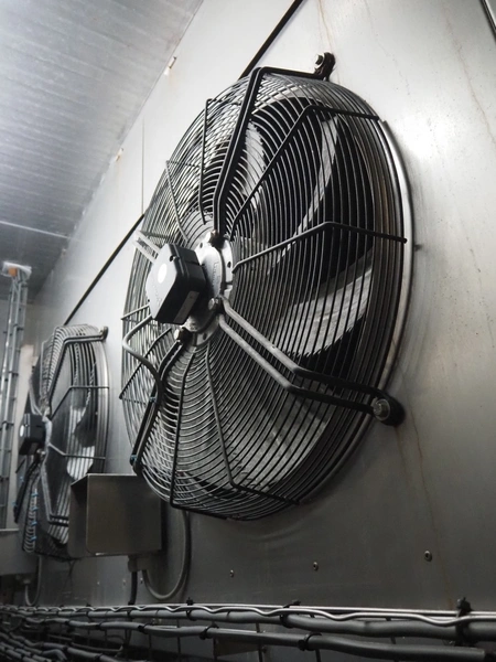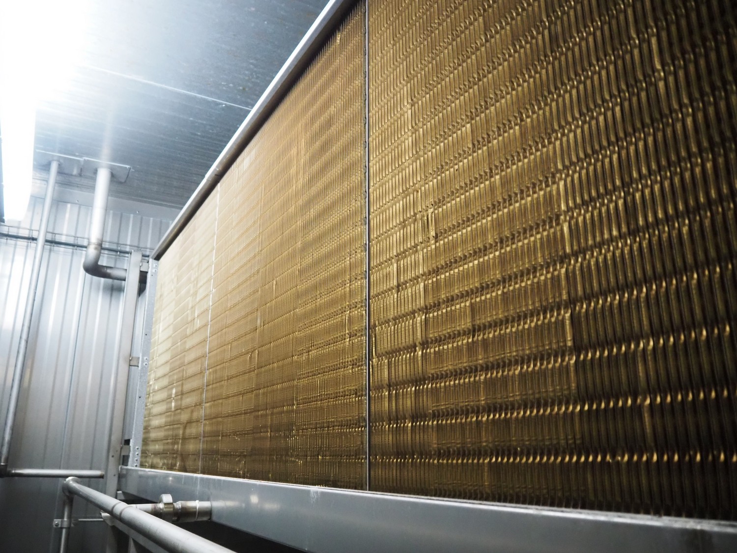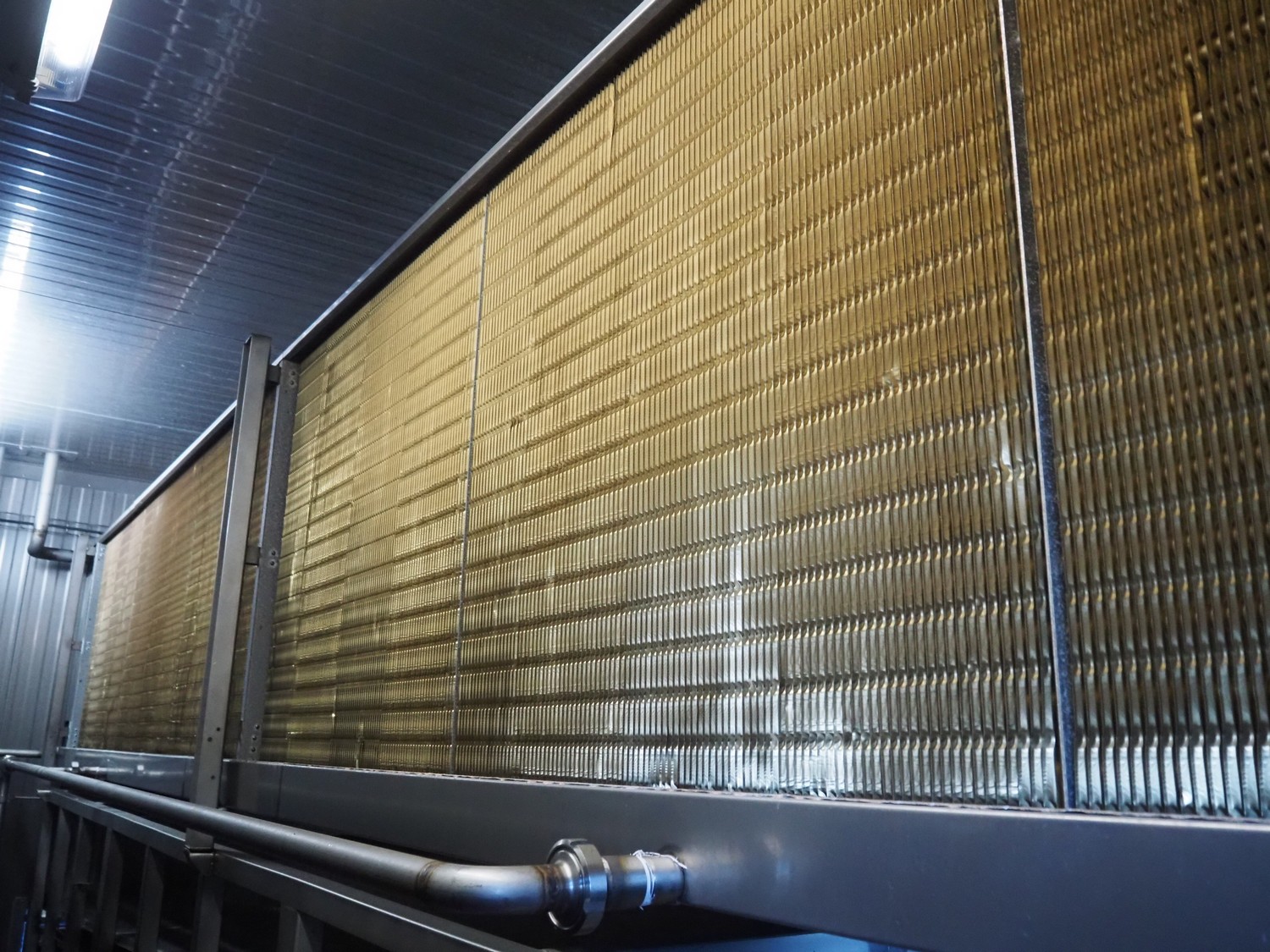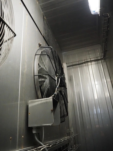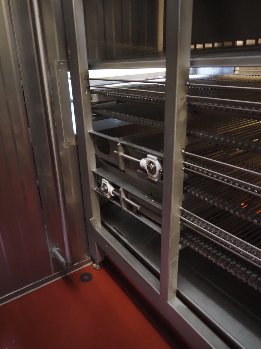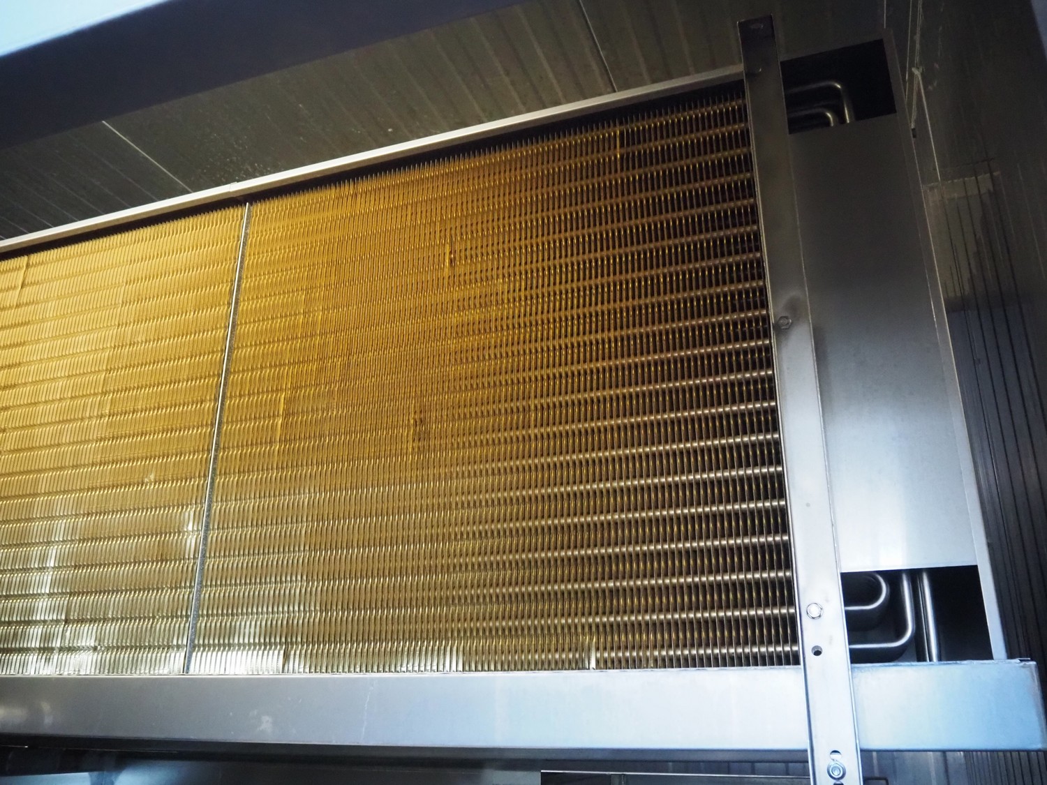 Koppens / GEA Goedhart B.V. cooling tunnel, type: KT3S 6000 / 1000, machine number: KT3S 6000 / 1000 - 138, 380 V, 3 Ph, 50 Hz, 1.12 A, 0.37 kW, 3 floors, s/s mesh belt, belt width: 1000 mm, GEA Goedhart B.V. evaporator, type: LLK.s 411 m², manufacturing number: PJV100282, year of construction: 2010, volume: 135 dm³, refrigerant: NH3, weight: 770 kg, working pressure: 22 bar, test pressure: 32 bar, total dimensions including cooling panels and s/s door: 7500 mm x 2700 mm x 3300 mm.