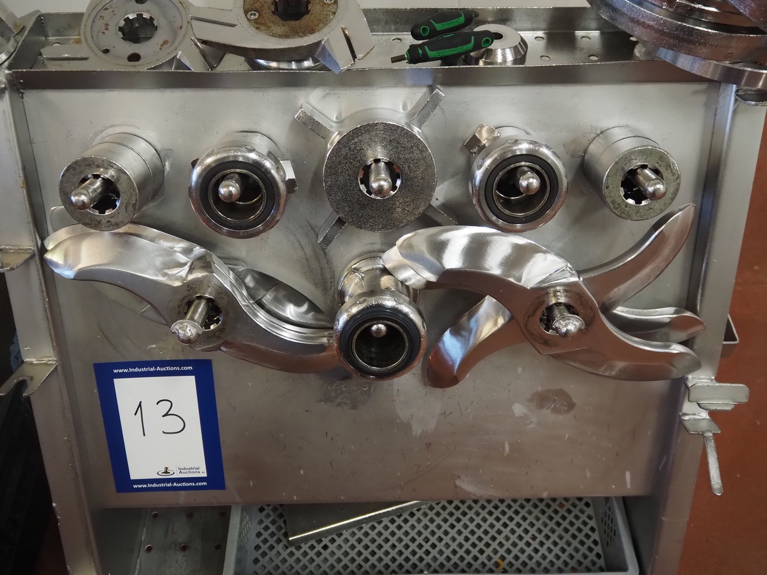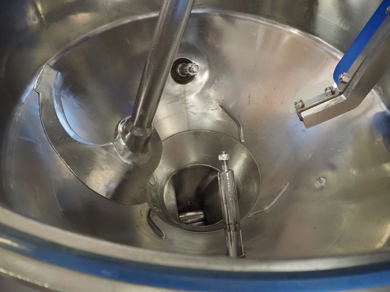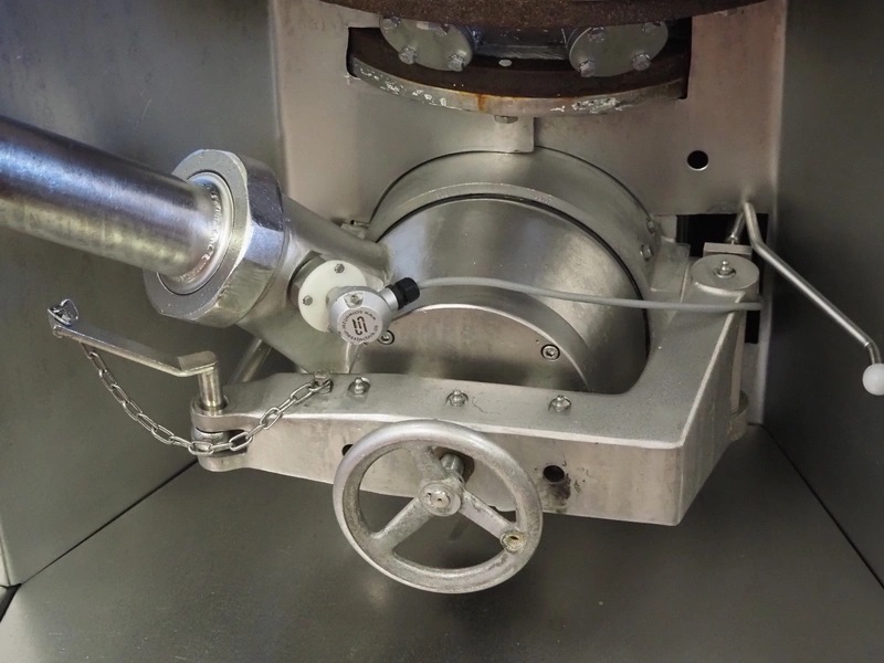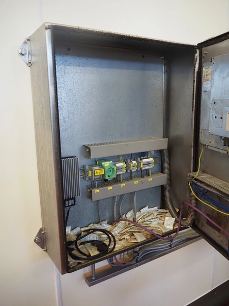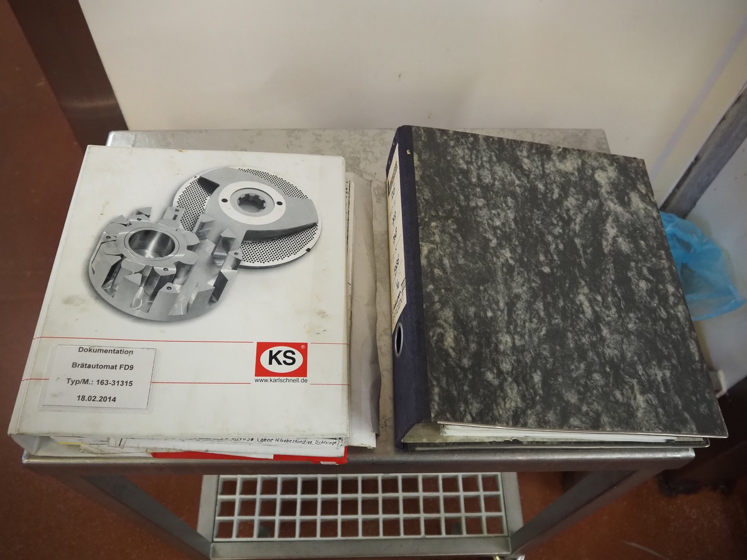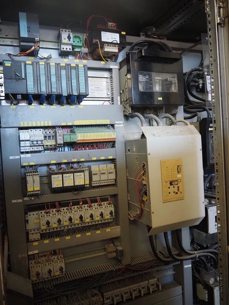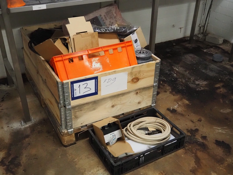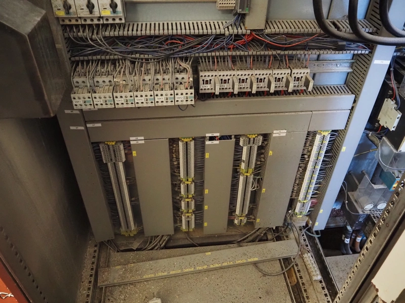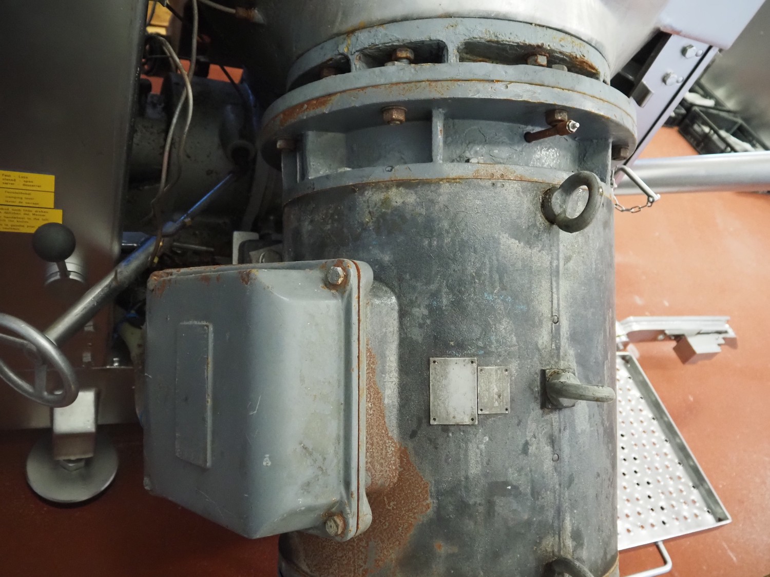 Karl Schnell emulsifier with lifter for 200 liter meat bins, type: FD9, machine number: 31315, year of construction: 2002, 400 V, 50 Hz, 400 A, 200 kW, dimensions emulsifier: 4100 mm x 2800 mm x 2700 mm, switch cabinet, dimensions: 1700 mm x 600 mm x 2300 mm, control panel, dimensions: 600 mm x 300 mm x 700 mm, including 2 rollies and trolley with large amount of plates and knifes, dimensions trolley: 1100 mm x 600 mm x 1000 mm, including pallet with various parts.