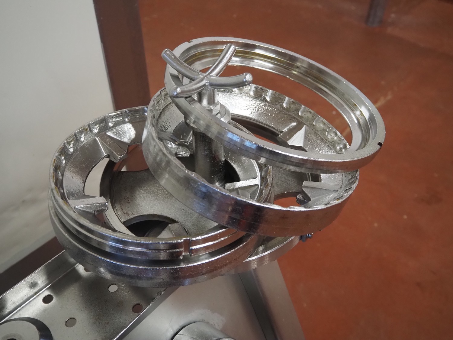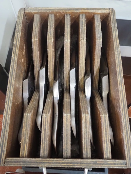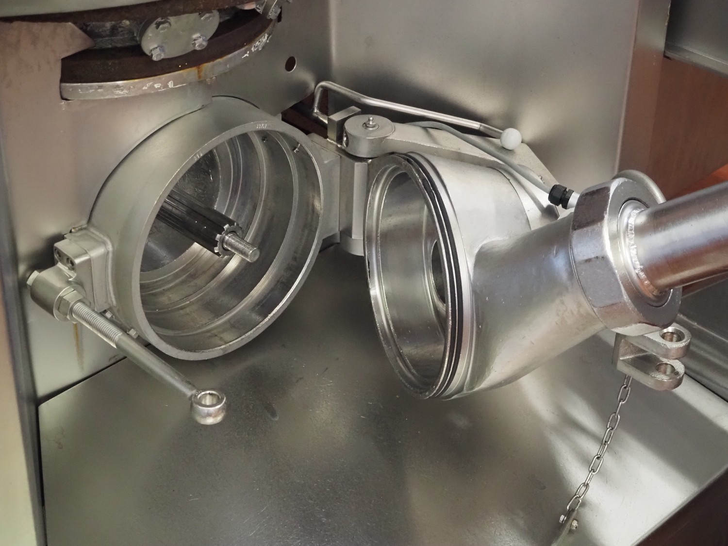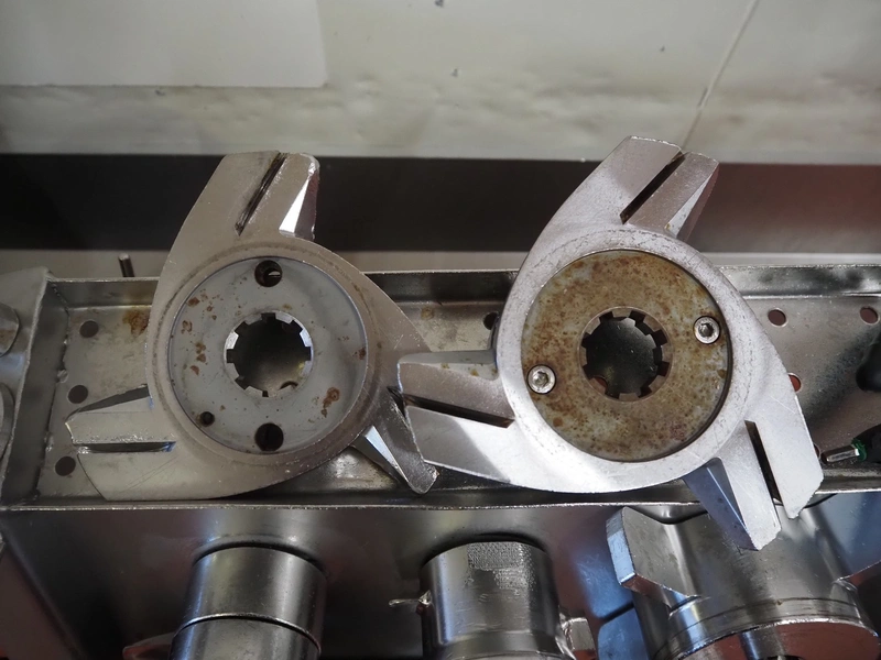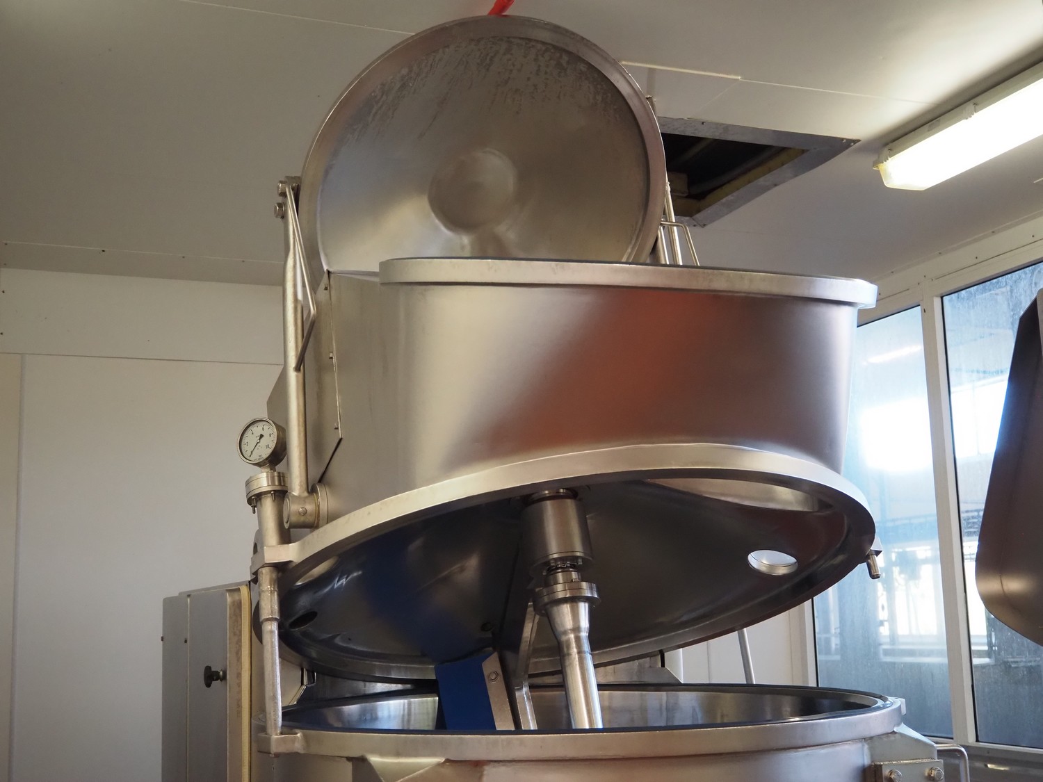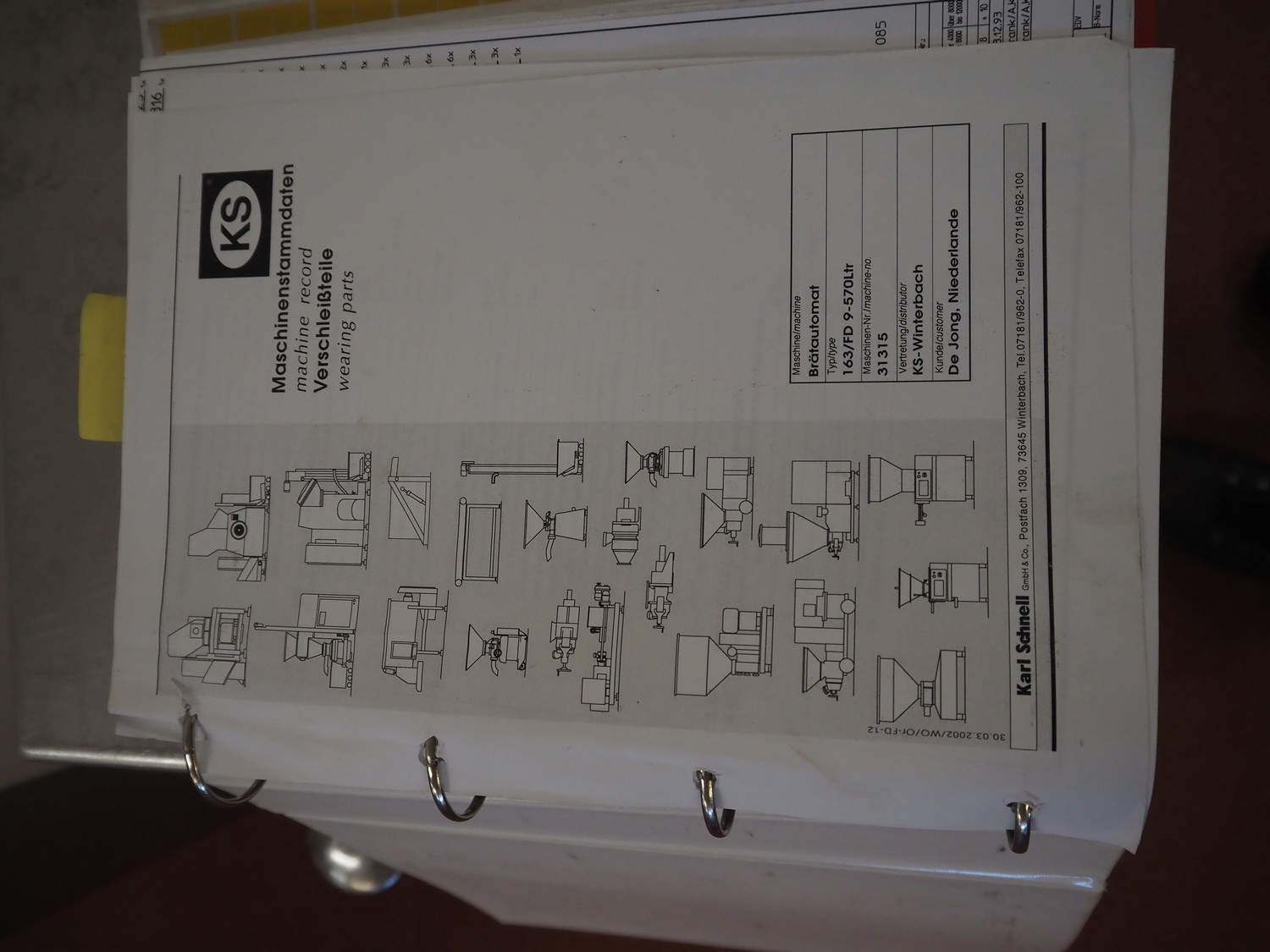 Karl Schnell emulsifier with lifter for 200 liter meat bins, type: FD9, machine number: 31315, year of construction: 2002, 400 V, 50 Hz, 400 A, 200 kW, dimensions emulsifier: 4100 mm x 2800 mm x 2700 mm, switch cabinet, dimensions: 1700 mm x 600 mm x 2300 mm, control panel, dimensions: 600 mm x 300 mm x 700 mm, including 2 rollies and trolley with large amount of plates and knifes, dimensions trolley: 1100 mm x 600 mm x 1000 mm, including pallet with various parts.