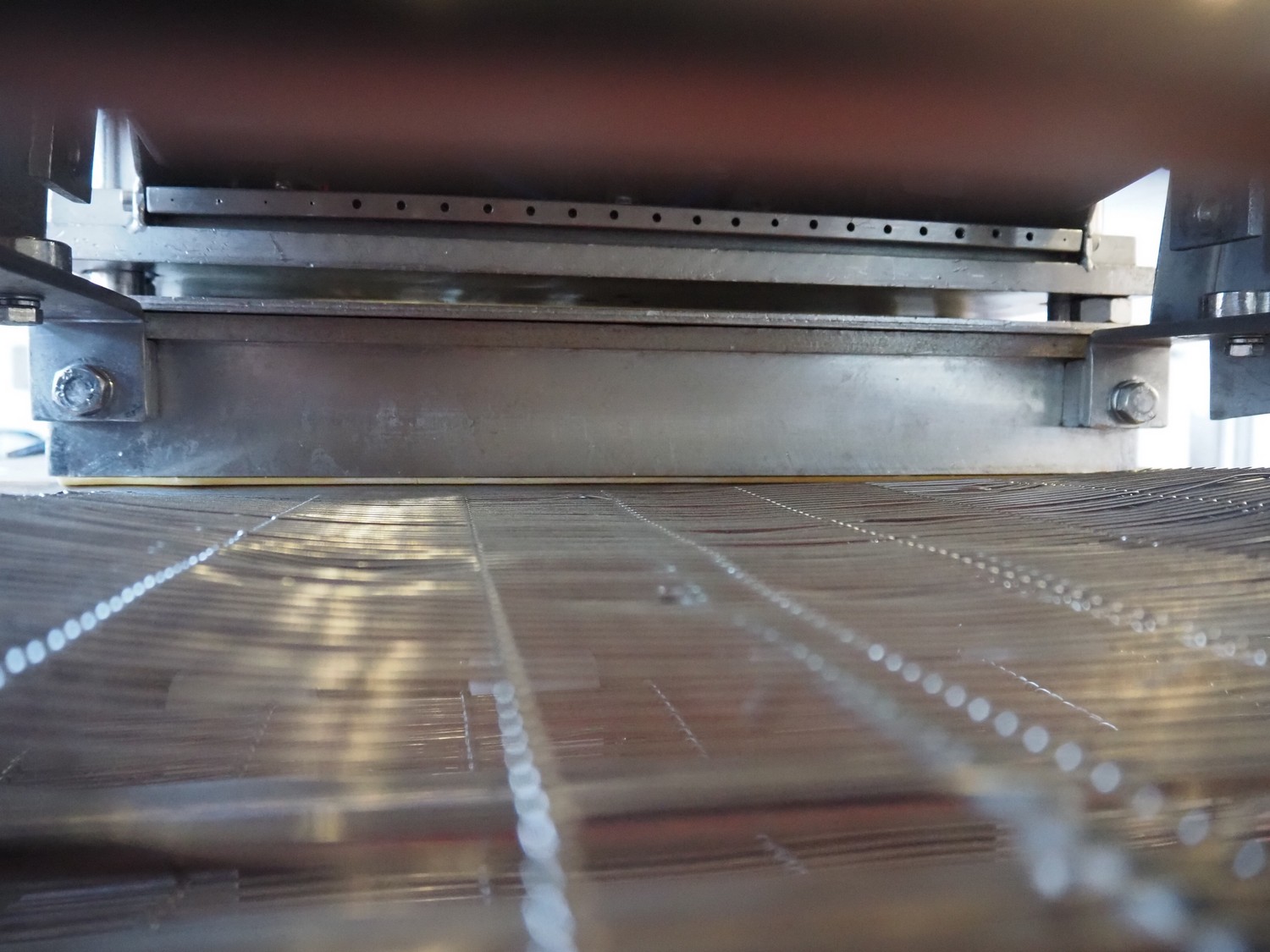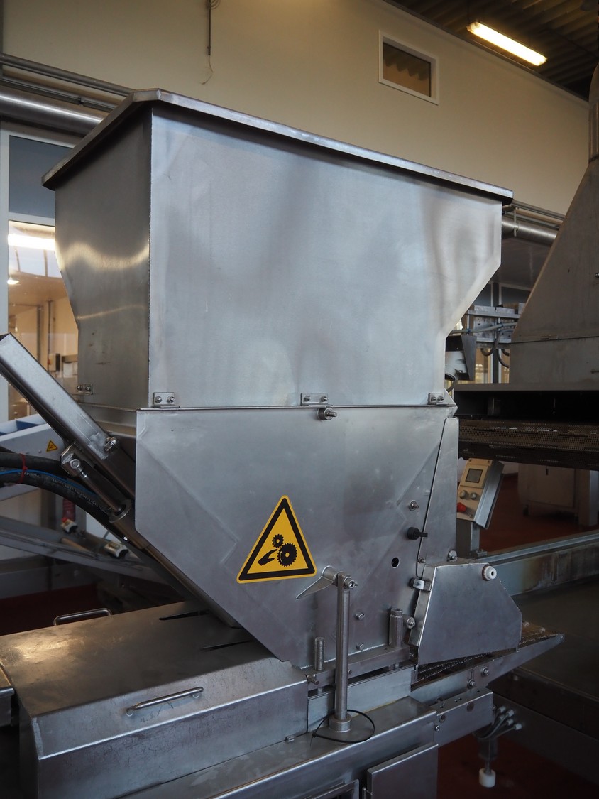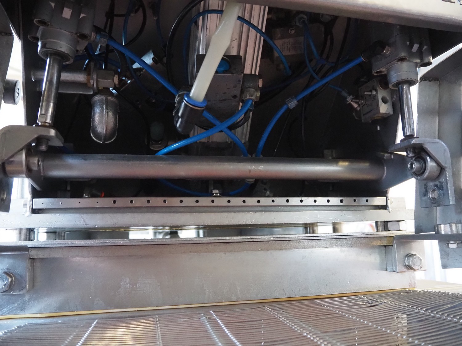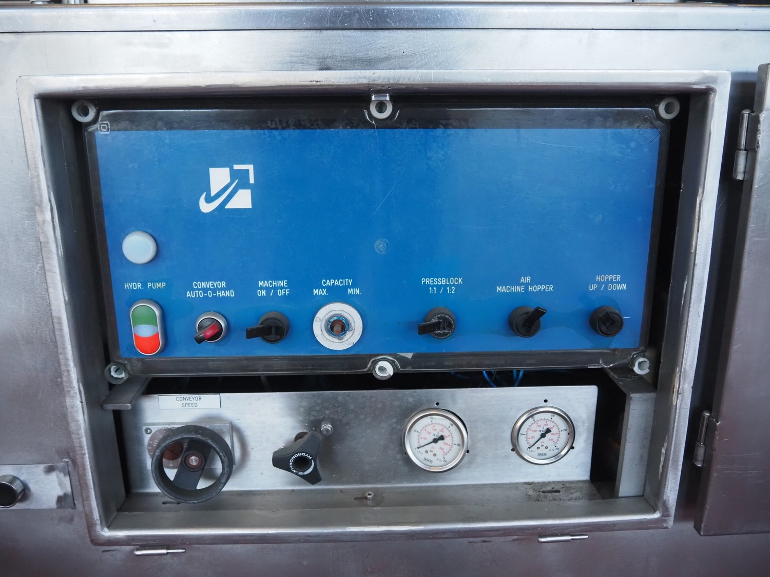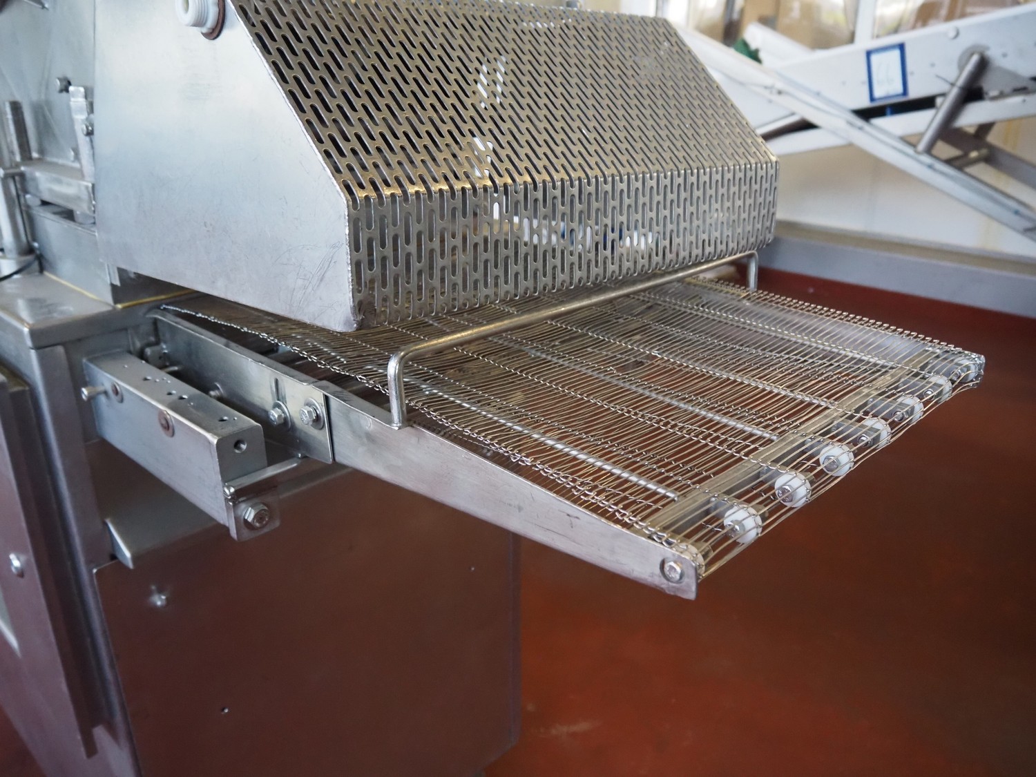 Koppens mobile forming machine, type: VM400HD, 3 x 400 V, 50 Hz, 7.8 kW, s/s mesh belt, belt width: 400 mm, capacity: maximum 50 strokes per minute, weight: 820 kg, total dimensions: 2150 mm x 800 mm x 2250 mm.