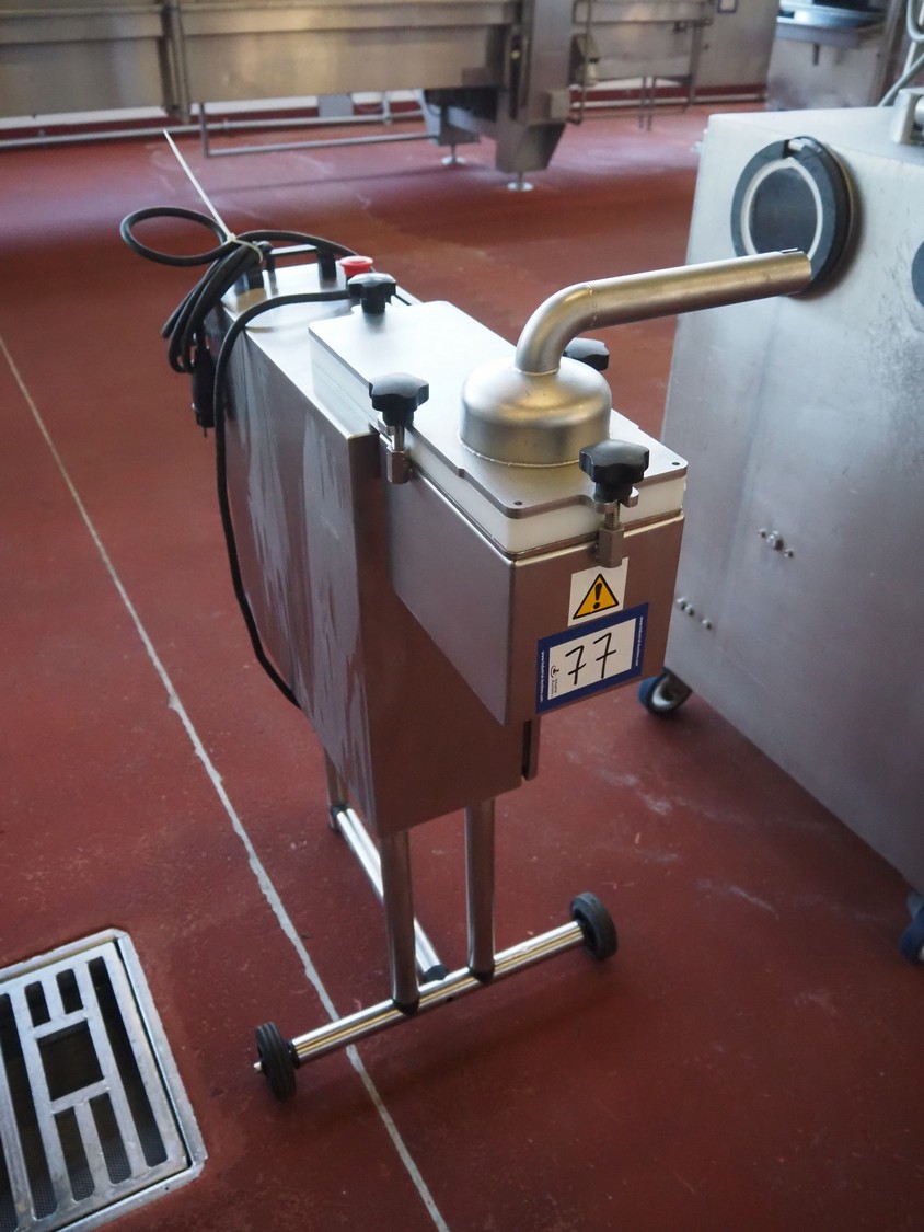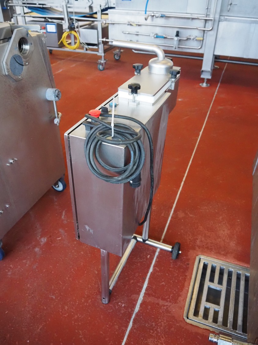 Meat ball forming machine, type: T-03-ZF, serial number: MBZF13, year of construction: 2006, diameter: (8x) 10 mm, inlet: 100 mm, total dimensions: 800 mm x 550 mm x 1120 mm.