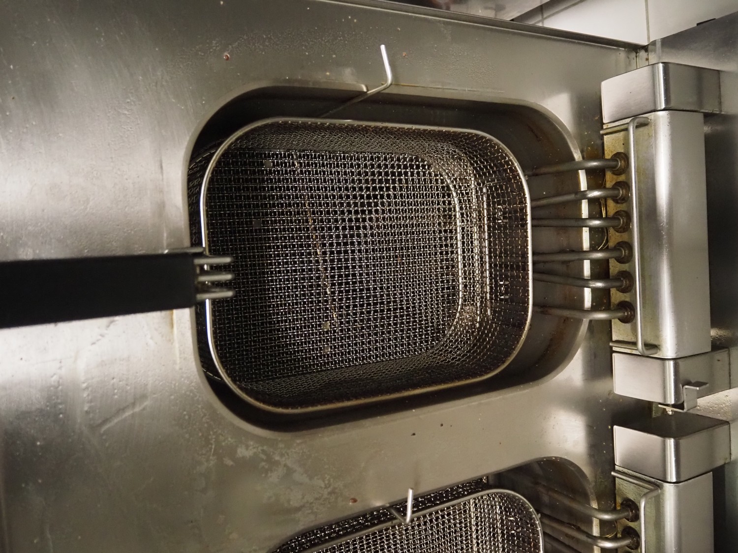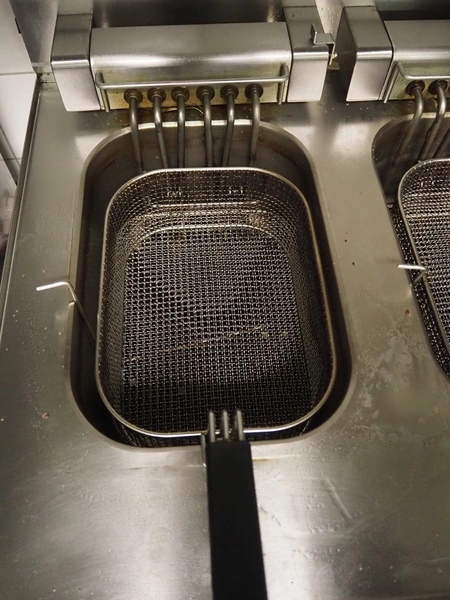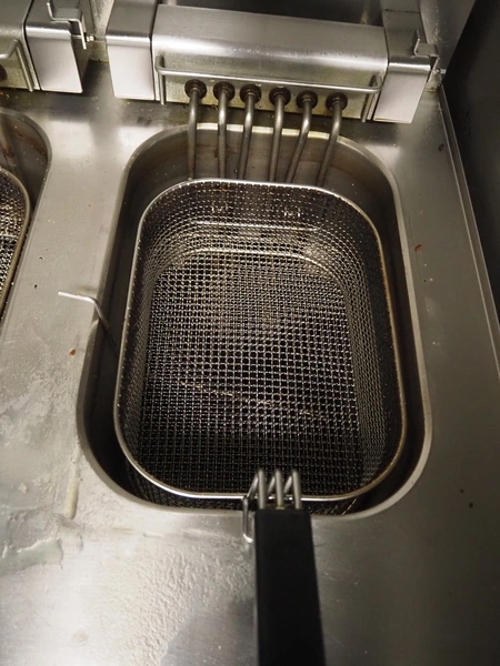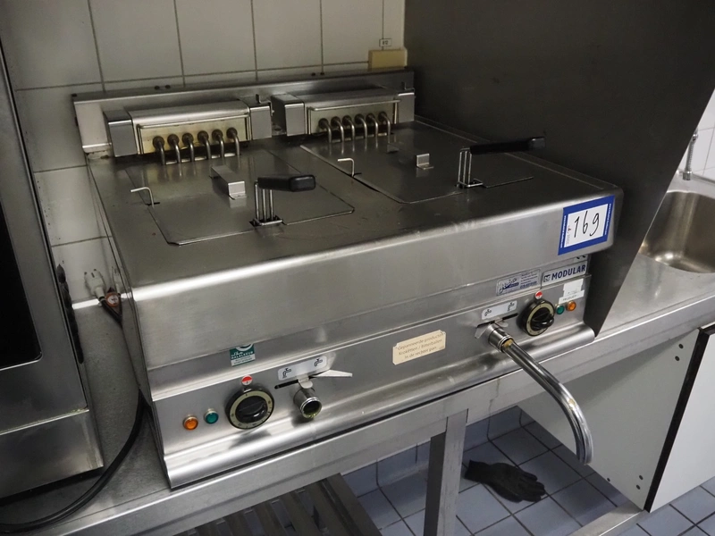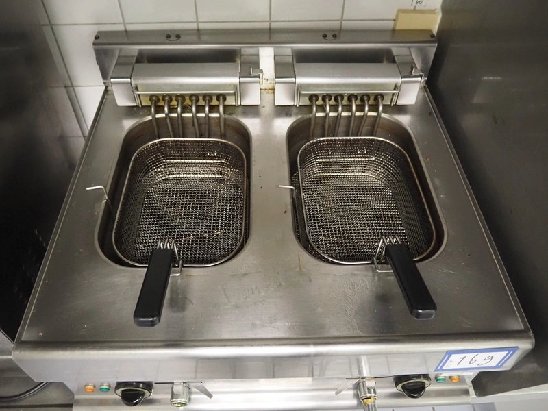 Modular fryer with 2 baskets, dimensions: 700 mm x 700 mm x 450 mm.
