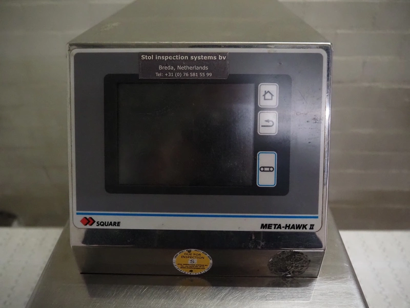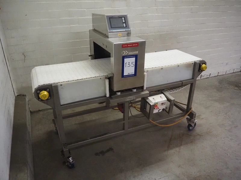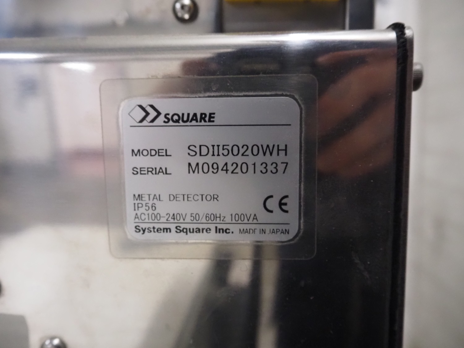 System Square Inc. mobile metal detector, model: SDII5020WH, serial: M094201337, 100 - 240 V, 50/60 Hz, 100 VA, plastic belt, belt width: 455 mm, clearance: 500 mm x 190 mm, total dimensions: 1800 mm x 900 mm x 1350 mm.