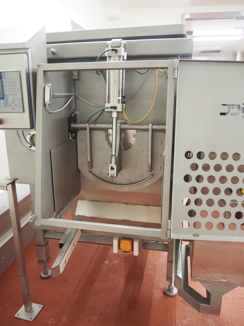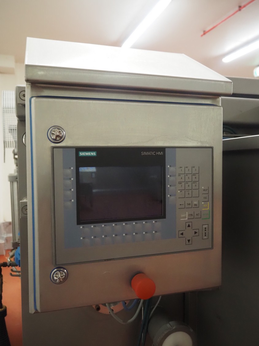 Inotec double shaft paddle mixer with cooling by injection in the hopper, type: IM-1000, serial number: 0208-IPM00128, year of construction: 2002, 3 x 400 V, 50 Hz, 13.5 kW, volume: 100 liter, infeed height: 1800 mm, Siemens touch control panel, total dimensions: 3000 mm x 1700 mm x 2100 mm.