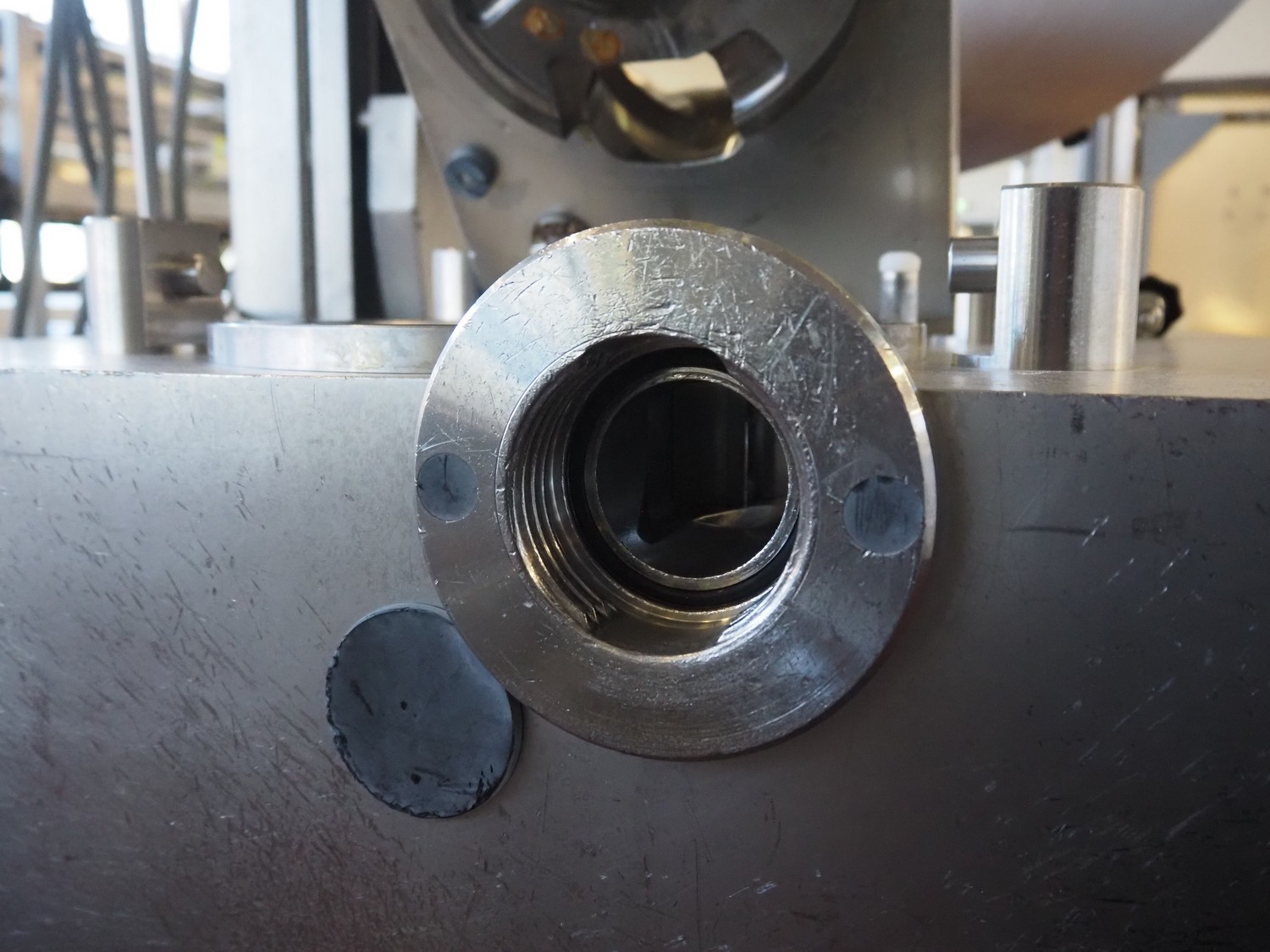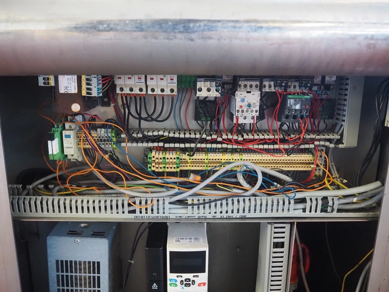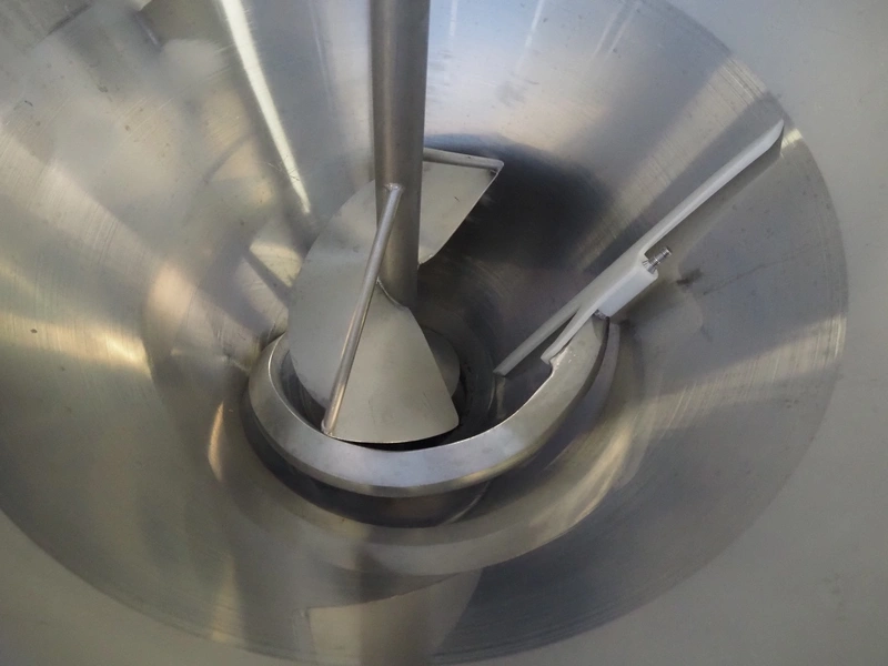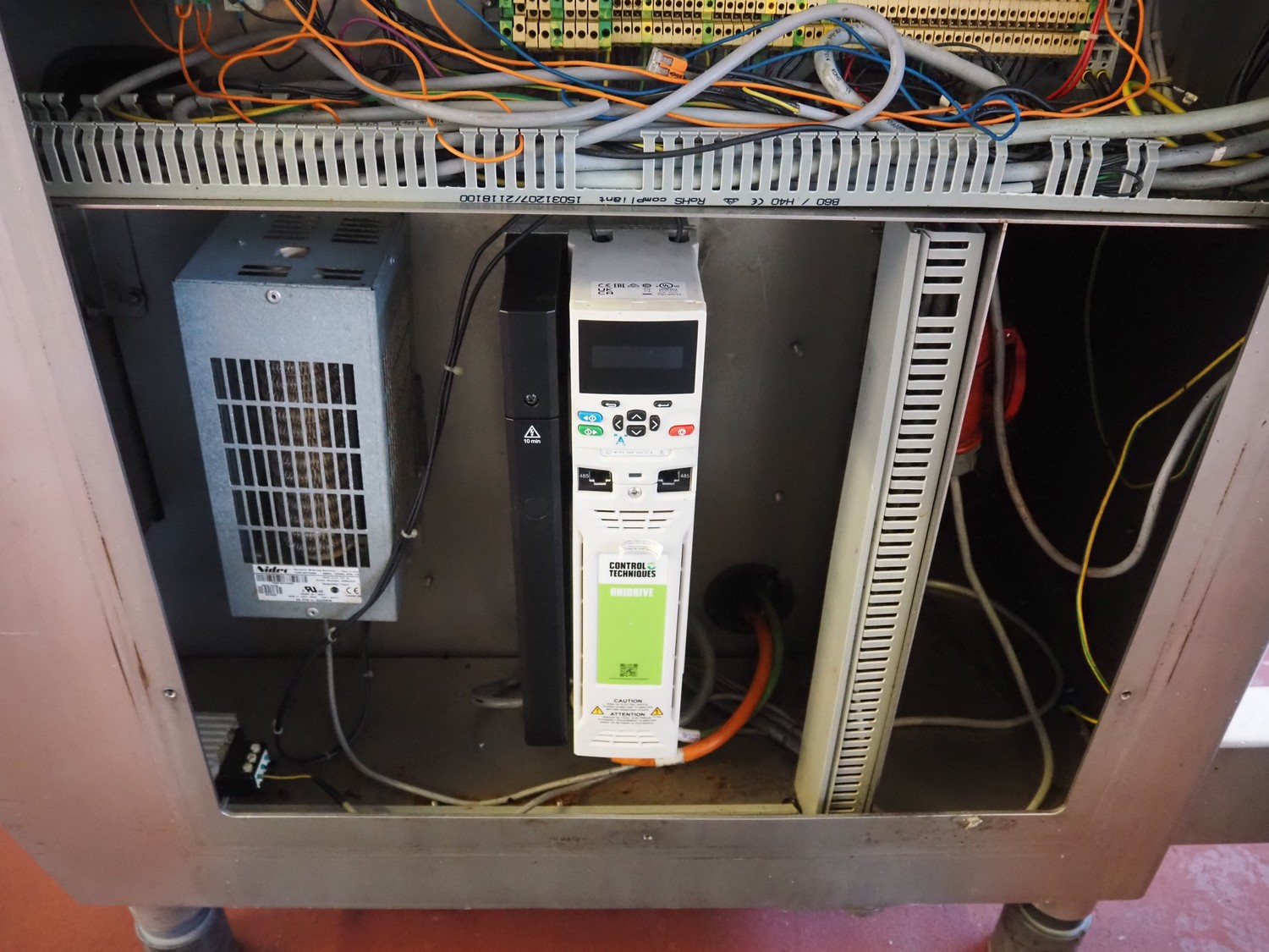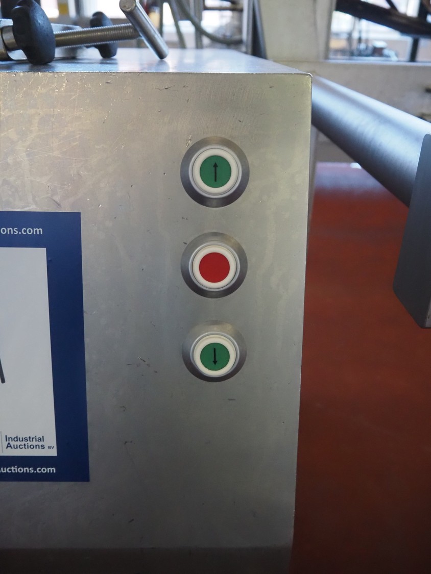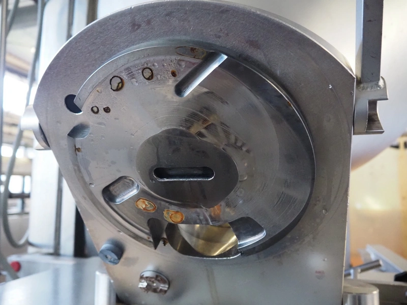 Schrofner / HTS vacuum filling machine with lifter for 200 liter meat bins, type: HTS 250-SP/OP, machine number: Schrofner 2013, built-in Busch vacuum pump, type: KC 0016 E 3ZO, year of construction: 2021, capacity: 19 m³ per hour, total dimensions: 1700 mm x 1200 mm x 1950 mm.