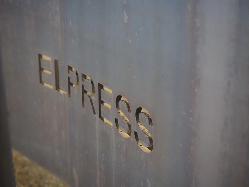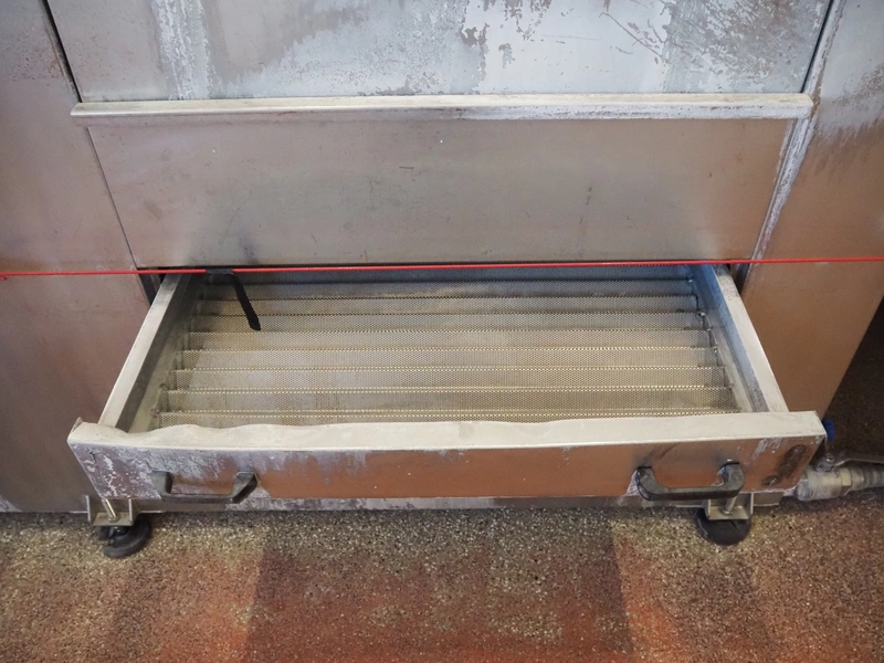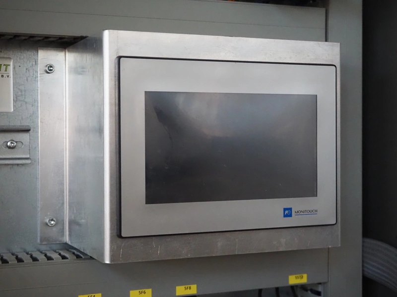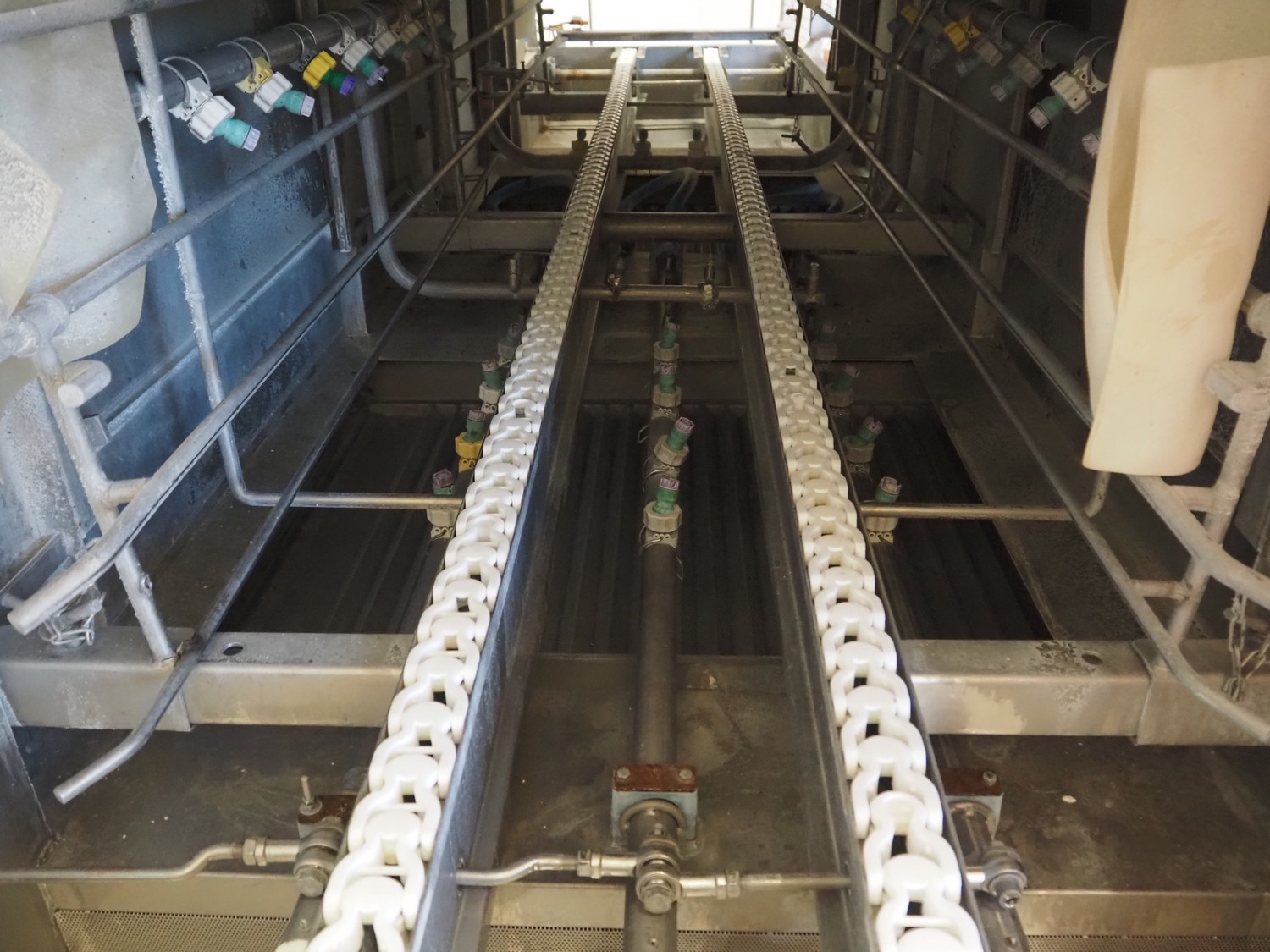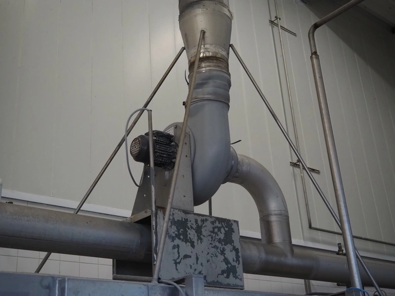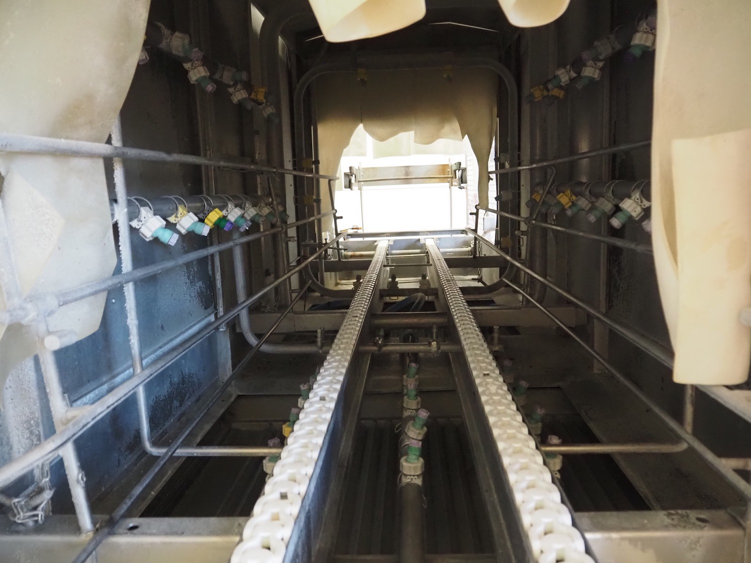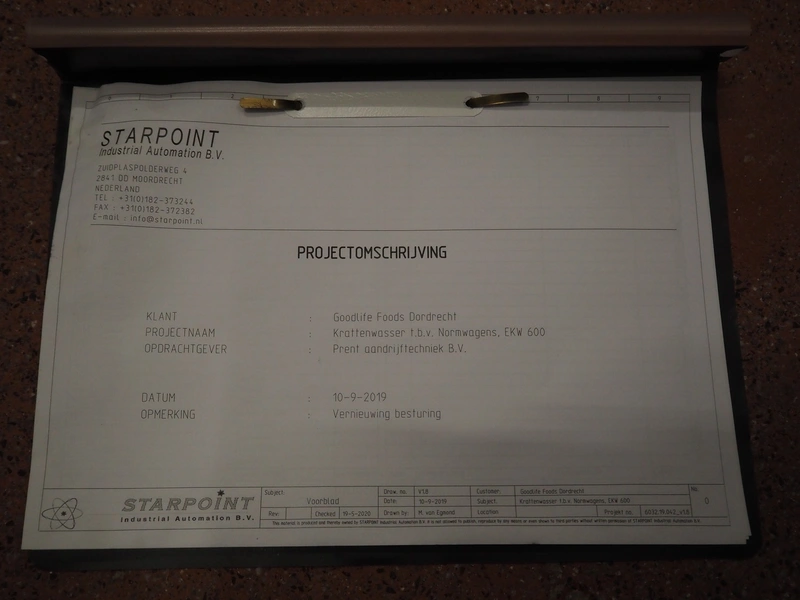 Elpress washing machine for meat bins, model: EKW 600, clearance: 800 mm x 800 mm, total dimensions: 8100 mm x 2050 mm x 3200 mm.