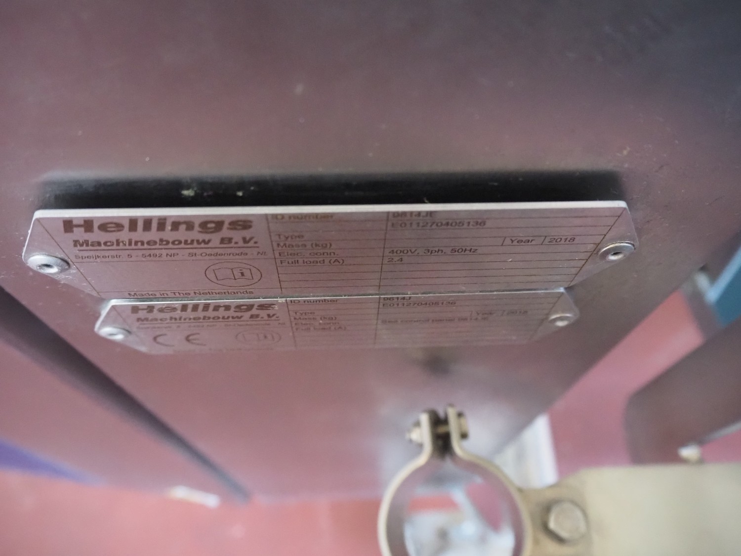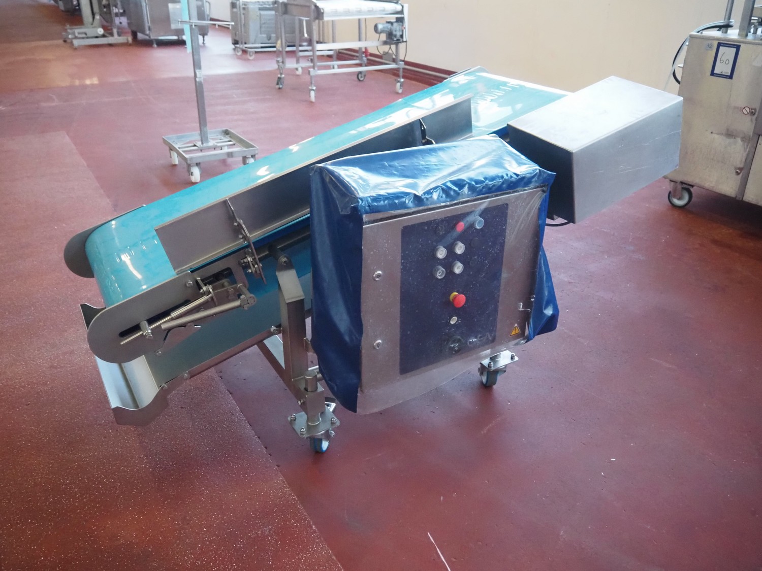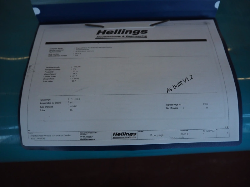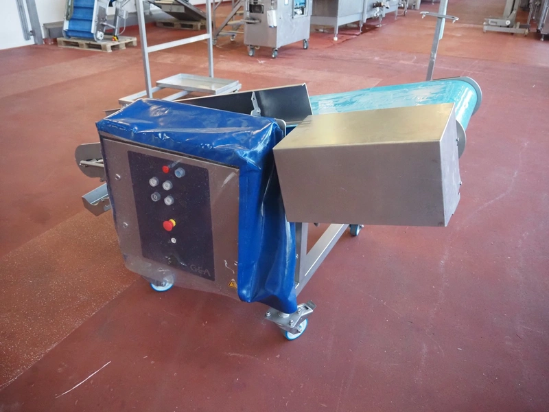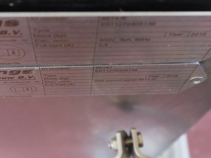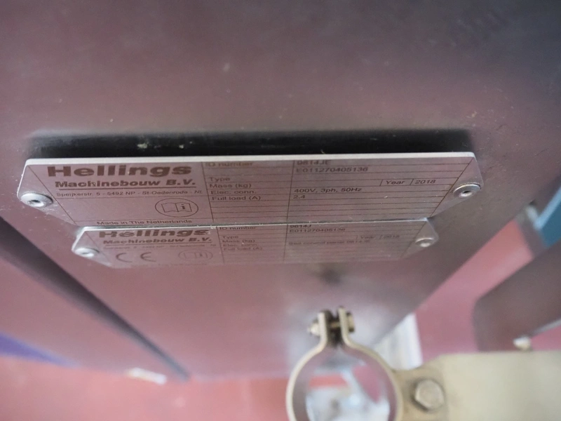 GEA / Hellings Machinebouw B.V. mobile elevating belt, serial number: E011270405136, year of construction: 2018, 400 V, 3 Ph, 50 Hz, s/s frame, plastic belt, belt width: 600 mm, elevating height: 1000 mm, total dimensions: 1900 mm x 1250 mm x 1100 mm.
