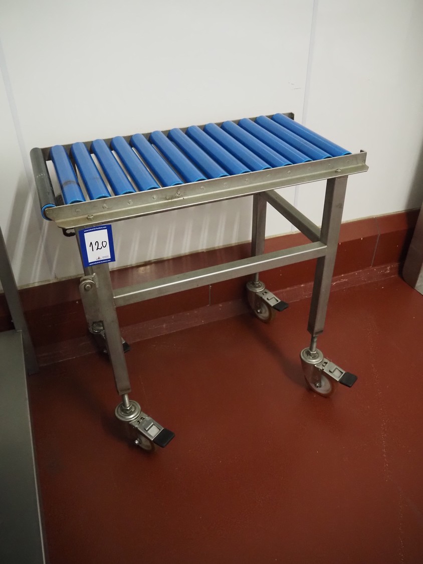 Roller conveyor, s/s frame, plastic rollers, roll width: 400 mm, total dimensions: 860 mm x 500 mm x 900 mm.