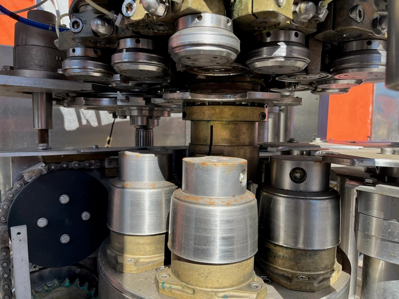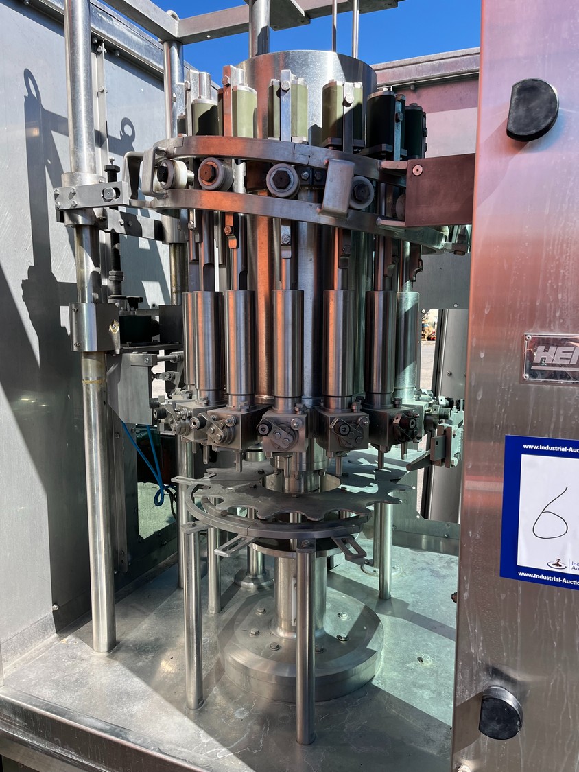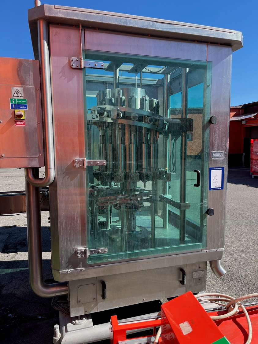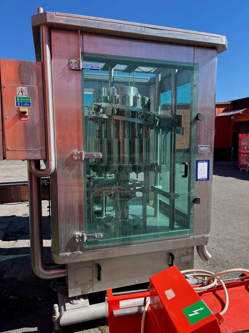 Hema can filling and closing line consisting of Hema can filling machine, type: MRH 15/12, year of construction: 2002, 15 filling heads and Hema can closing machine, type: AGM6.RN, serial number: 8320.