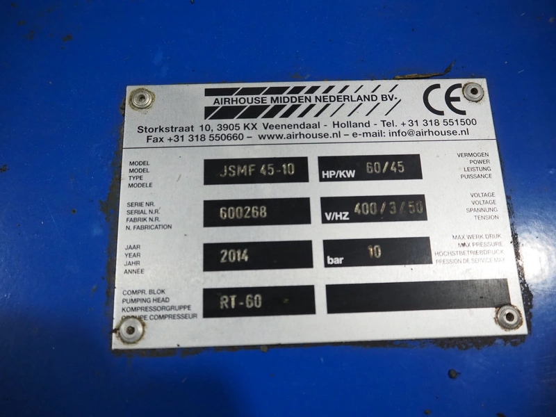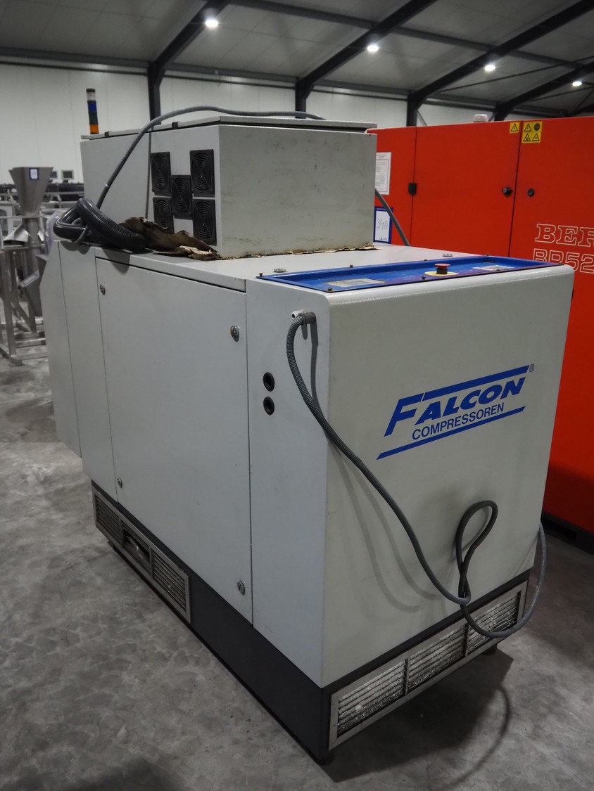 Falcon air compressor, type: 45kW, serial number: 600268, year of construction: 2014, 400 V, 3 Ph, 50 Hz, 45 kW, maximum pressure: 10 bar, dimensions: 1900 mm x 1050 mm x 1300 mm.