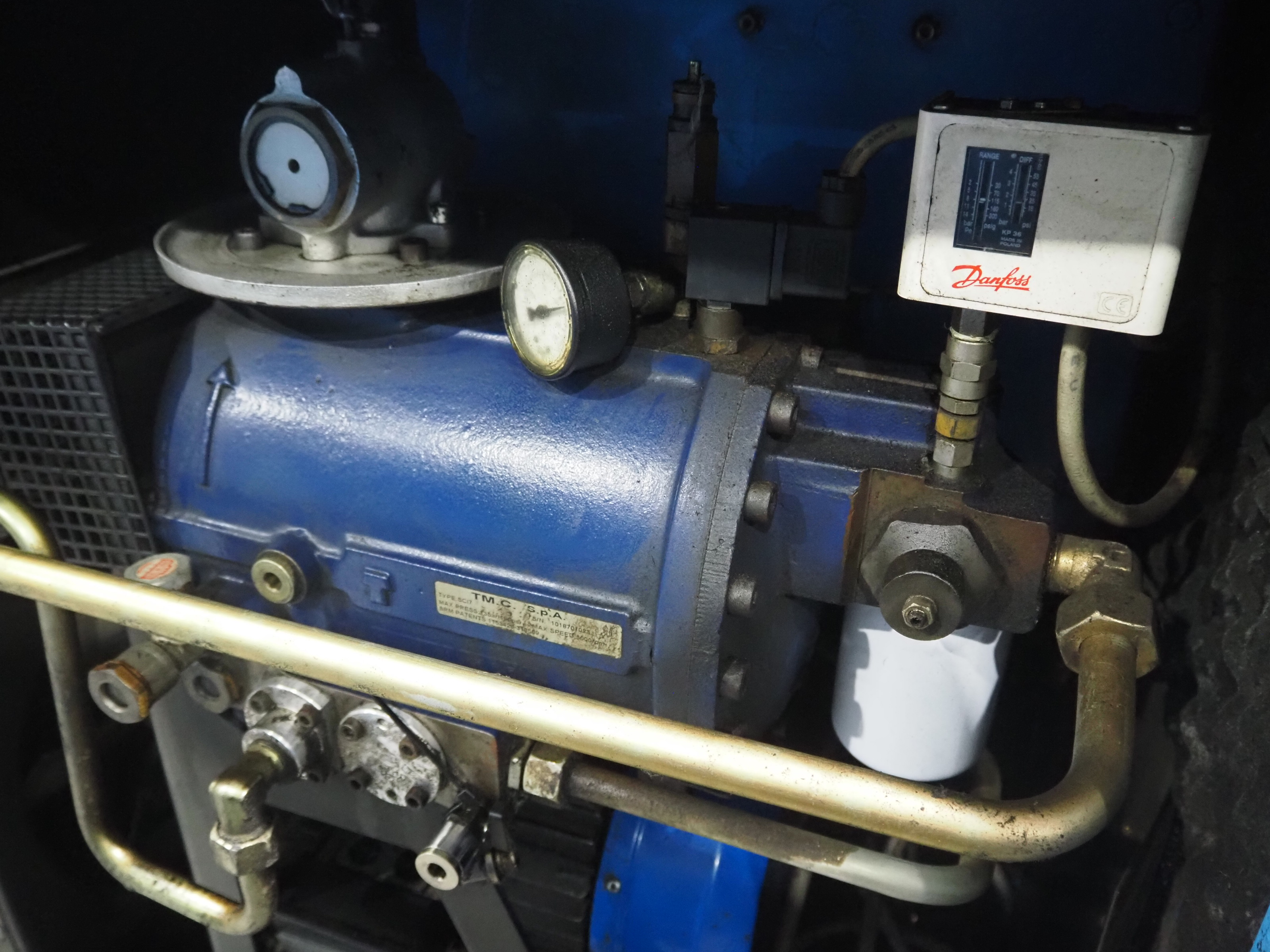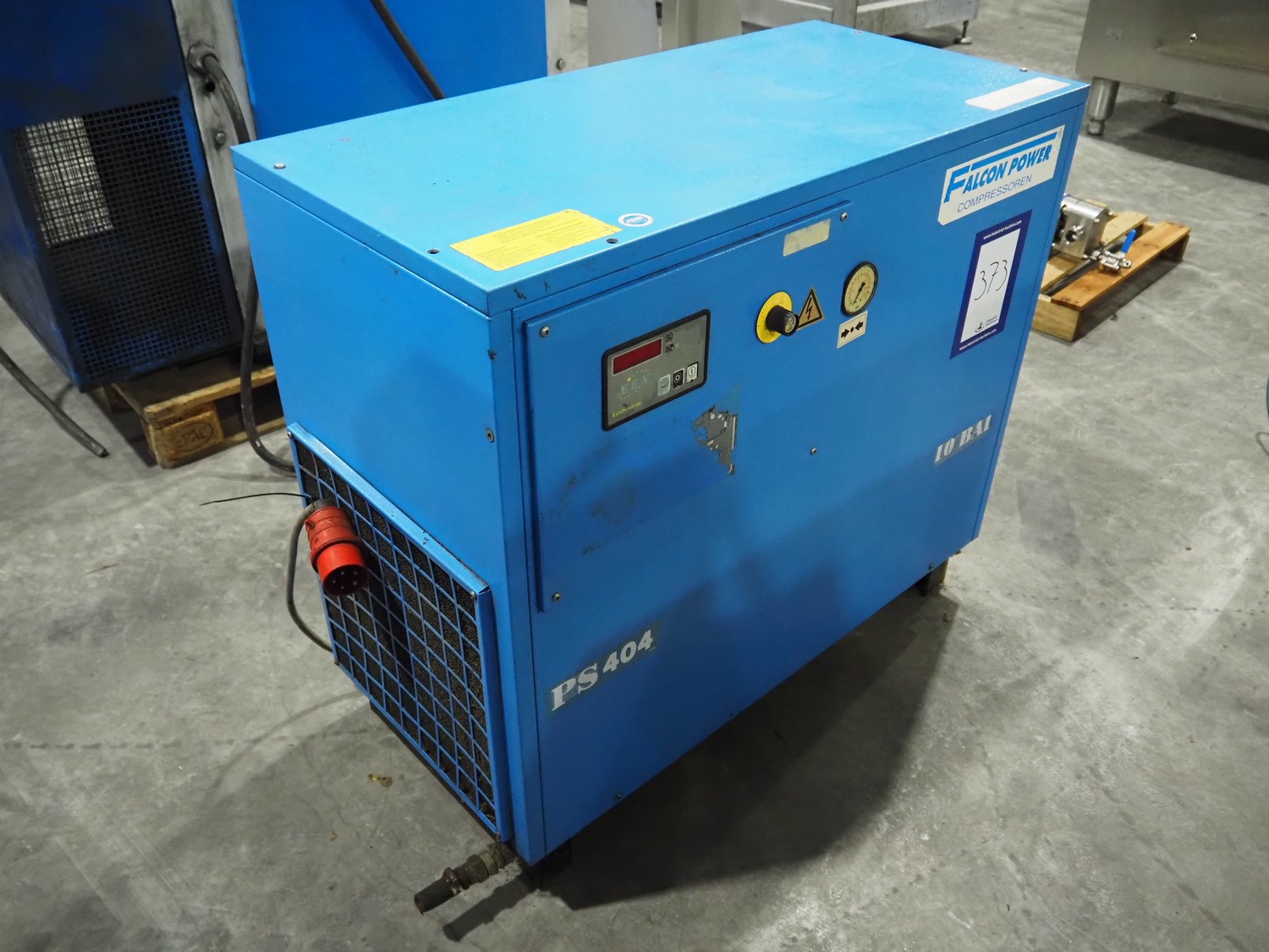 Falcon air compressor, type: PS404, serial number: 20014, year of construction: 2000, dimensions: 1150 mm x 550 mm x 950 mm.