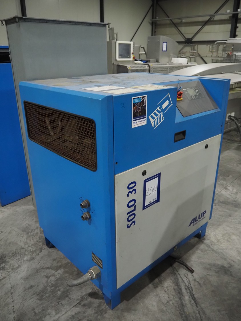 Alup Kompressoren GmbH compressor, type: SOLO 30, production number: F0707167, year of construction: 2007, maximum working pressure: 13 bar, dimensions: 1300 mm x 1200 mm x 1700 mm.