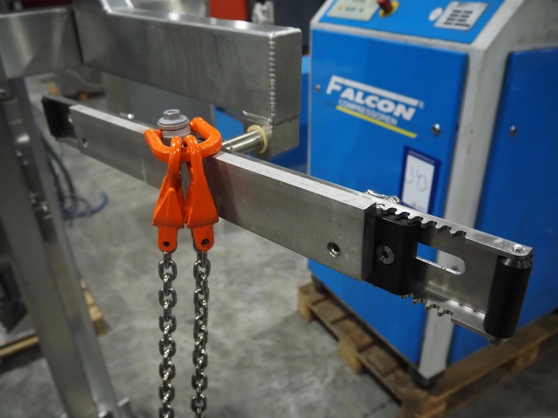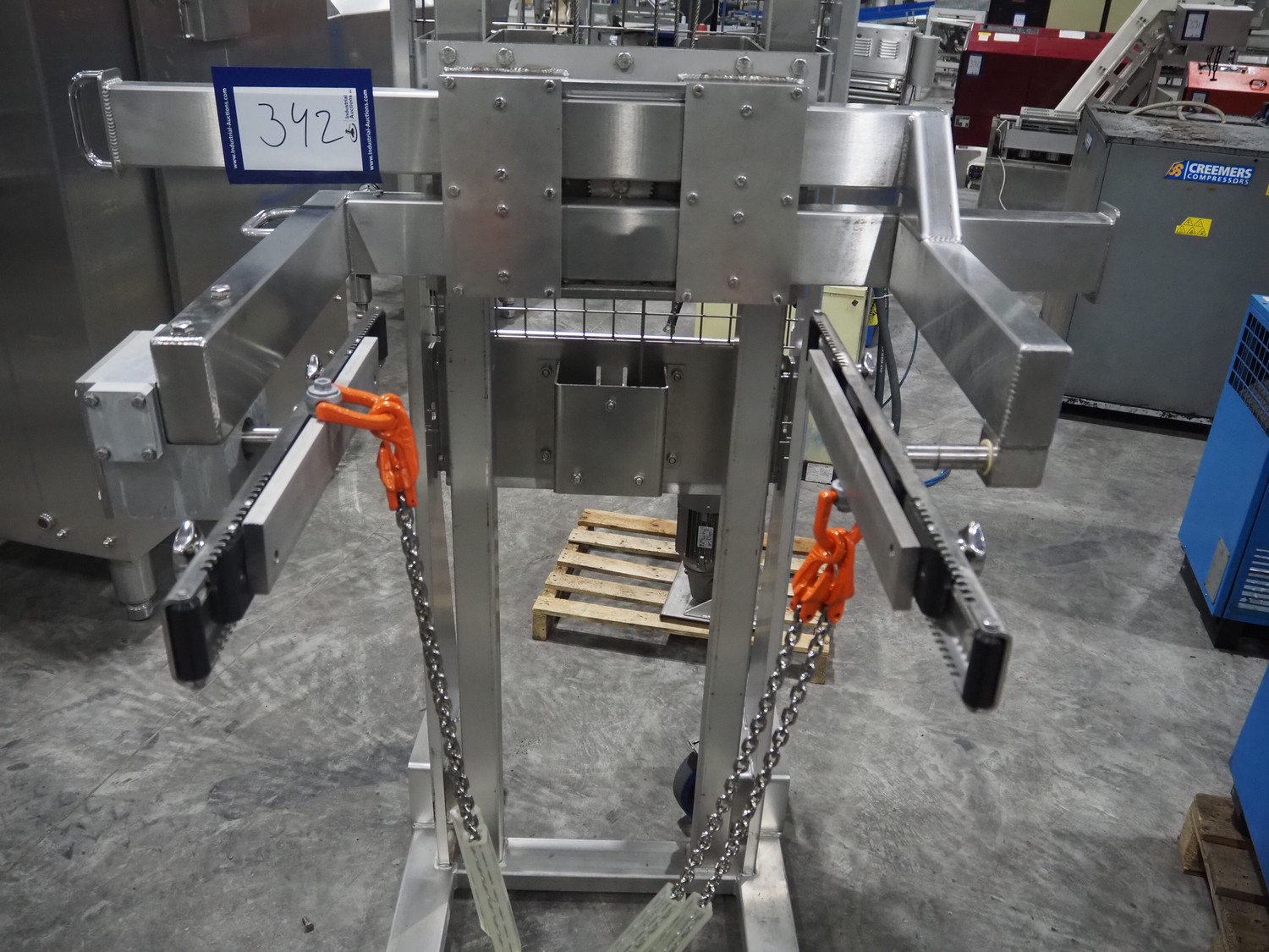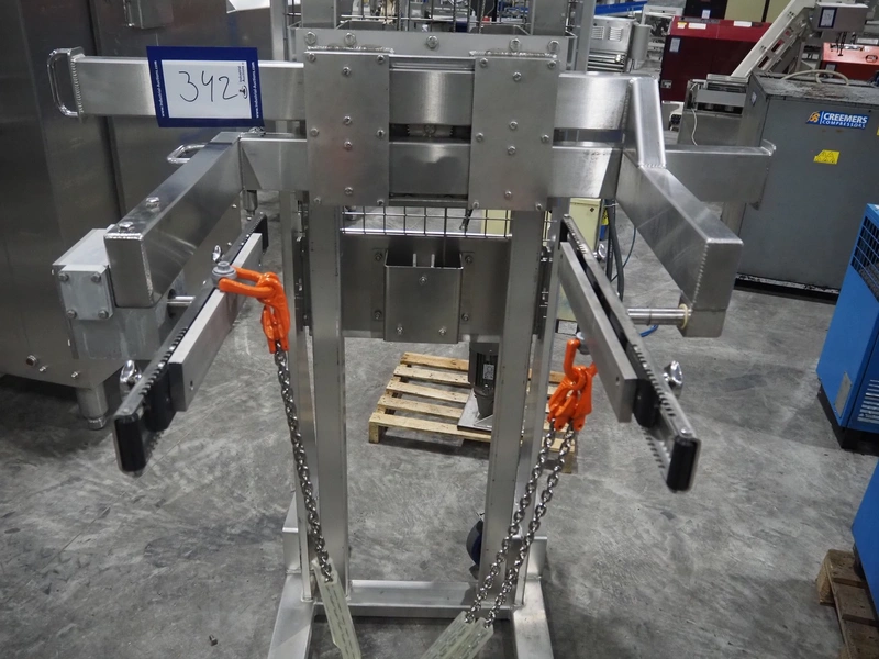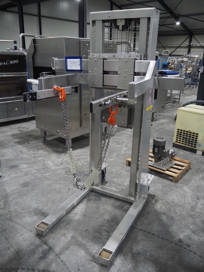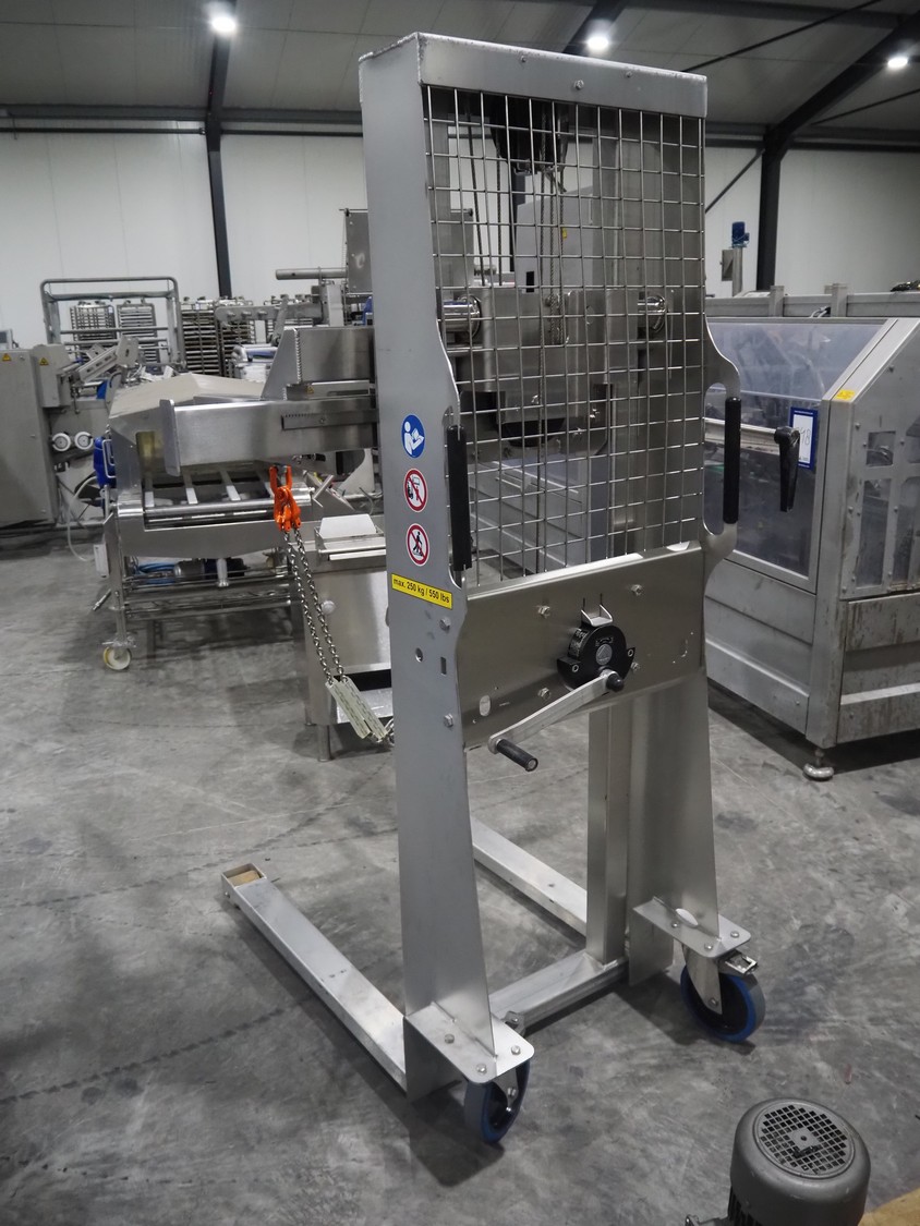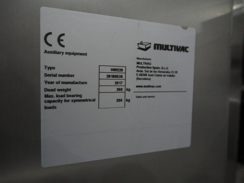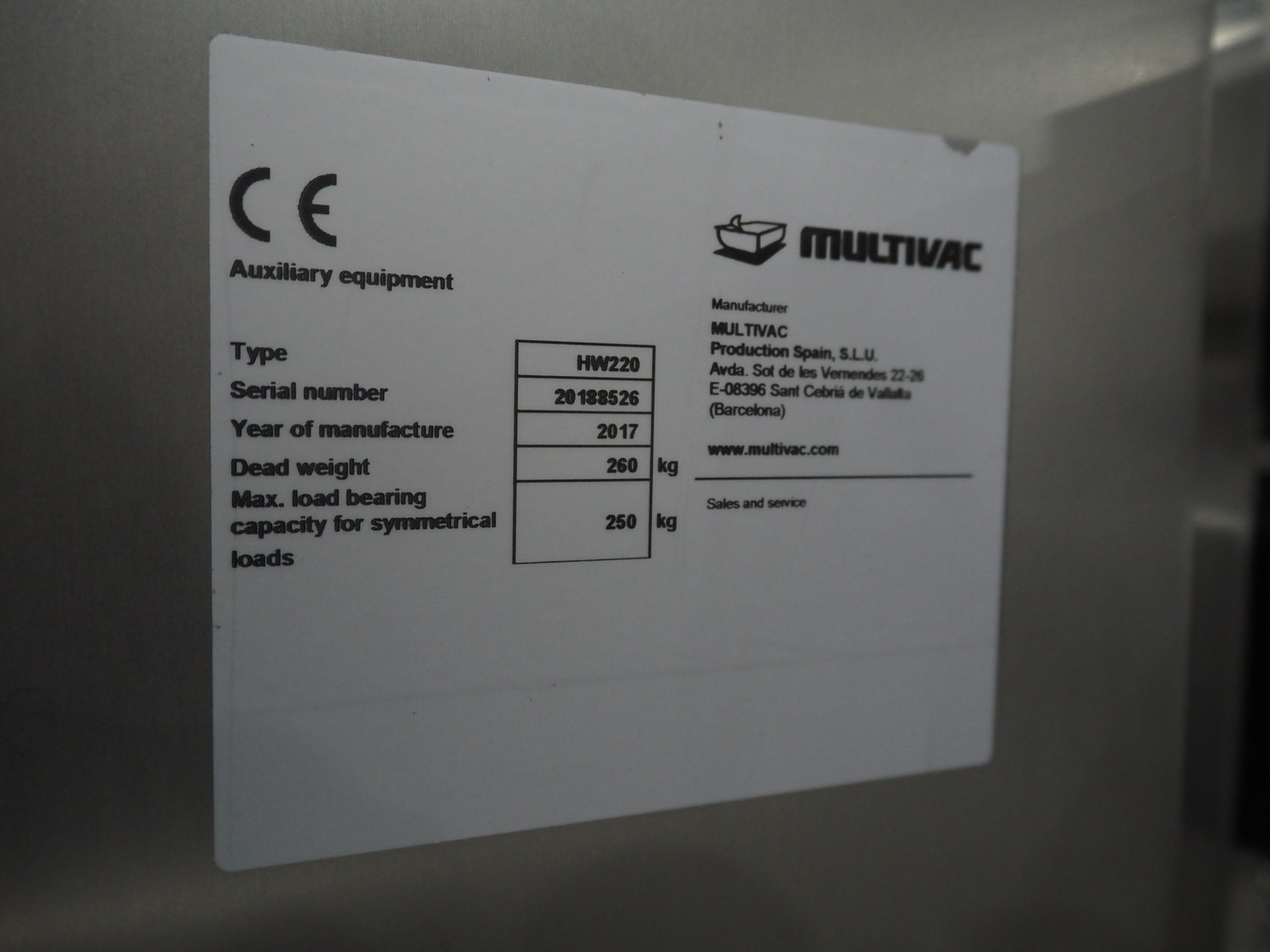 Multivac mobile foil lifter, type: HW220, serial number: 20 188526, year of construction: 2017, max load: 250 kg, dimensions: 1350 mm x 1350 mm x 2000 mm.
