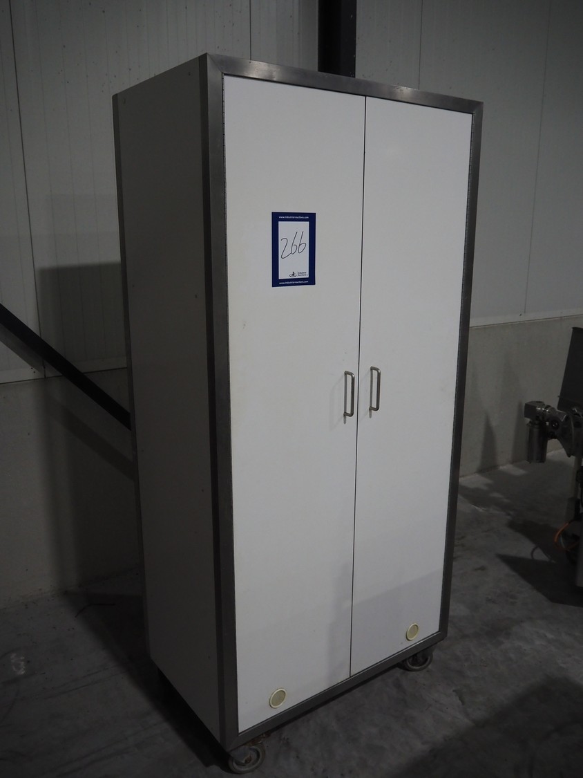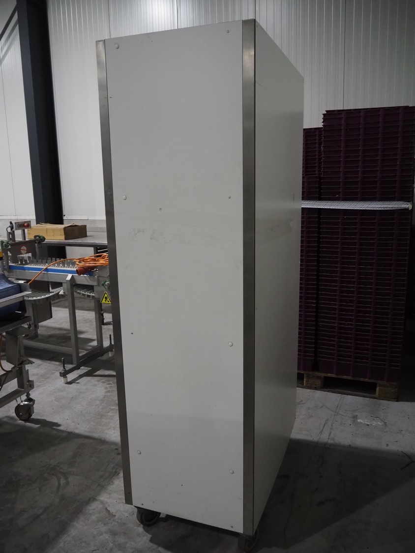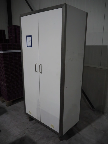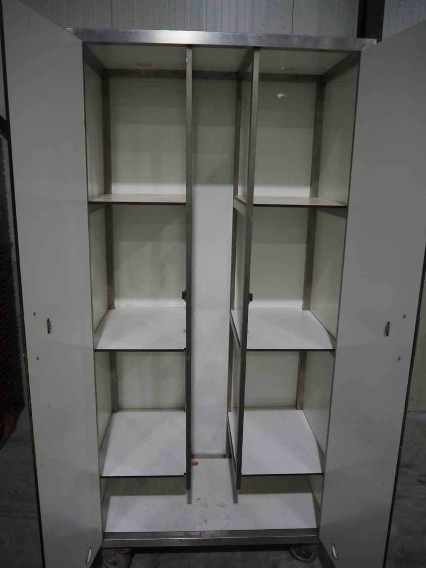 Mobile wooden cabinet, dimensions: 1000 mm x 650 mm x 2100 mm.