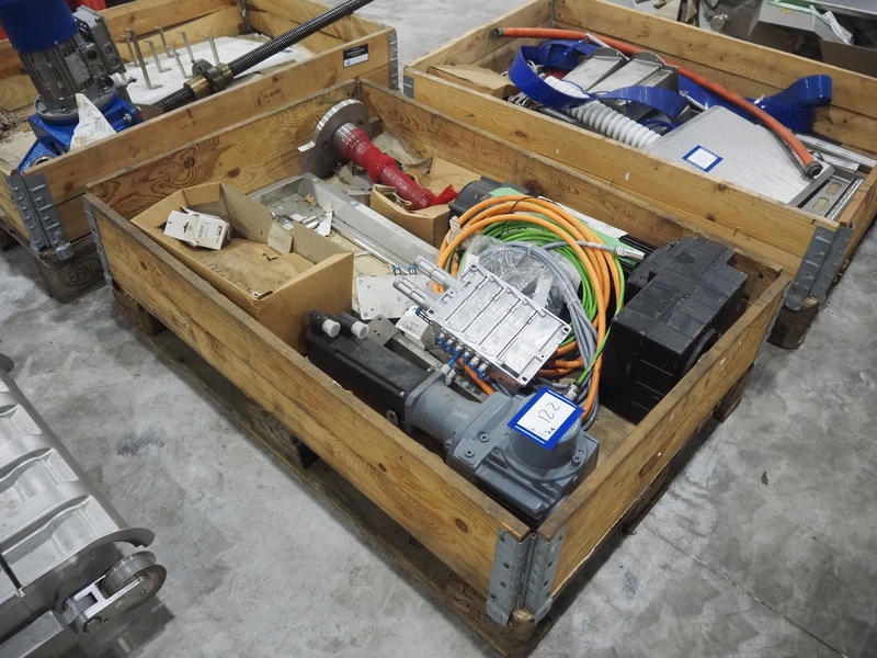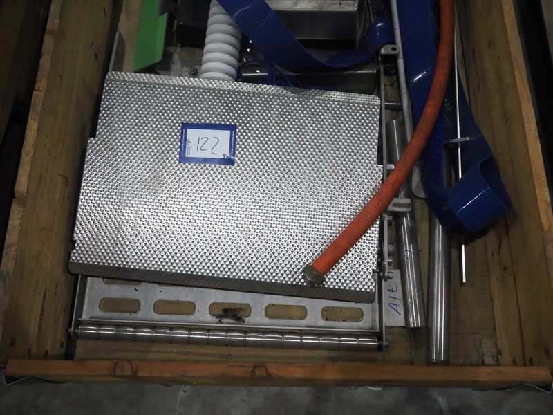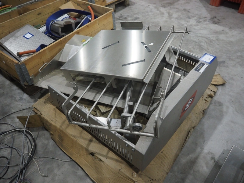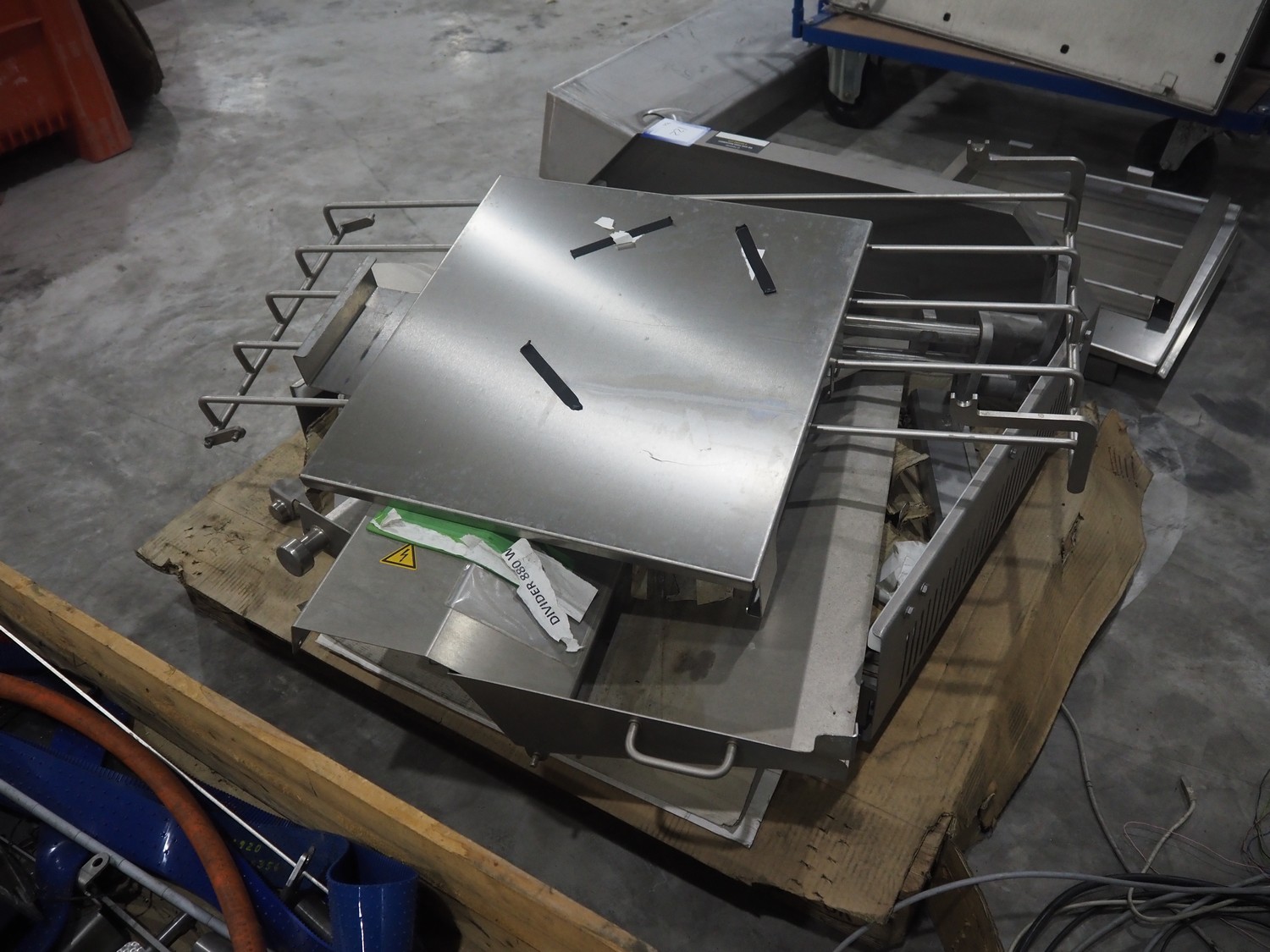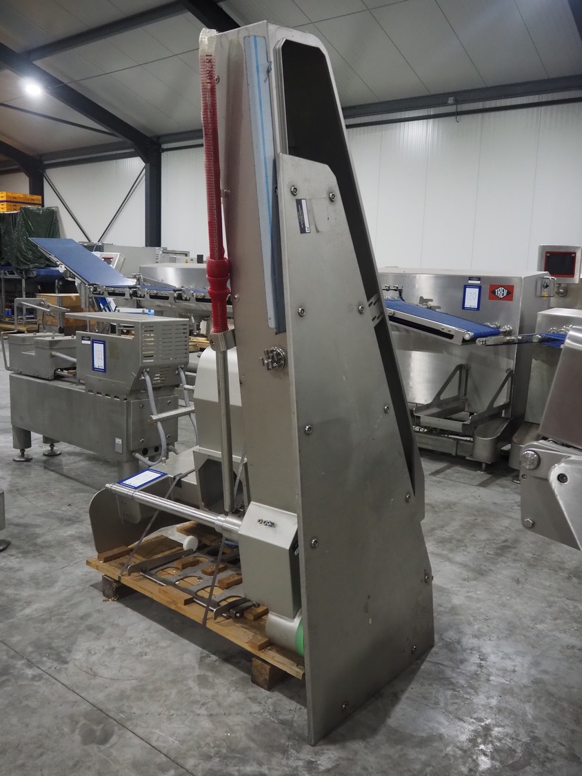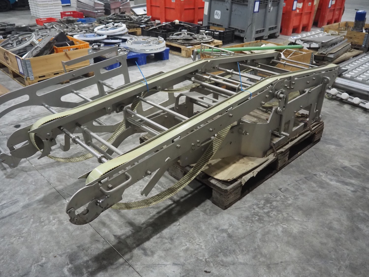 Large amount of different parts for Treif Maschinenbau GmbH Divider 880 slicer line, among others: conveyors, lane dividing belts, s/s covers, moulds and trolleys.