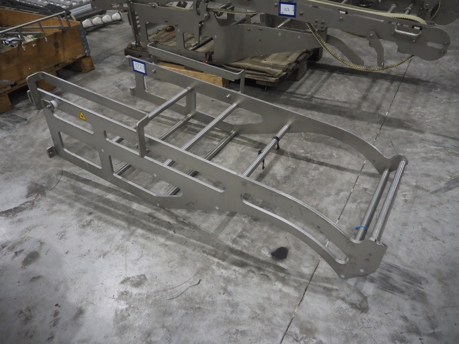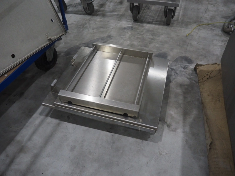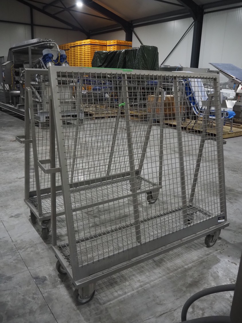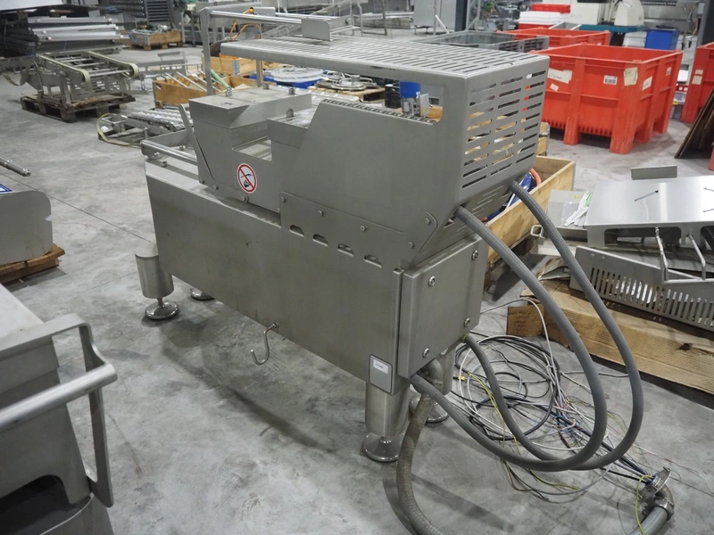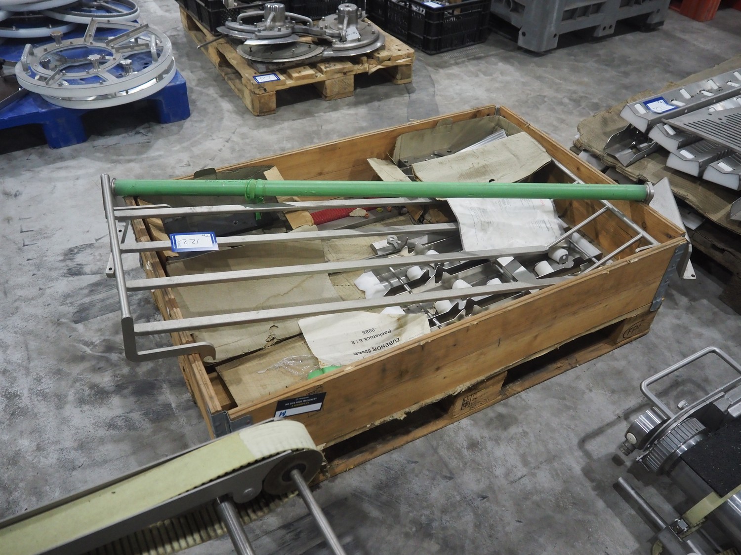 Large amount of different parts for Treif Maschinenbau GmbH Divider 880 slicer line, among others: conveyors, lane dividing belts, s/s covers, moulds and trolleys.