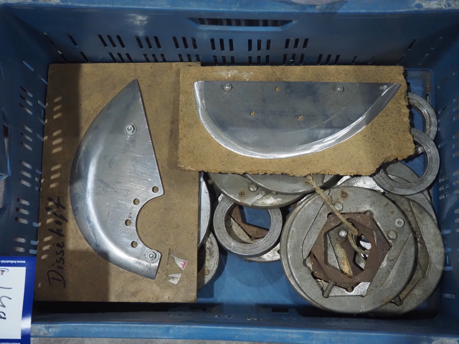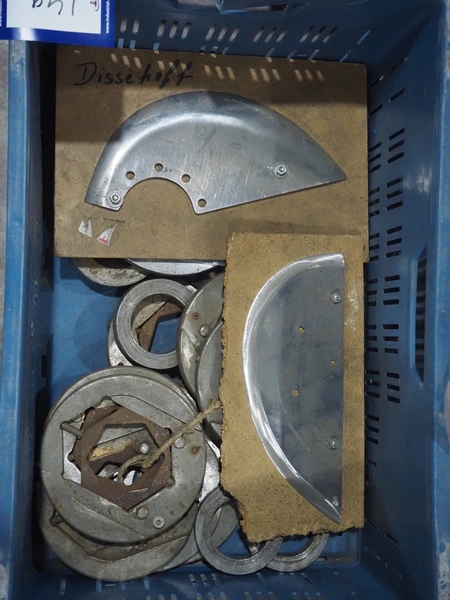 Plastic crate with machine parts.