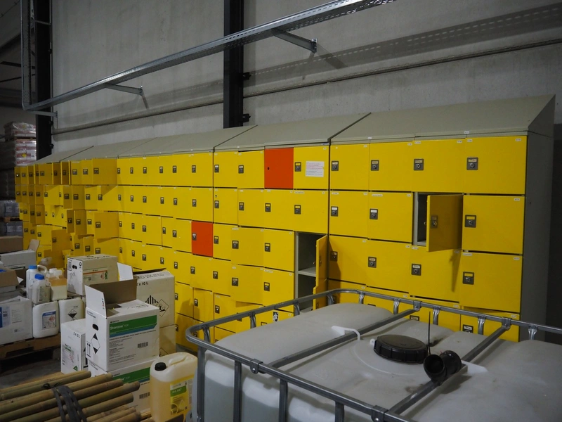 Oostwoud 13 steel 12-doors lockers, inside dimensions: (12x) 465 mm x 295 mm x 275 mm, total dimensions: 600 mm x 480 mm x 2200 mm.