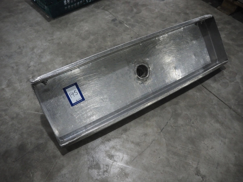 S/s gutter, inside dimensions: 1115 mm x 290 mm x 75 mm, total dimensions: 1120 mm x 340 mm x 210 mm.