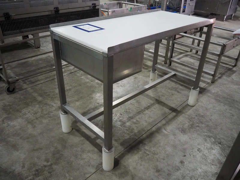 S/s table with plastic top, top dimensions: 1300 mm x 600 mm, total dimensions: 1300 mm x 600 mm x 950 mm.