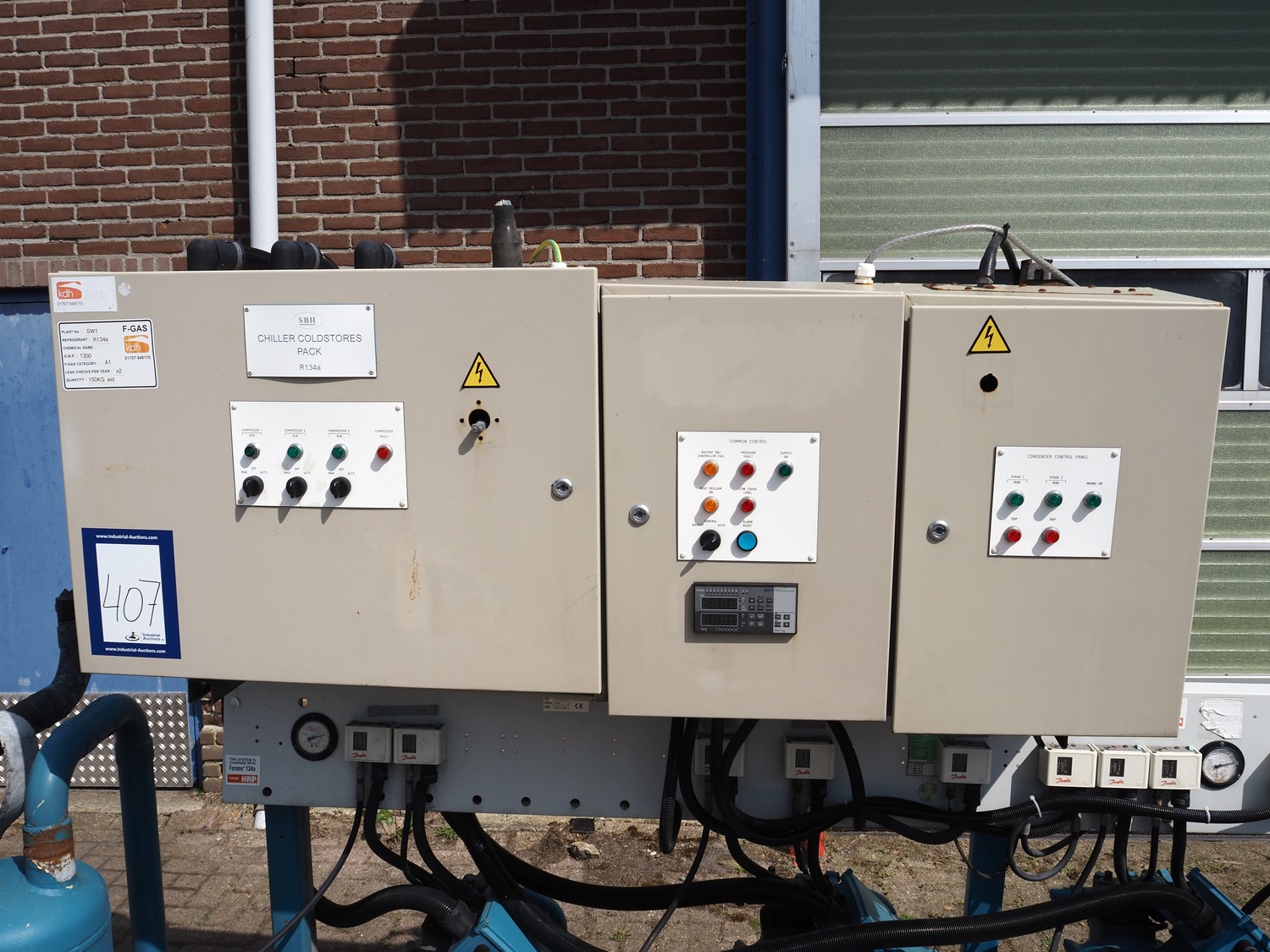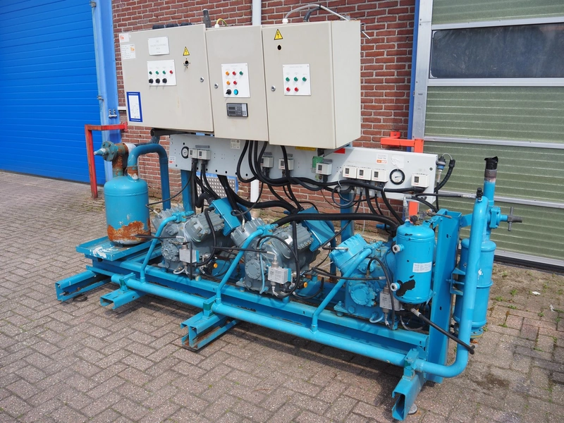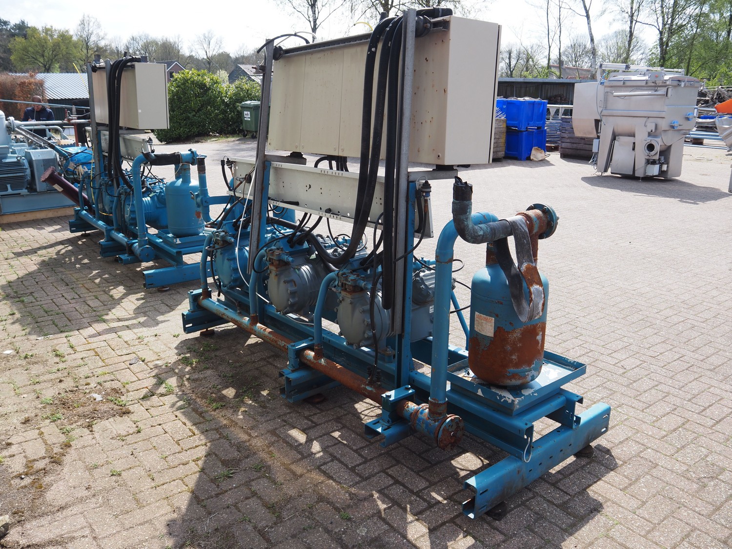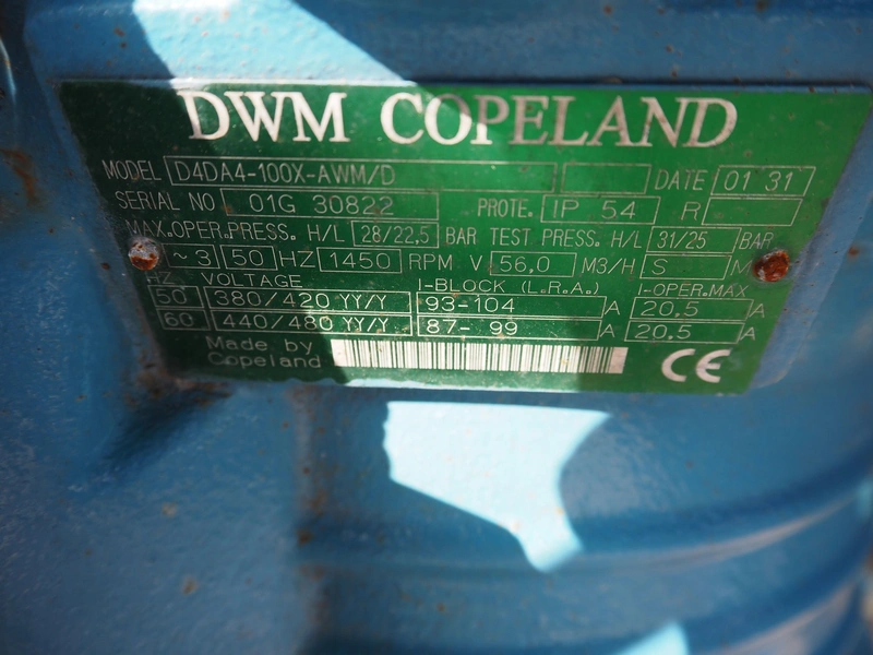 DWM Copeland cooling compressor rack consisting of: 3 DWM Copeland cooling compressors, model: (3x) D4DA4-100XAWM/D, capacity: (3x) 56 m³ per hour, 1450 rpm, dimensions: 3000 mm x 1300 mm x 1900 mm.