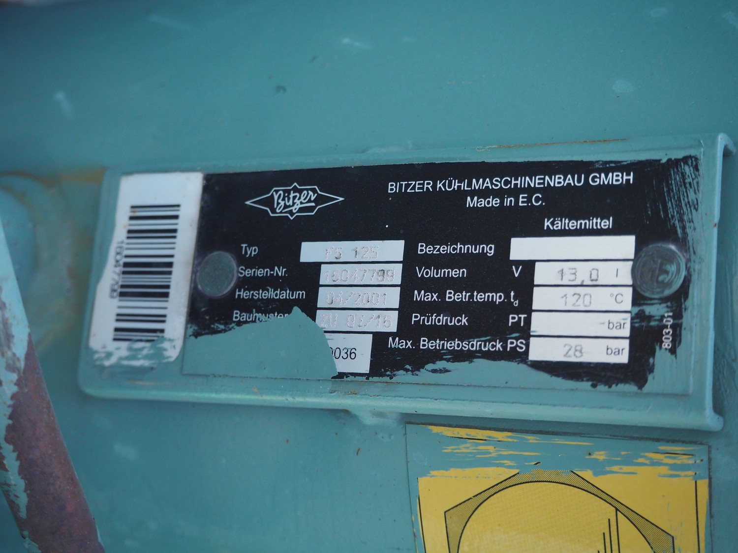 Bitzer Kühlmaschinenbau GmbH cooling/condensing unit, model: 4 EC 6.2 Y, serial number: 18624, 420 V, 3 Ph, 50 Hz, dimensions: 1000 mm x 750 mm x 800 mm.