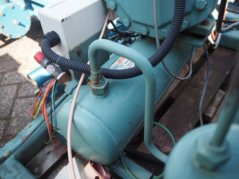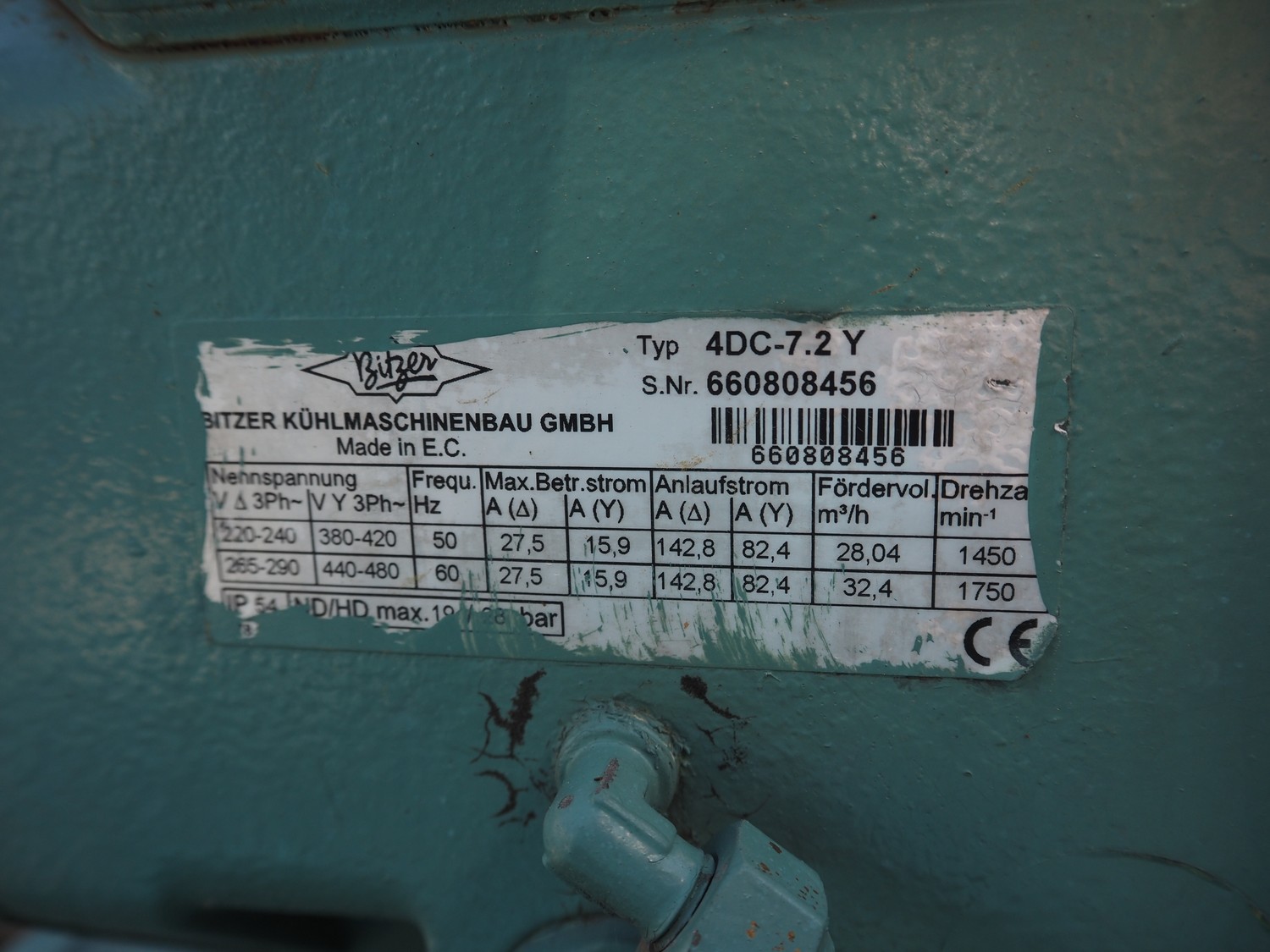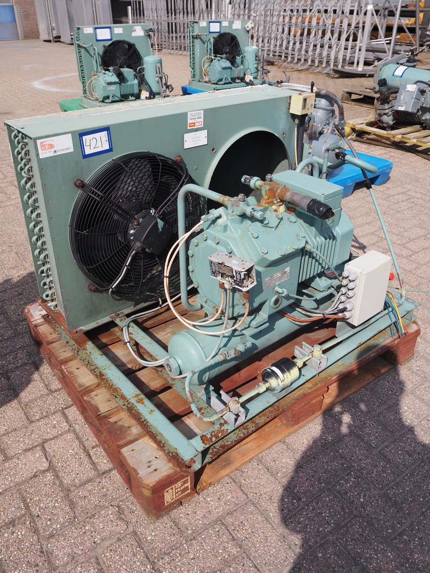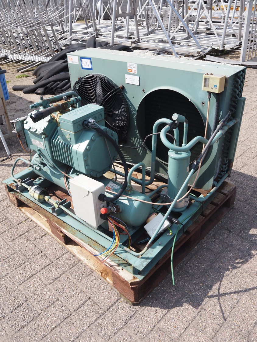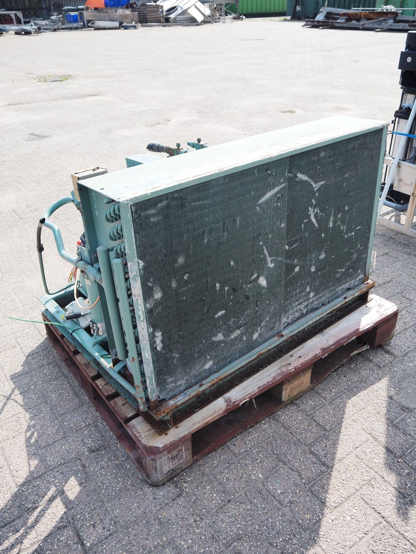 Bitzer Kühlmaschinenbau GmbH cooling/condensing unit, type: 4DC-7.2 Y, serial number: 660808456, capacity: 28.04/32.4 m³/h, 1750 rpm, dimensions: 1150 mm x 950 mm x 750 mm.