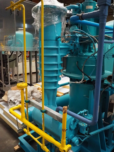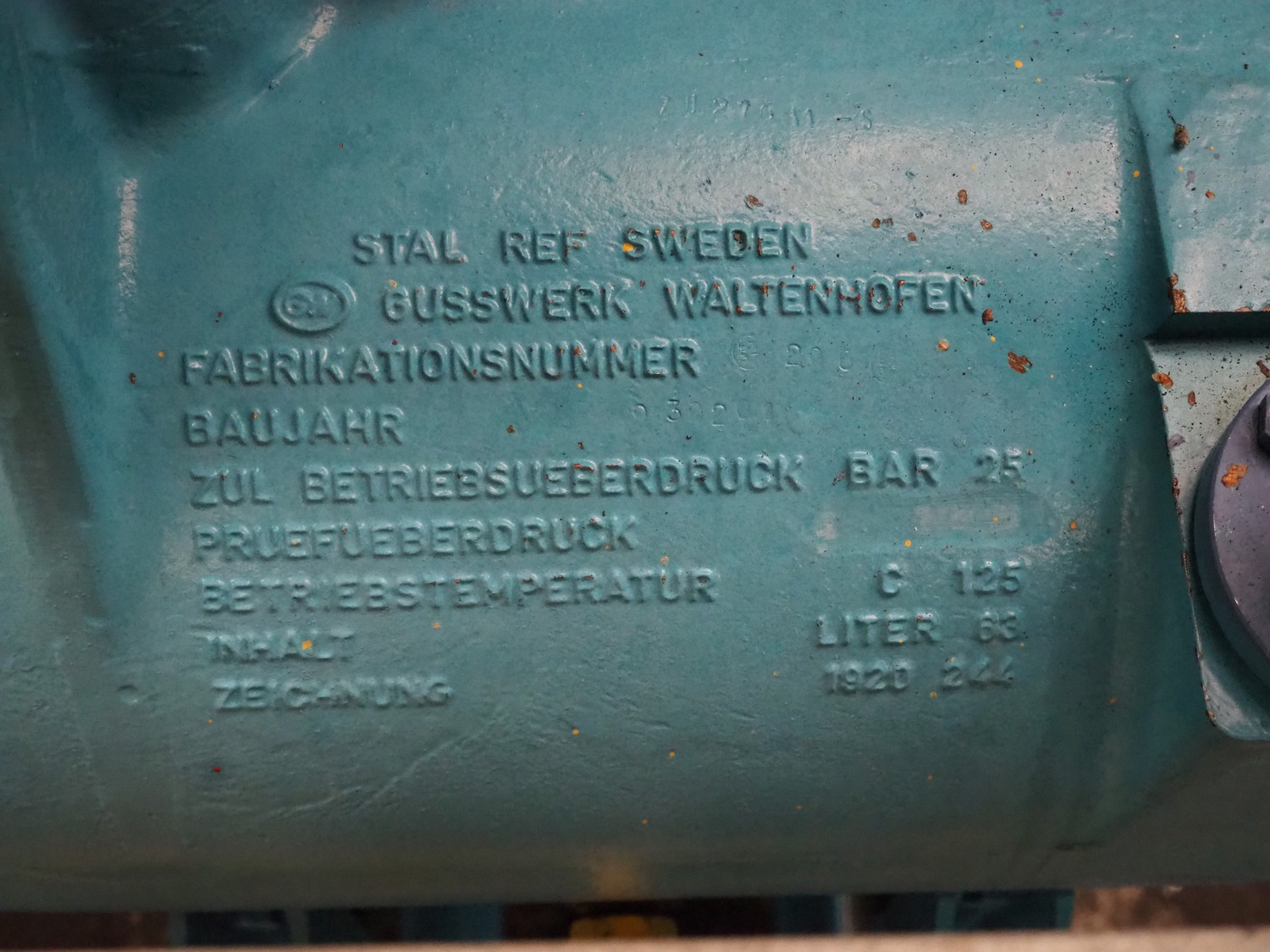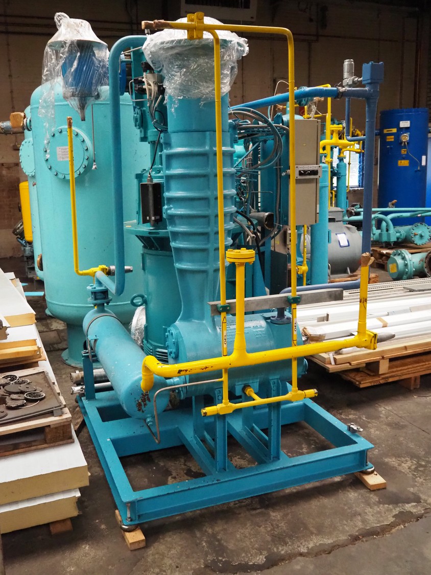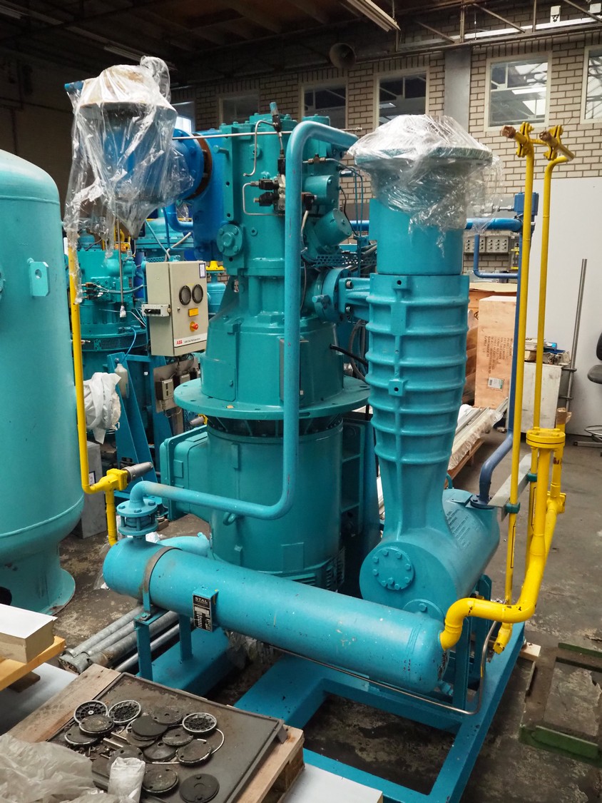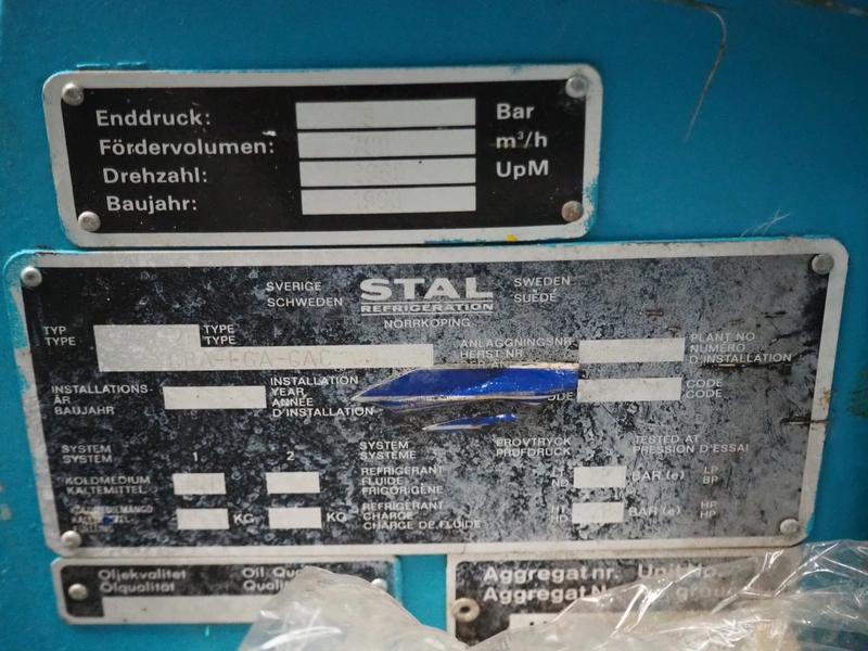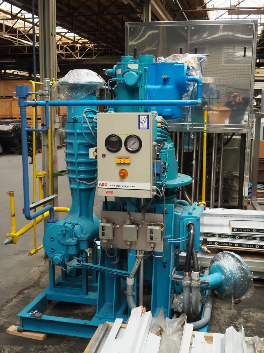 Stal Refrigeration low pressure compressor used as swing machine, type: SVAB 26, year of construction: 1993, capacity: 121 kW at -42°C/-10°C, 437 kW at -10°C/35°C, modified with electronic part load indicator, NH3 oil cooler, dimensions: 1600 mm x 1400 mm x 2200 mm. Overhauled in 2014.