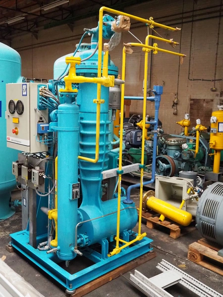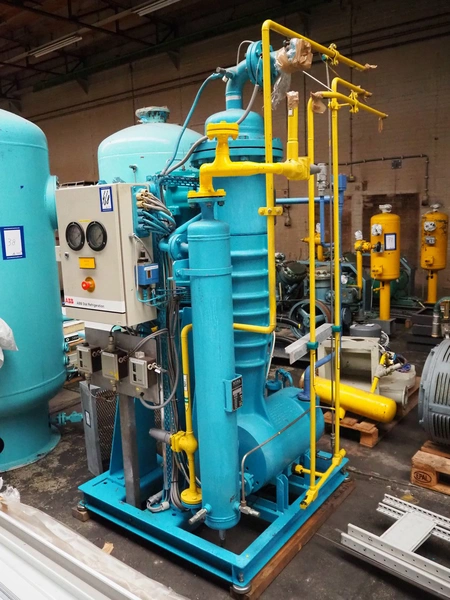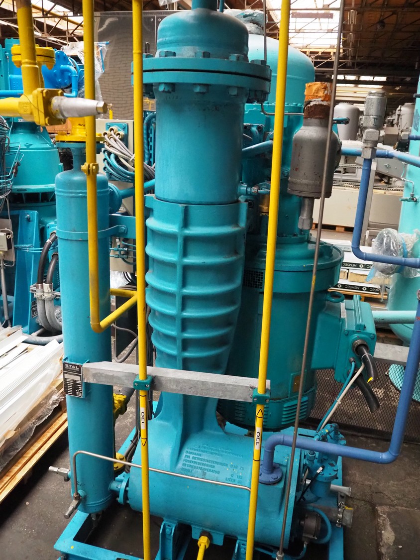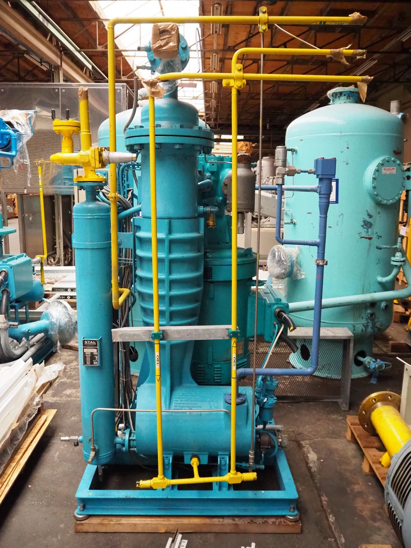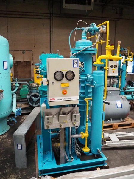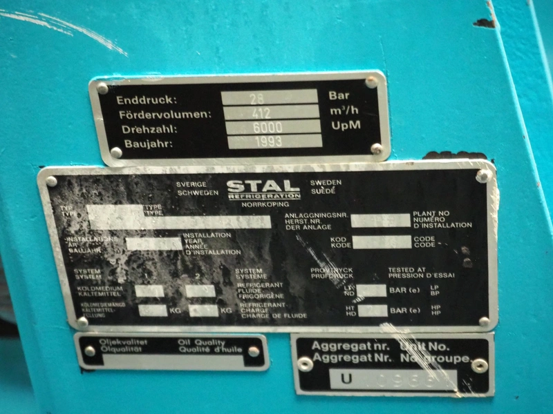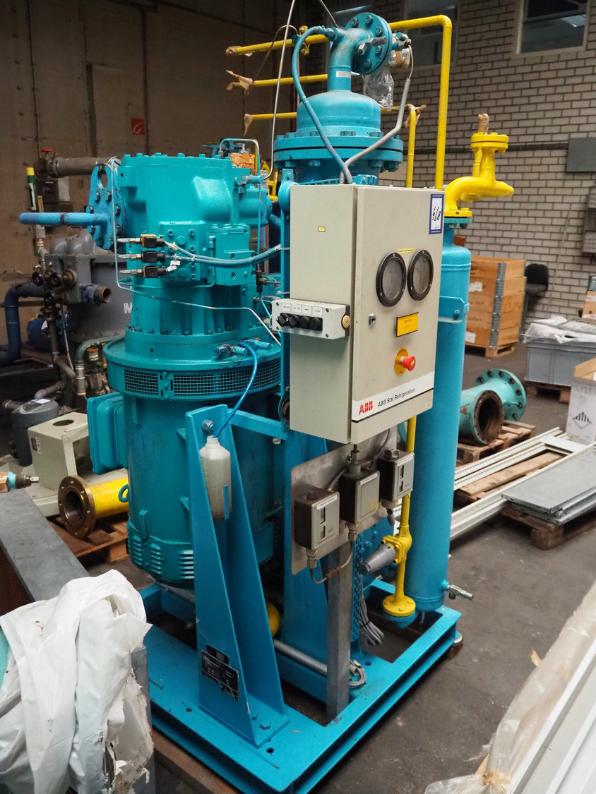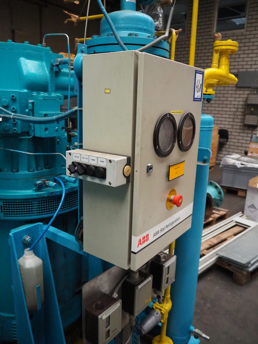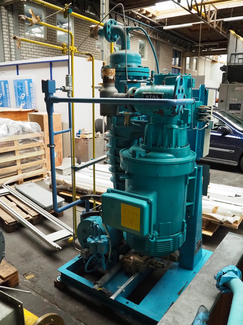 Stal Refrigeration glycol cooling compressor, type: SVA19C, serial number: U-P 330335, year of construction: 1998, weight: 1675 kg, NH3 oil cooler - pre-lubrication oil pump, temperature range: -10°C/35°C, capacity: 268 kW, dimensions: 1400 mm x 1100 mm x 1900 mm.