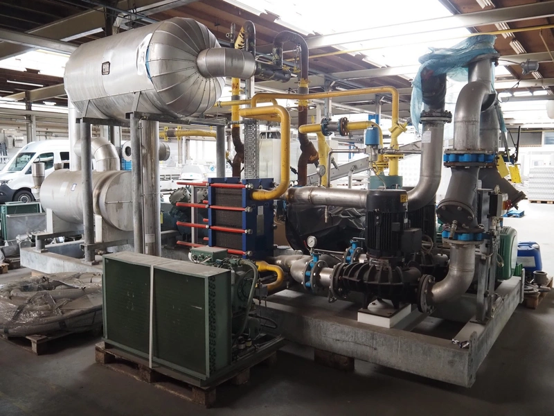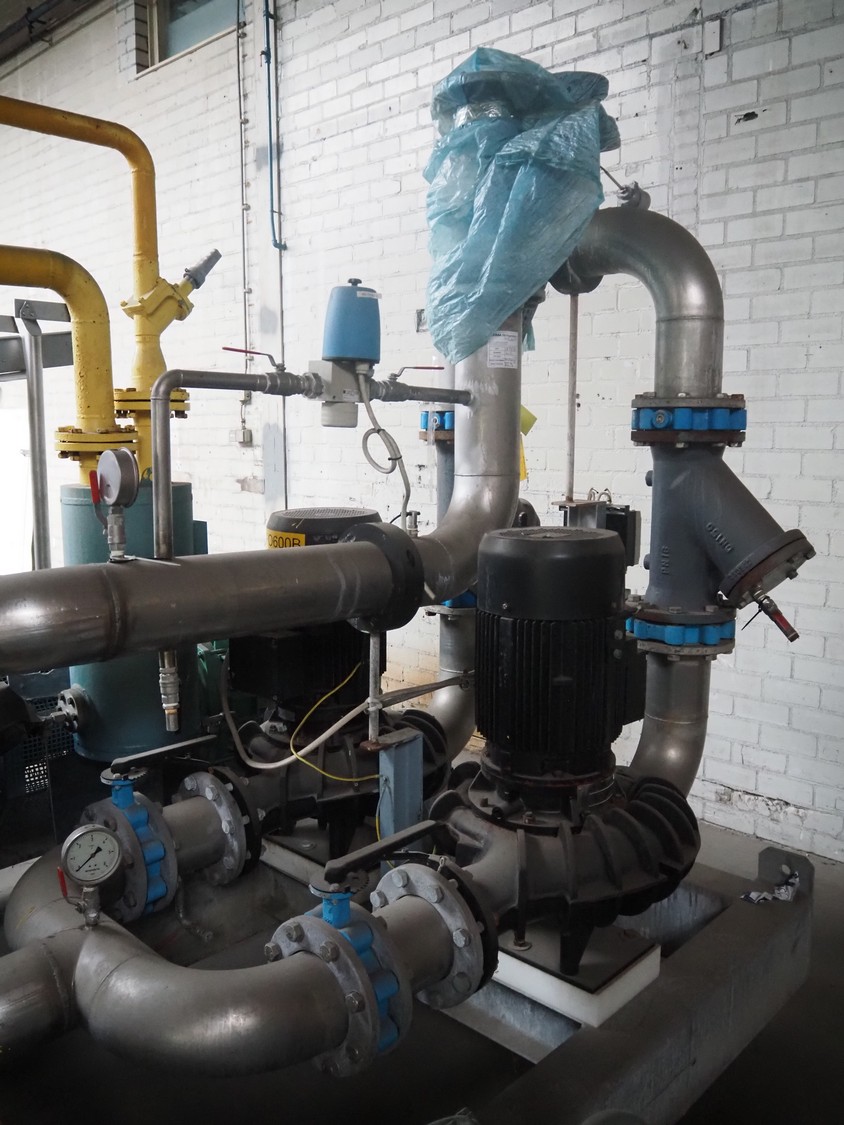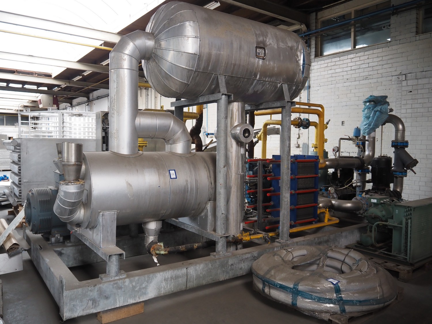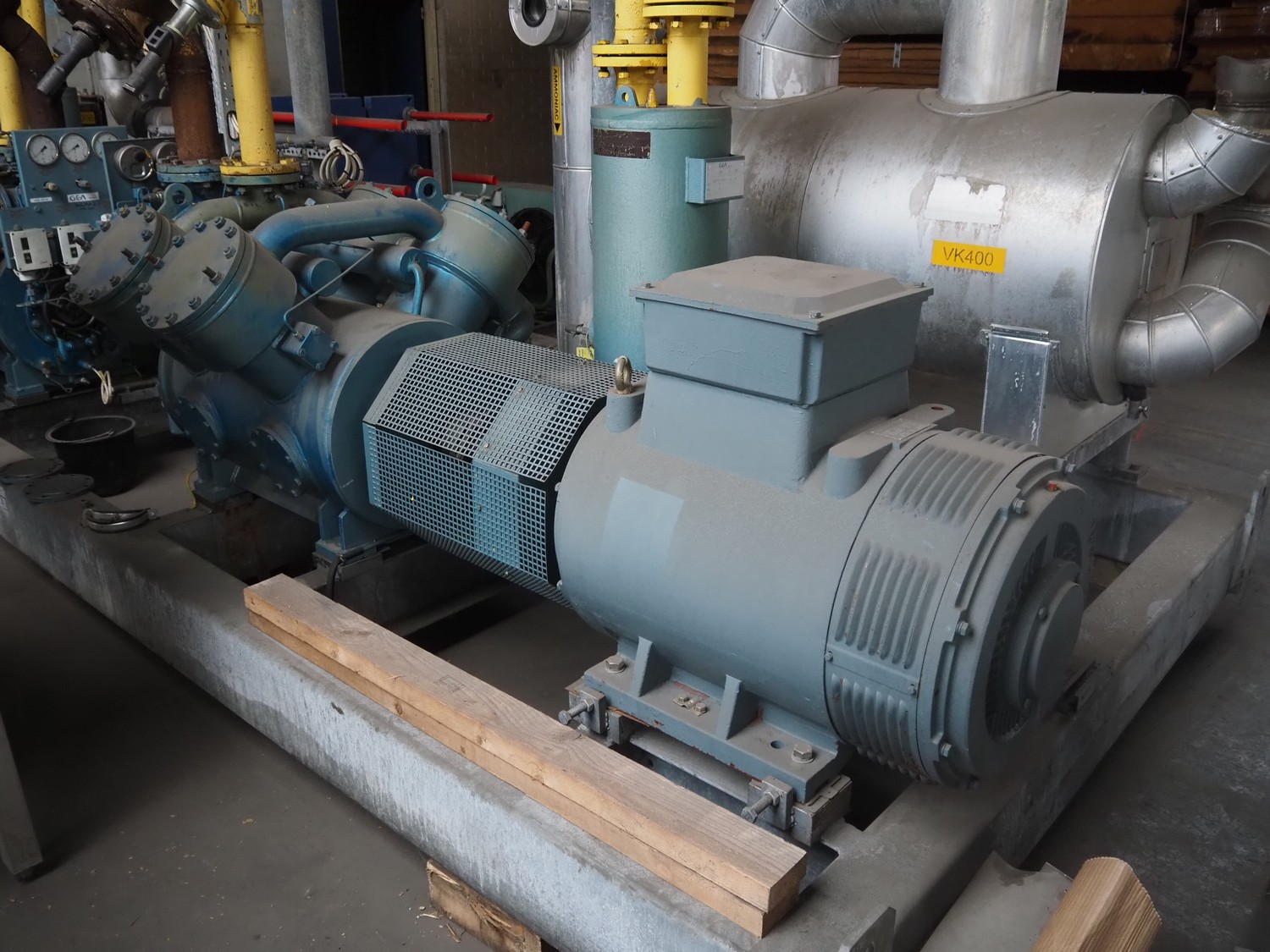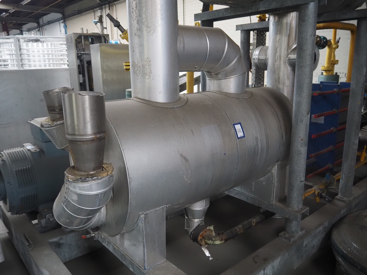 GEA Grasso reciprocating compressor installation consisting of: 2 GEA Grasso reciprocating compressors, type: RC412, 2 Grundfos circulation pumps, Alfa Laval plate heat exchanger, type: M10-BWREF, Grencobel NV isolated storage vessel used for NH3, isolated storage vessel used for NH3, dimensions: 2800 mm x 1100 mm x 2200 mm.