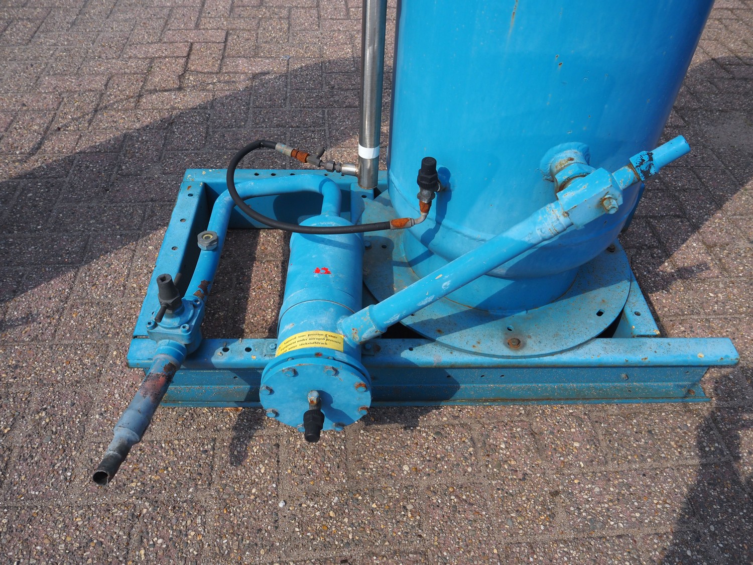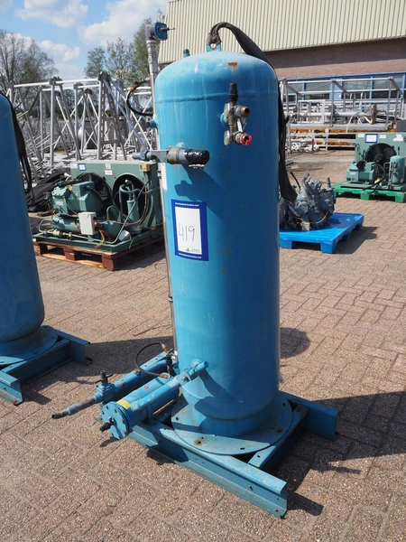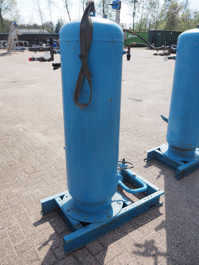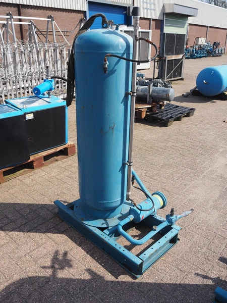 Steel pressure vessel, dimensions tank: Ø 400 mm x 1300 mm, total dimensions: 1000 mm x 750 mm x 1700 mm.