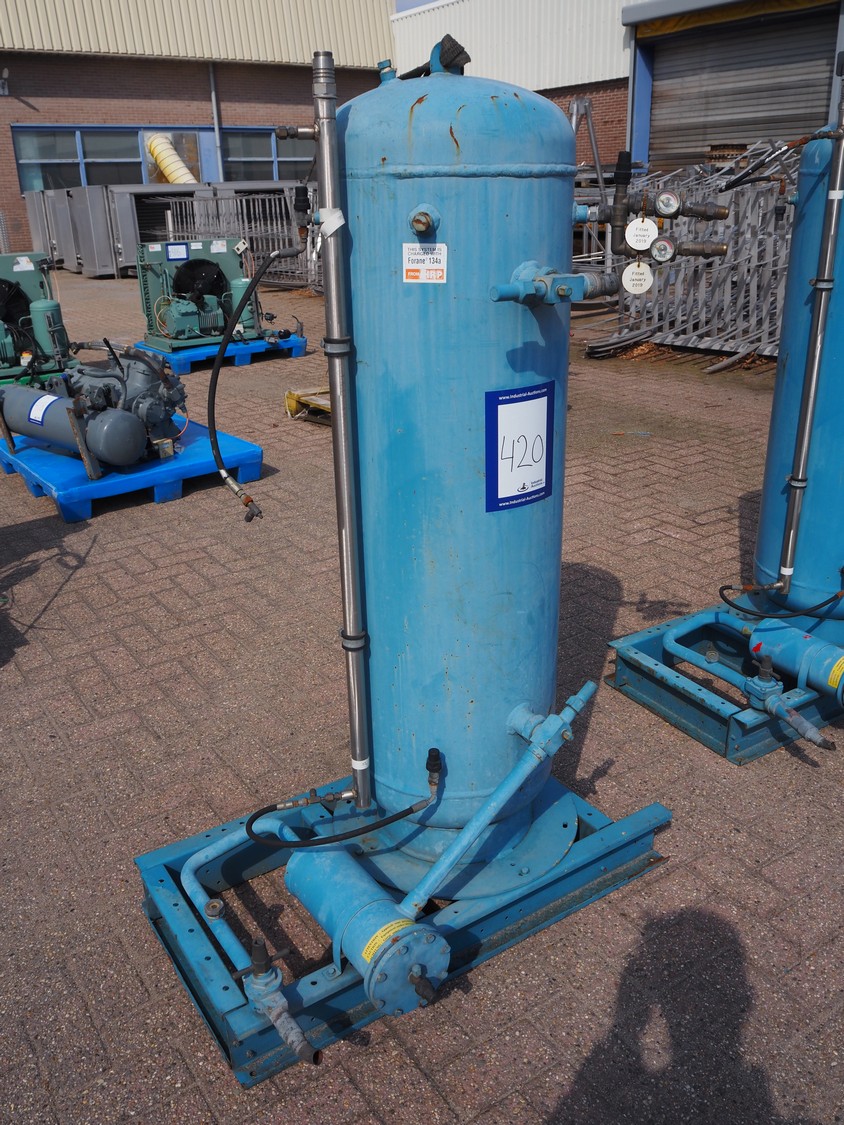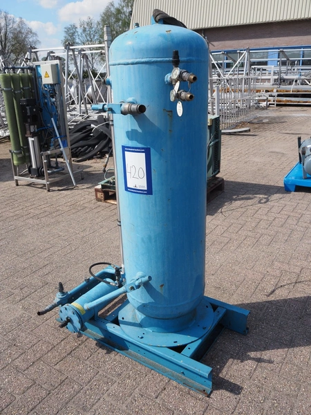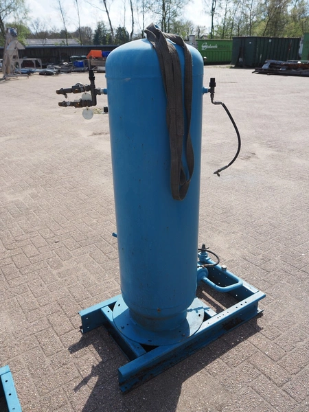 Steel pressure vessel, dimensions tank: Ø 400 mm x 1300 mm, total dimensions: 1000 mm x 750 mm x 1700 mm.