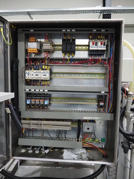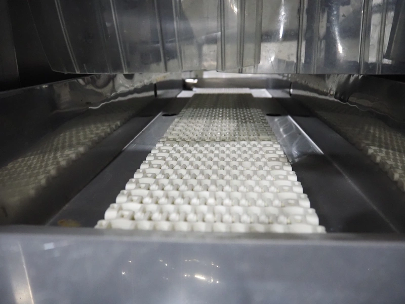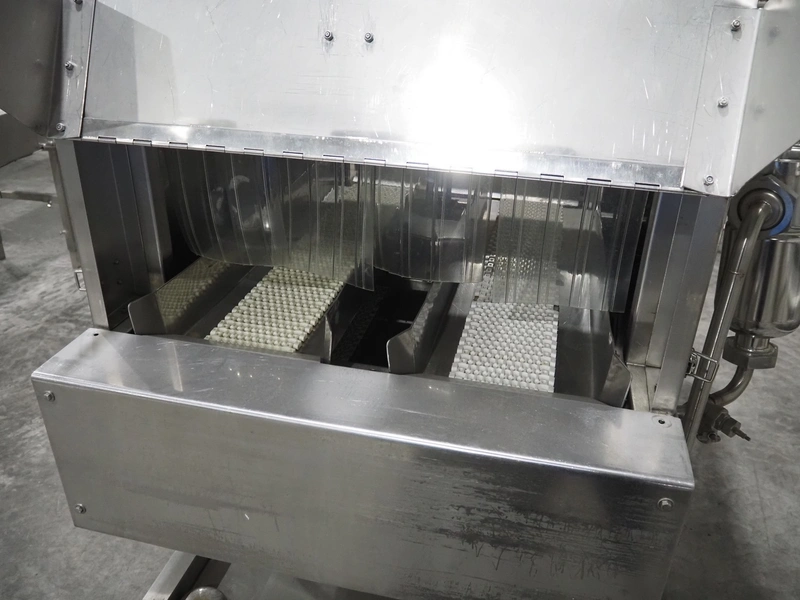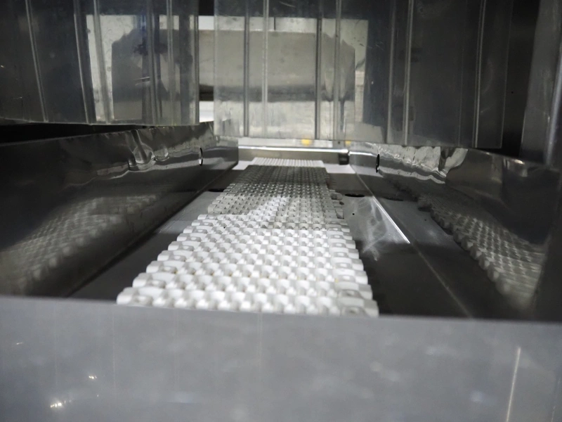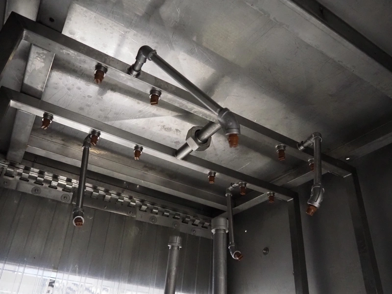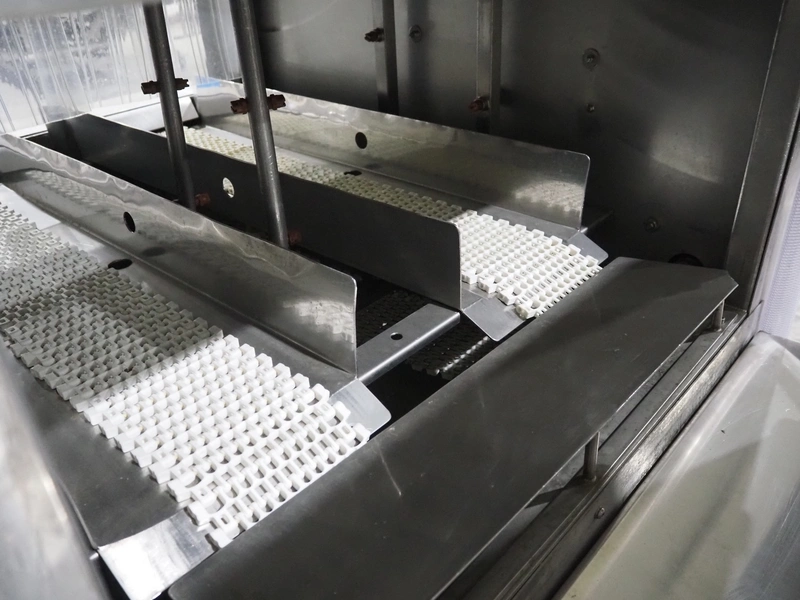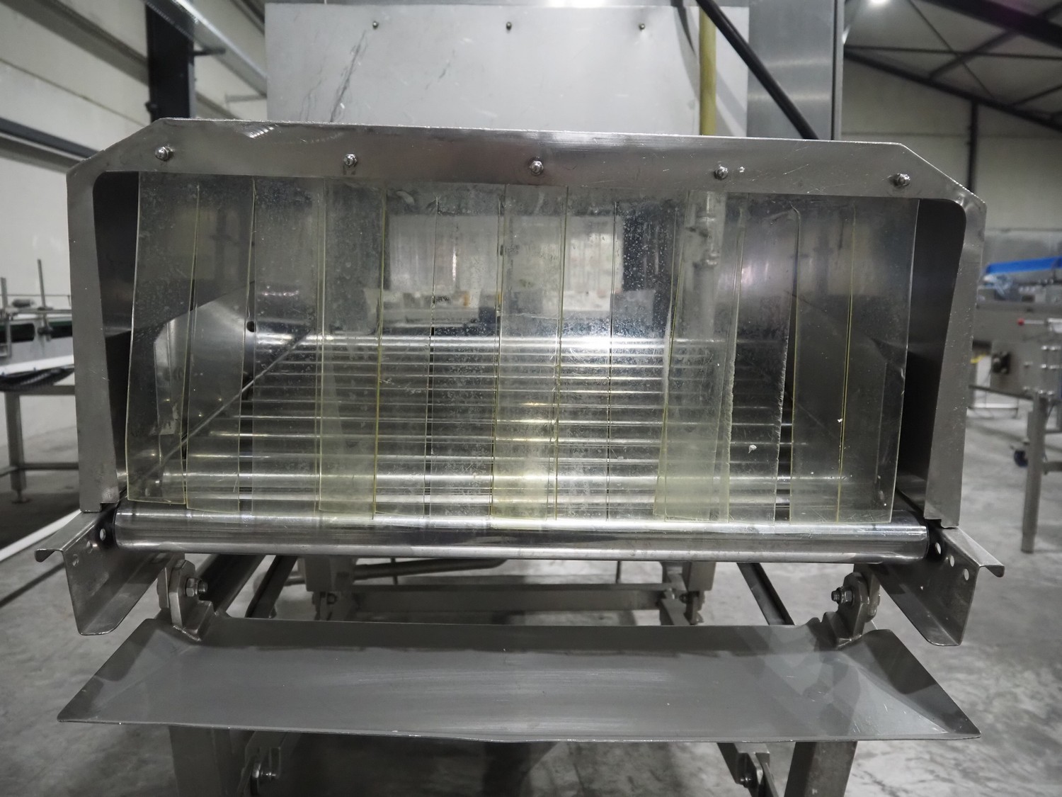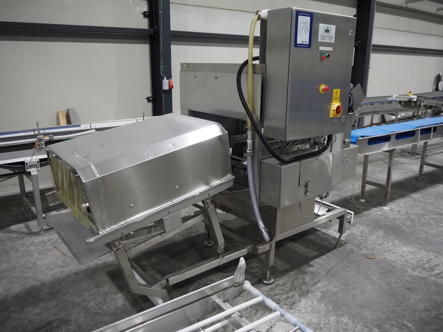 Industrial Washing Machines crate washer, type: SAN 100 SP, number: 442 S1SP A/1510/01U, year of construction: 04/11/2002, plastic mesh belt, belt width: (2x) 150 mm, clearance: (2x) 265 mm x 290 mm, total dimensions: 2500 mm x 1400 mm x 1950 mm.