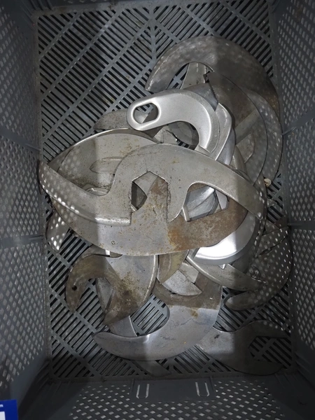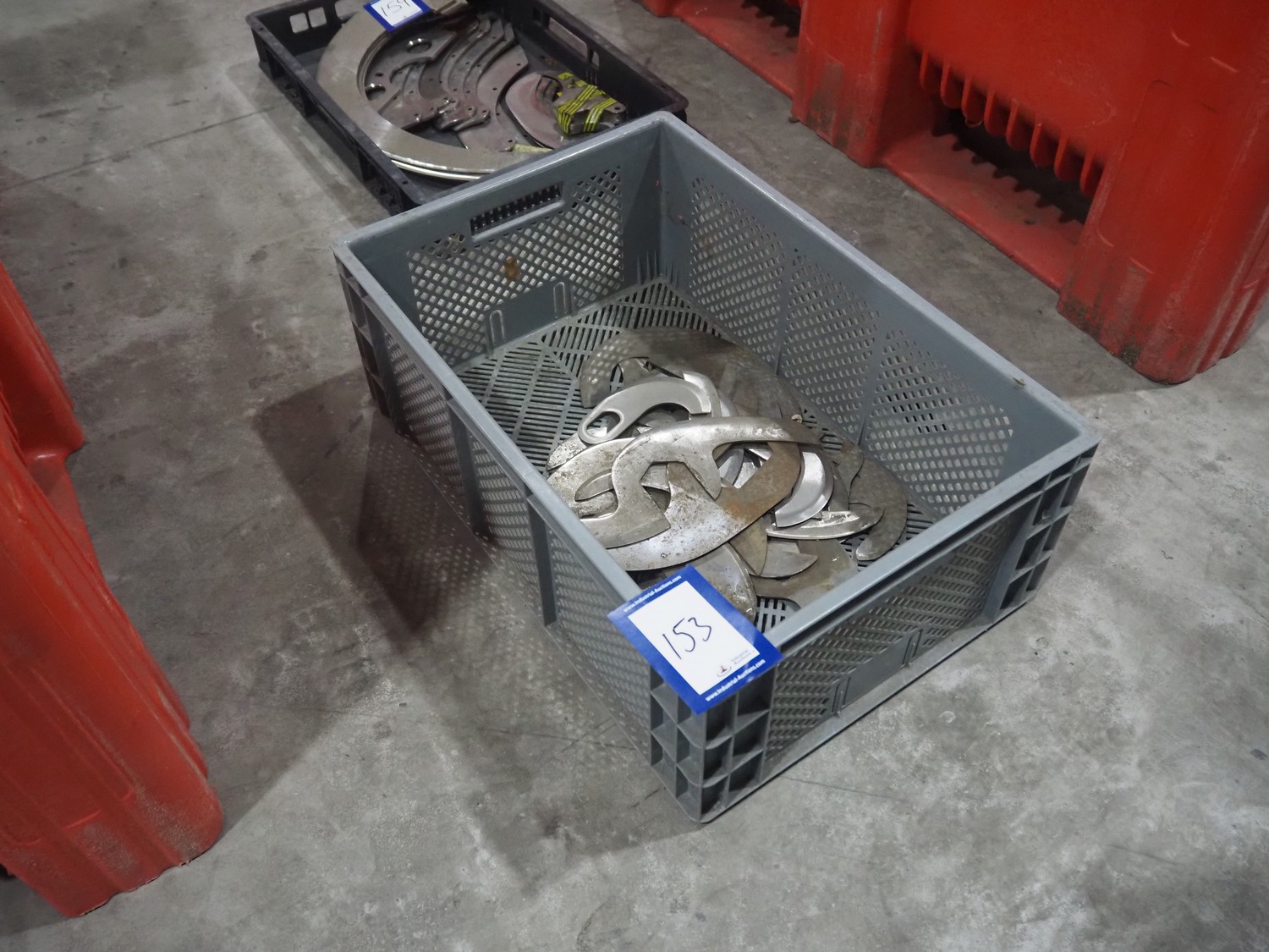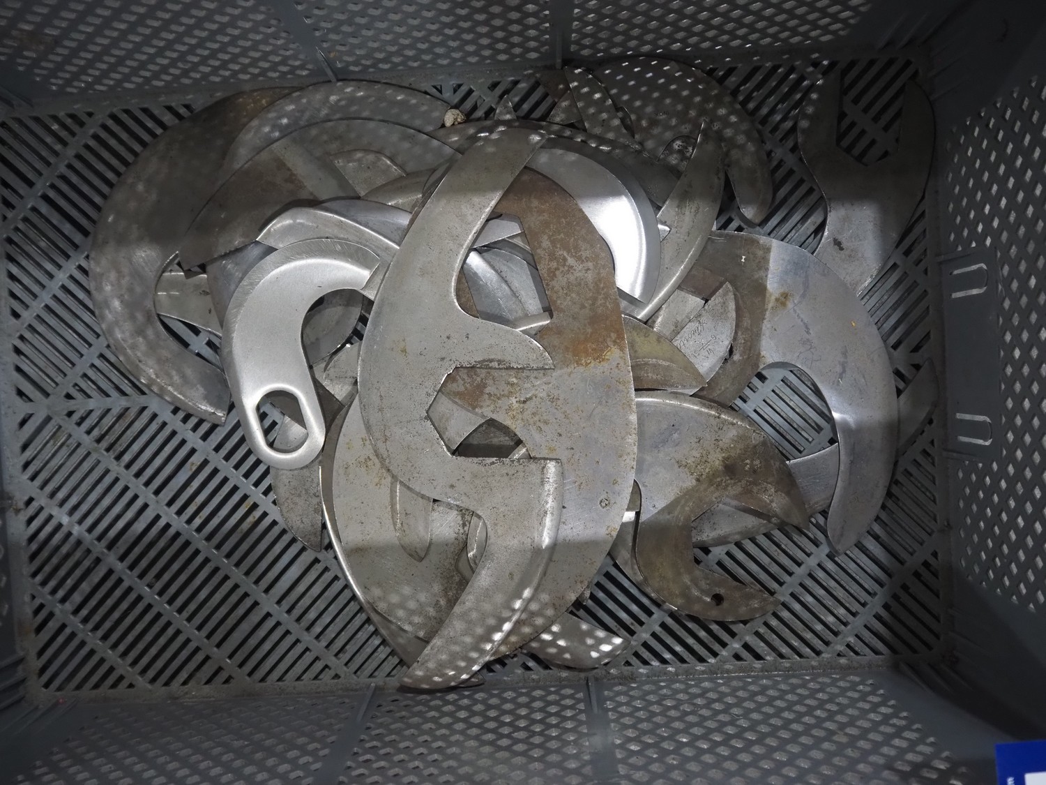Plastic crate with various knifes for cutter.