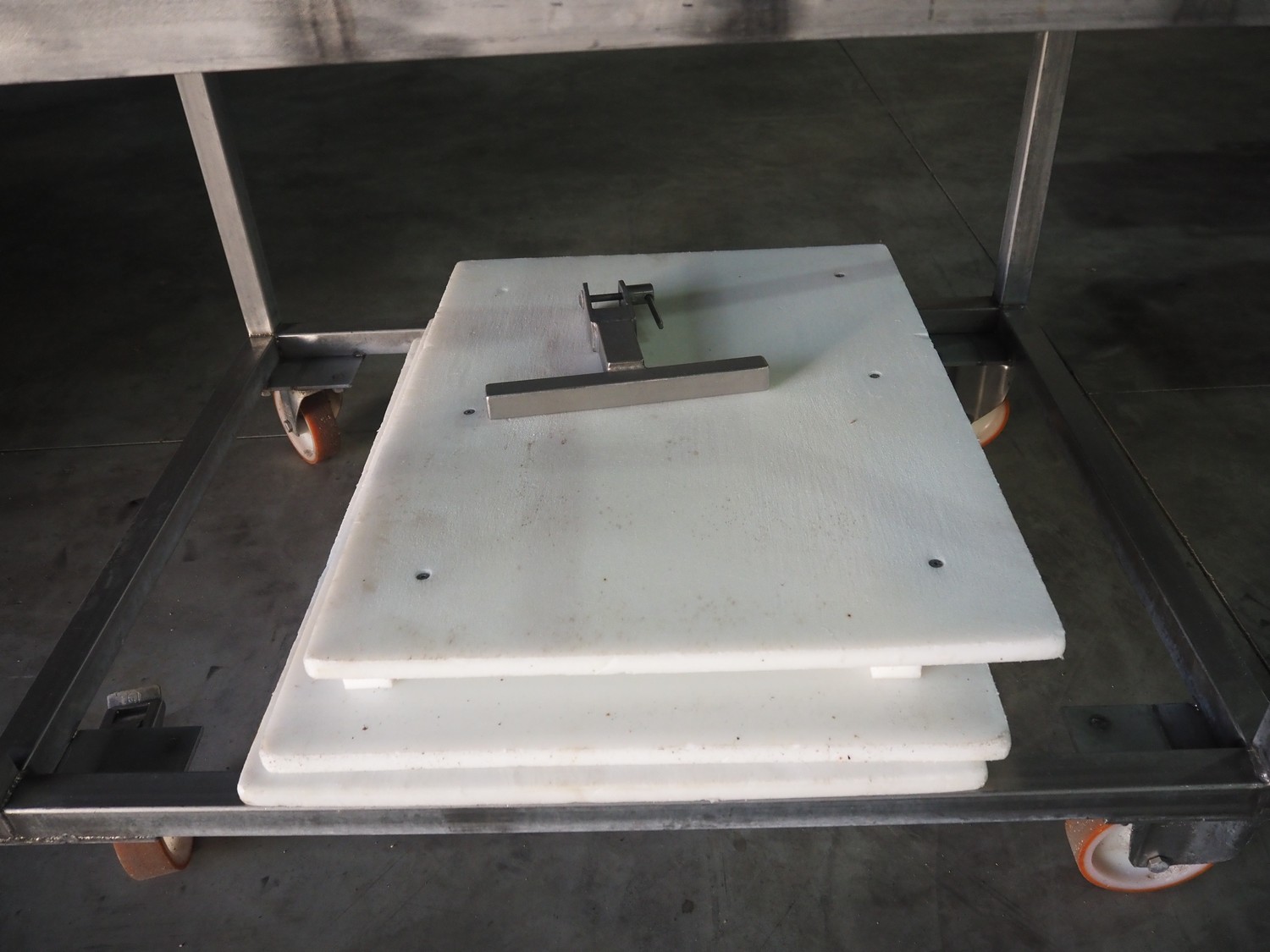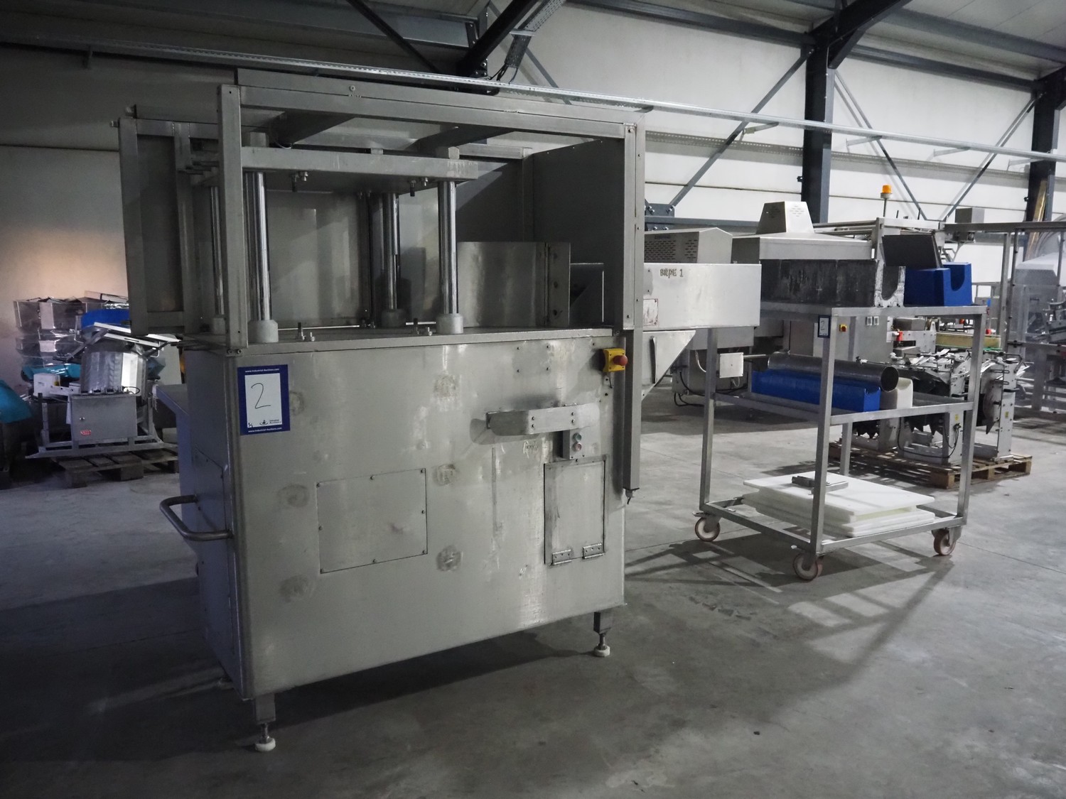 Bettcher Industries Inc form press, model: Dynaform Pers, year of construction: 2010, 400 V, dimensions power unit: 1200 mm x 1070 mm x 960 mm, s/s tool trolley, dimensions: 1100 mm x 850 mm x 960 mm, total dimensions: 2450 mm x 800 mm x 2000 mm. Incomplete.