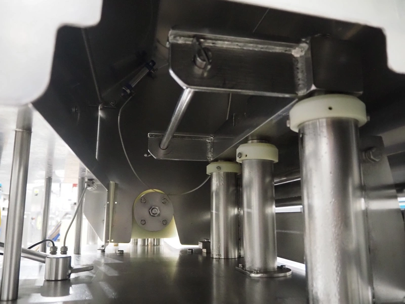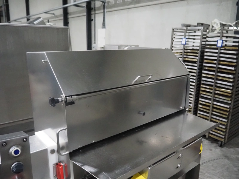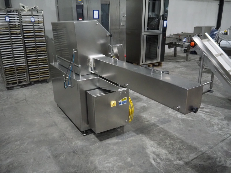 Inox Meccanica meat press, dimensions: 2700 mm x 900 mm x 1500 mm. Including extra pipes, Ø 150 mm and (2x) 145 mm.