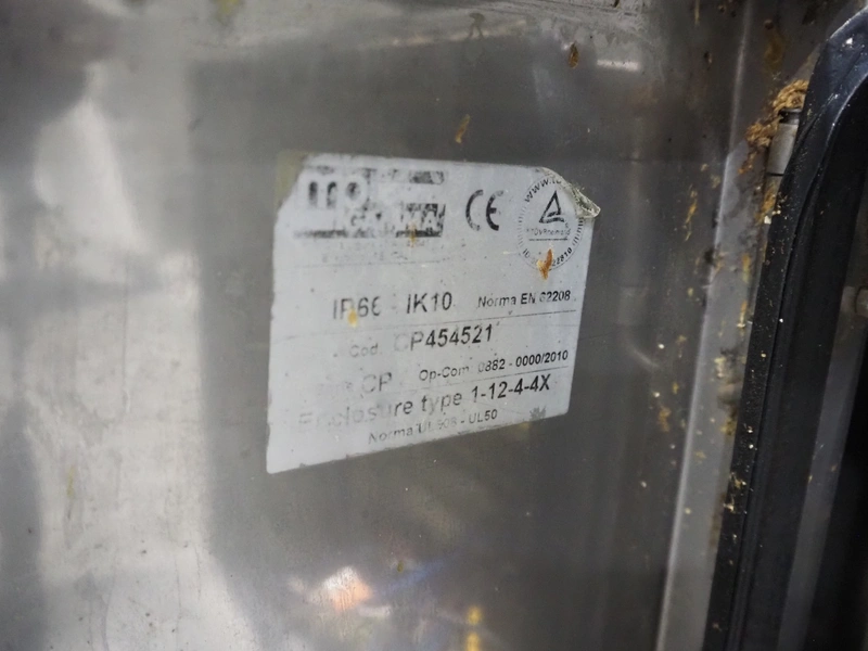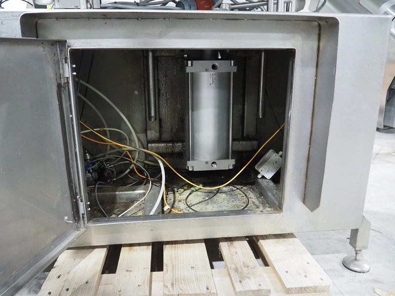 Inox Meccanica meat press, model: P800 L XP, serial number: 2125, year of construction: 2010, 100/240 V, 50 Hz, 0.25 kW, 7 bar, dimensions: 1800 mm x 1000 mm x 1600 mm. Incomplete, technical condition unknown.