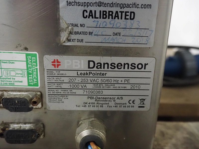 PBI-Dansensor A/S leak detector, type: LeakPointer, serial number: 71090383, year of construction: 2010, 207-253 VAC, 50/60 Hz, 1000 VA, dimensions chamber: 500 mm x 400 mm x 160 mm, total dimensions: 600 mm x 720 mm x 500 mm.