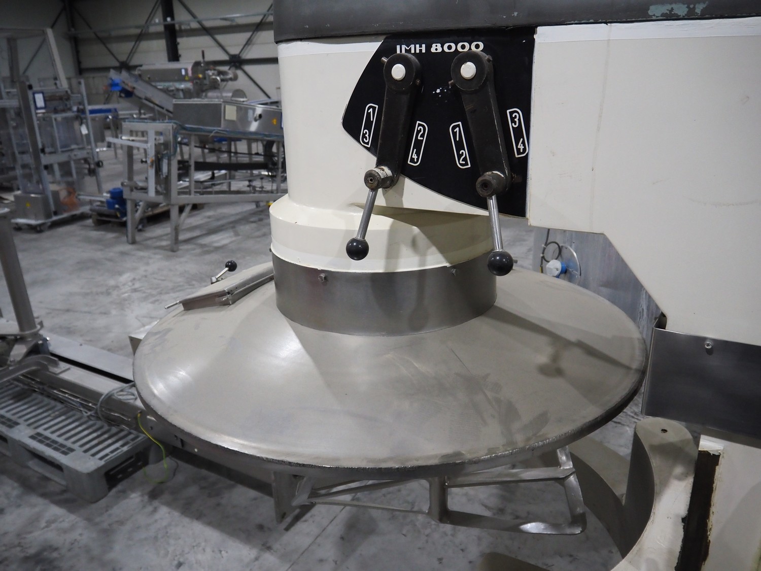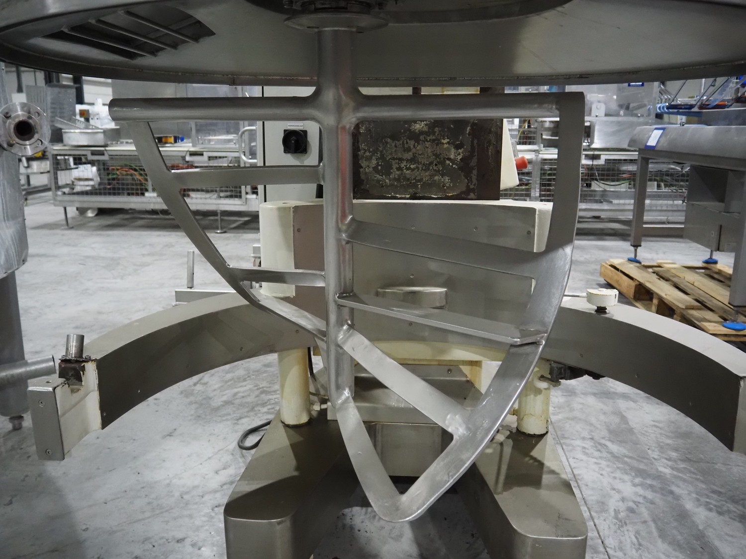 Tonnaer mixer for mobile tubs, type: TMH 6000, number: 74IH60208, 220/380 V, 3 Ph, 50 Hz, 24/80 A, clearance: Ø 1150 mm, total dimensions: 1900 mm x 1400 mm x 2050 mm. Without mixing tubs.