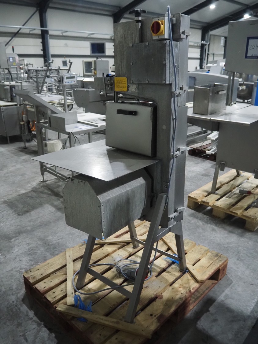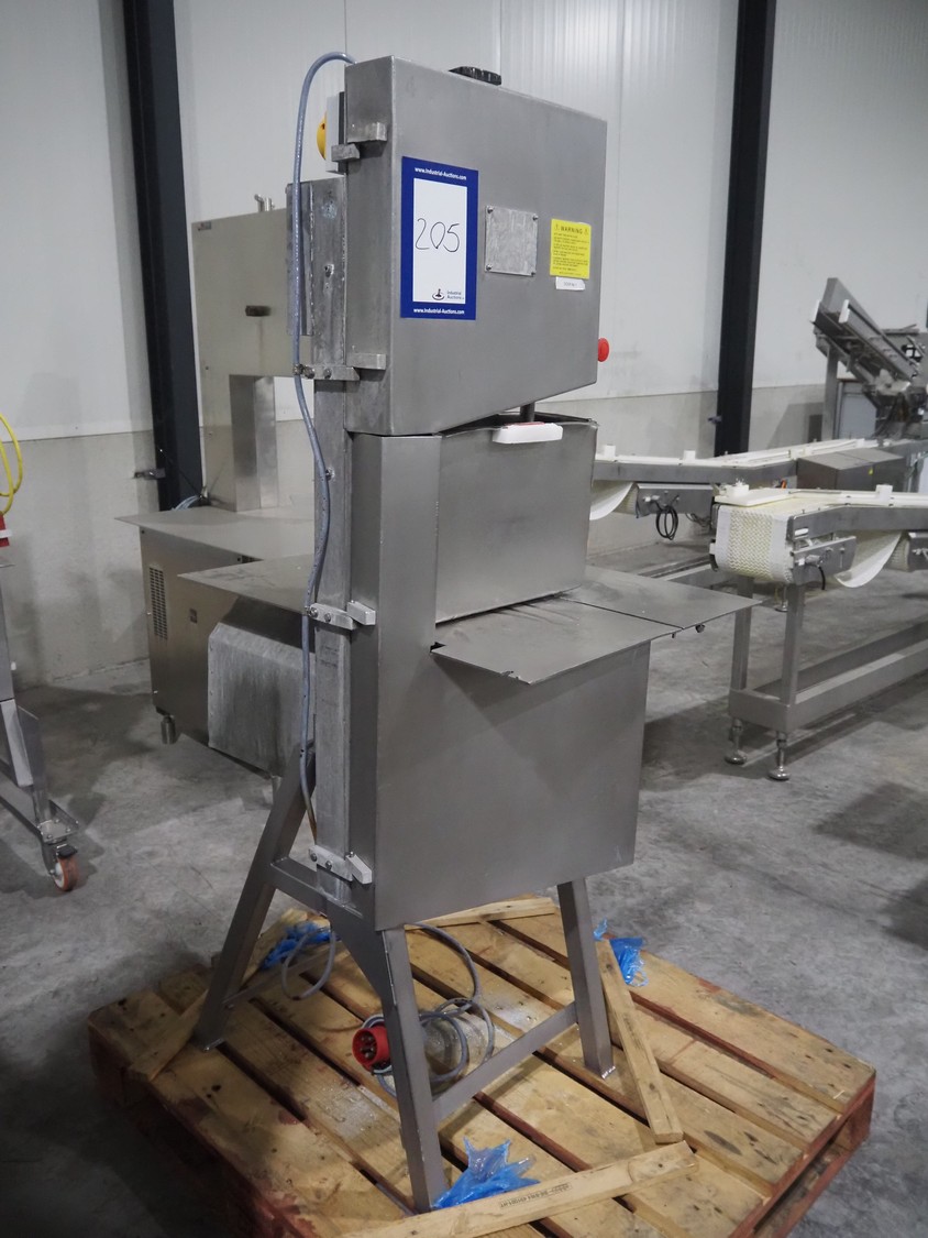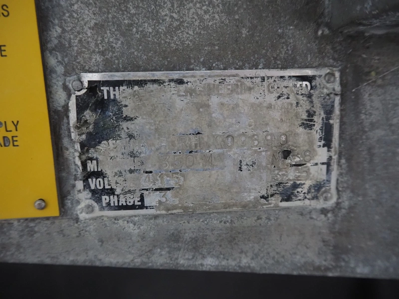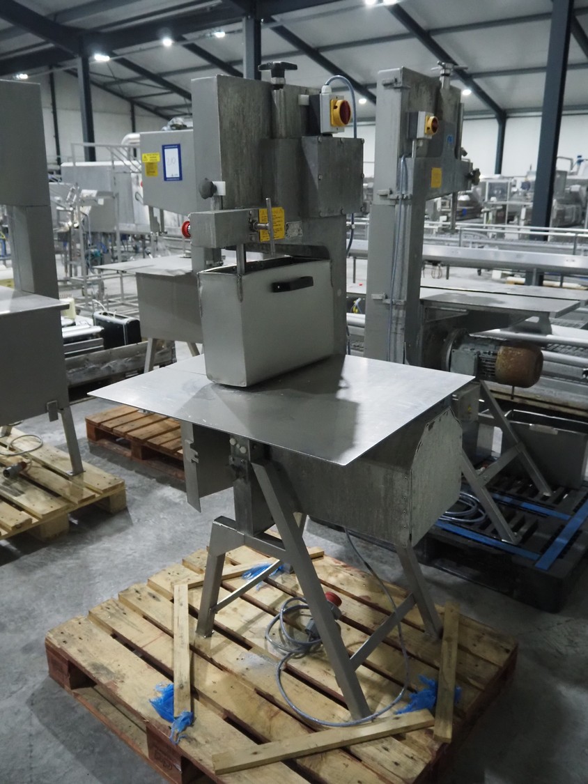 The A.E.W. Engineering band saw, type: MK8, machine: 350M, serial number: RH 100690, 415 V, 3 Ph, 3.5 A, table dimensions: 810 mm x 660 mm, total dimensions: 810 mm x 740 mm x 1700 mm. Incomplete, without saw.