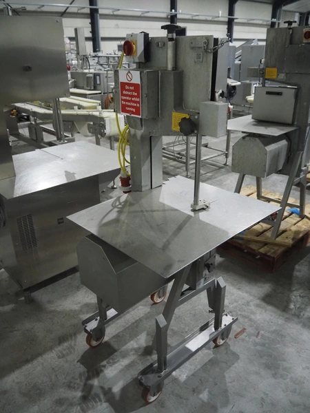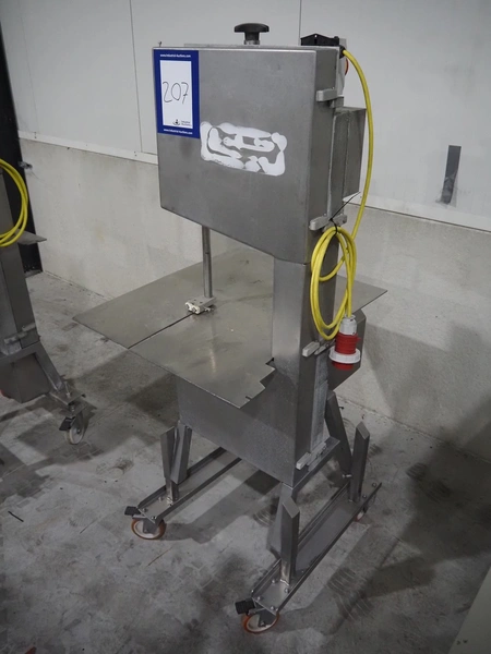 AEW Thurne Ltd mobile bandsaw, model: 350 bandsaw, serial number: 1392066, year of construction: 2004, 415 V, 3 Ph, 50 Hz, weight: 142 kg, table dimensions: 740 mm x 660 mm, total dimensions: 760 mm x 720 mm x 1750 mm. Incomplete, without saw.