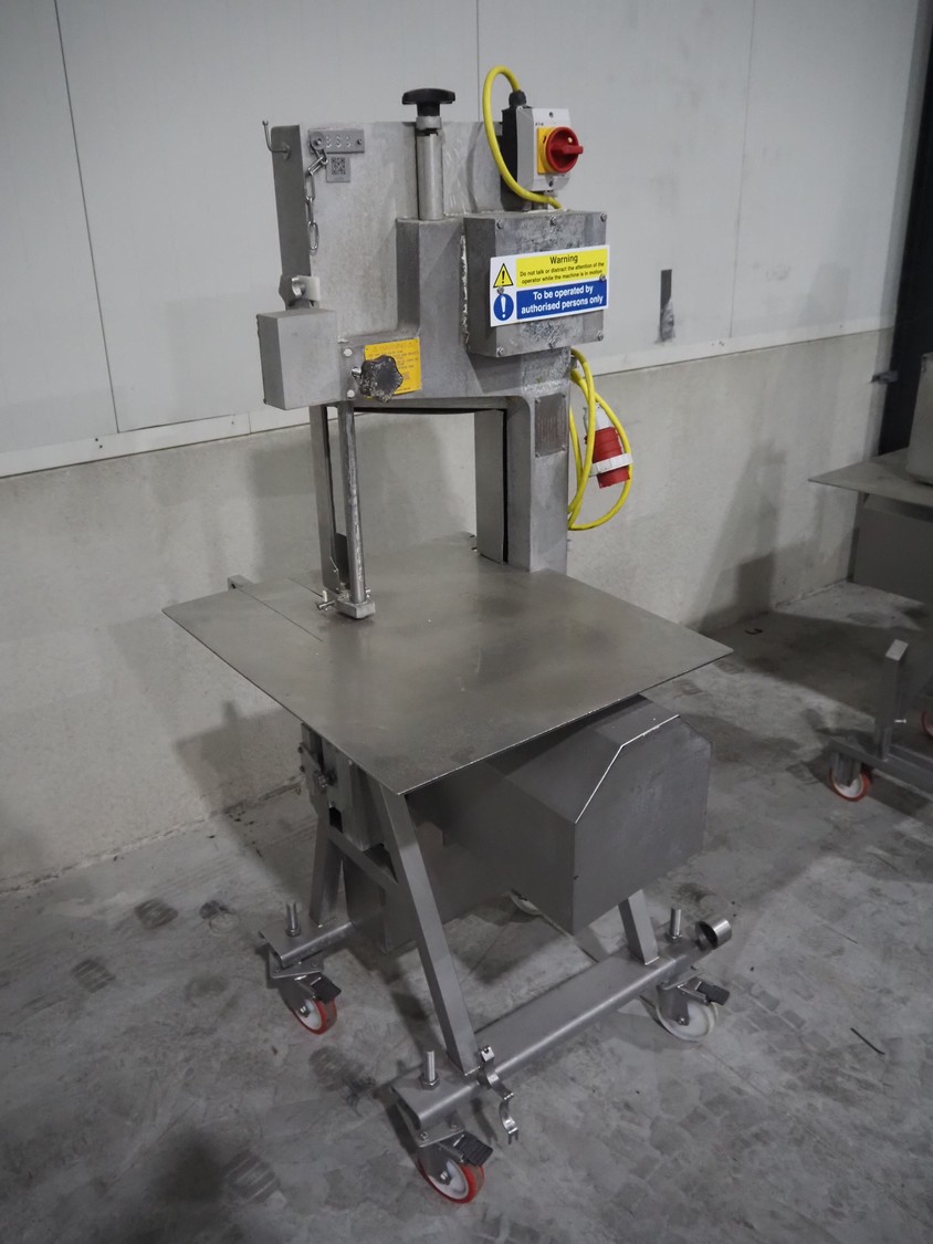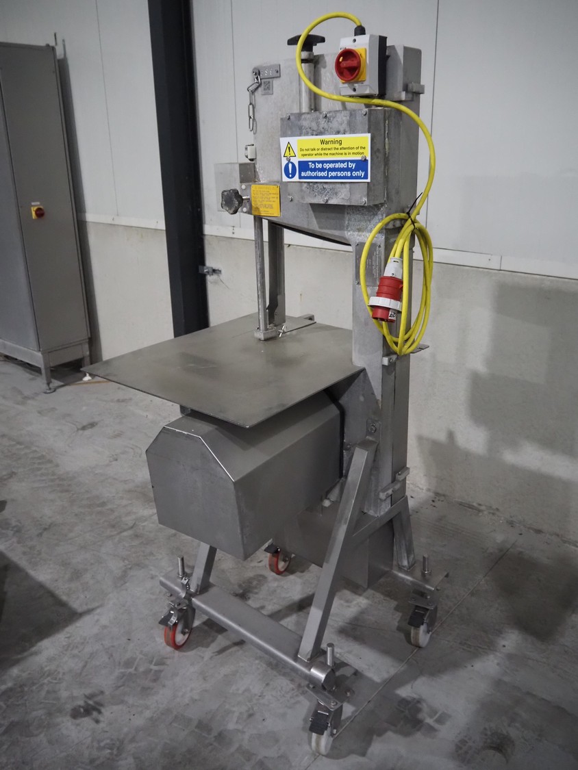 AEW Thurne Ltd mobile bandsaw, model: 350 bandsaw, serial number: 1182132, year of construction: 31-07-2007, 415 V, 3 Ph, 50 Hz, 4 A, weight: 142 kg, table dimensions: 740 mm x 660 mm, total dimensions: 760 mm x 720 mm x 1750 mm. Incomplete, without saw.